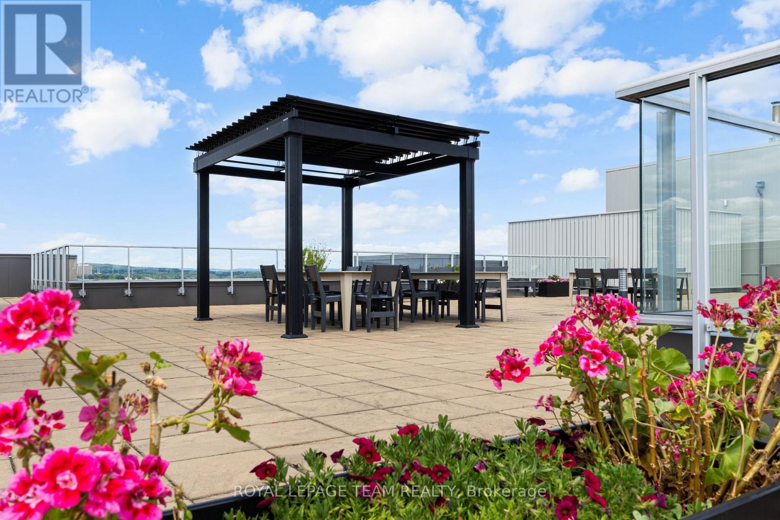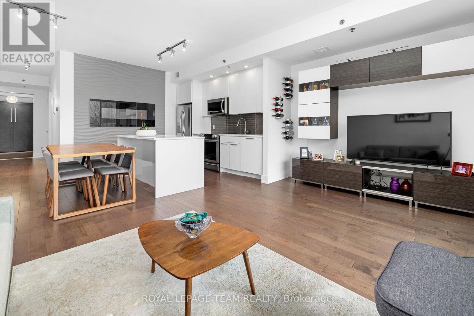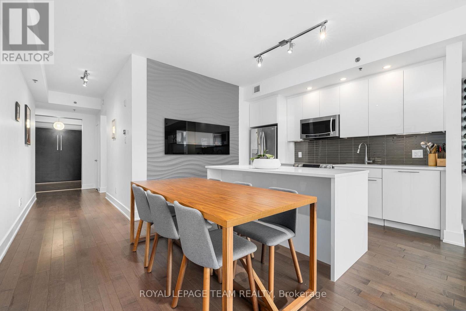 Desirable open concept, upgraded, south facing two bedroom condominium in QWest with two four piece bathrooms. This sun-filled and unique home with hardwood floors features an expansive and private terrace overlooking picturesque Nun's Walk. Upgraded lighting, flooring, an oversized quartz island, a feature wall with an electric fireplace and so much more! Convenient underground parking across from the elevators as well an oversized corner locker on the same level. Enjoy the top-tier building amenities which includes a rooftop terrace with BBQs and hot tub, a private theatre room, fitness room, pet grooming and more! Situated within a few minutes walk to a grocery store, restaurants, shops and services, public transit +++++ Status Certificate on file March 2026. 24 hour irrevocable required on all offers. Parking #82, storage locker #196. Immediate possession. See attachment for clauses to be included on all offers. (id:64974)