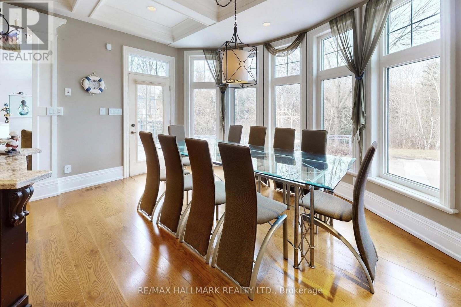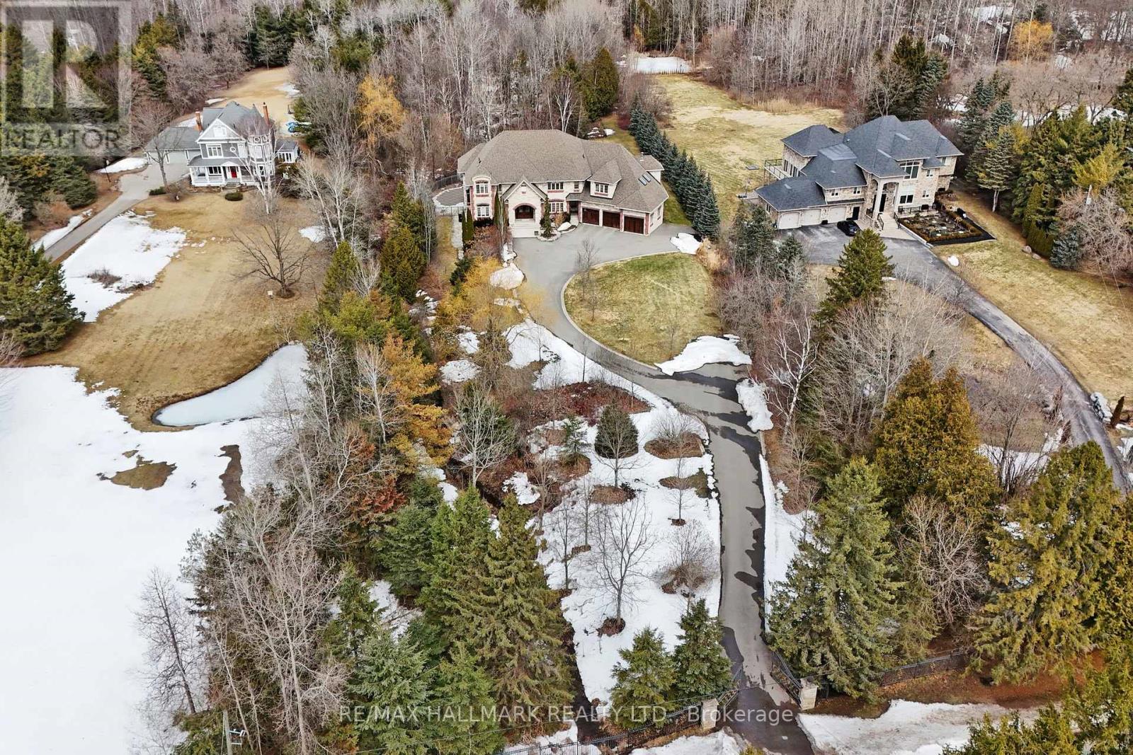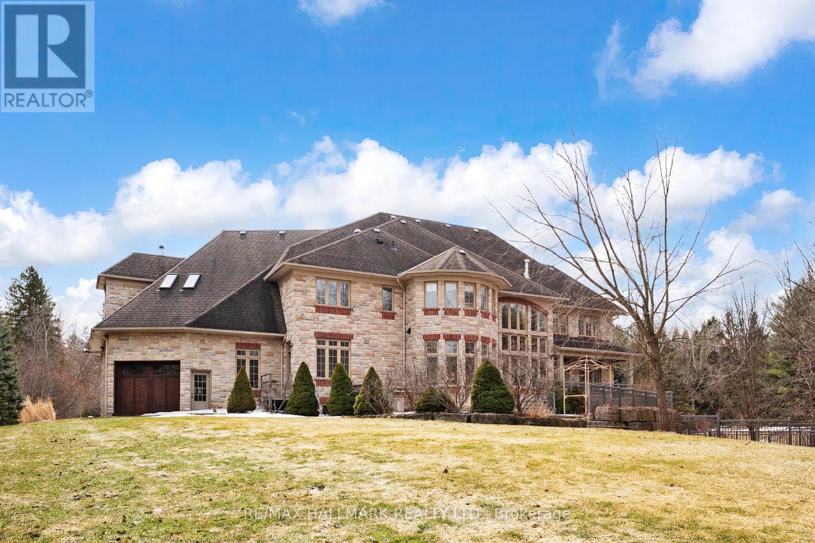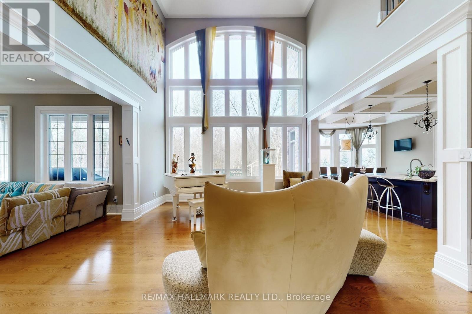 A Rare Custom Masterpiece Of Countryside Luxury Set On Nearly 5 Acres Of Serene Wooded Grounds With A Tranquil Stream! Discover this extraordinary private estate in prestigious Kettleby, just minutes from King City and Hwy 400. Step through a dramatic soaring atrium into this thoughtfully designed home, featuring expansive windows, refined architectural detailing, and rich 7" oak plank hardwood flooring throughout. The chef-inspired kitchen showcases granite countertops, coffered ceilings, an oversized centre island, and professional-grade built-in appliances. Offering approx. 6,300 sqft above grade plus a fully finished walk-out lower level, the home features 5+1 bedrooms and 9 bathrooms. A private second-floor suite with its own kitchen and ensuite is ideal for extended family or guests. The walk-out lower level is an entertainer's dream, complete with a custom home theatre with VIP seating, a gym, wet and steam saunas, and expansive recreation space. Outdoors, enjoy resort-style living with an inground saltwater pool, new liner and heat pump (2025), domed hot tub, and beautifully landscaped grounds with irrigation. Modern systems include geothermal heating, well water, septic system, and owned mechanicals including furnaces, hot water heater, and water filtration system. Heated 4-car garage and gated entrance (as is) complete this exceptional offering. Don't miss out on this opportunity! (id:64974)