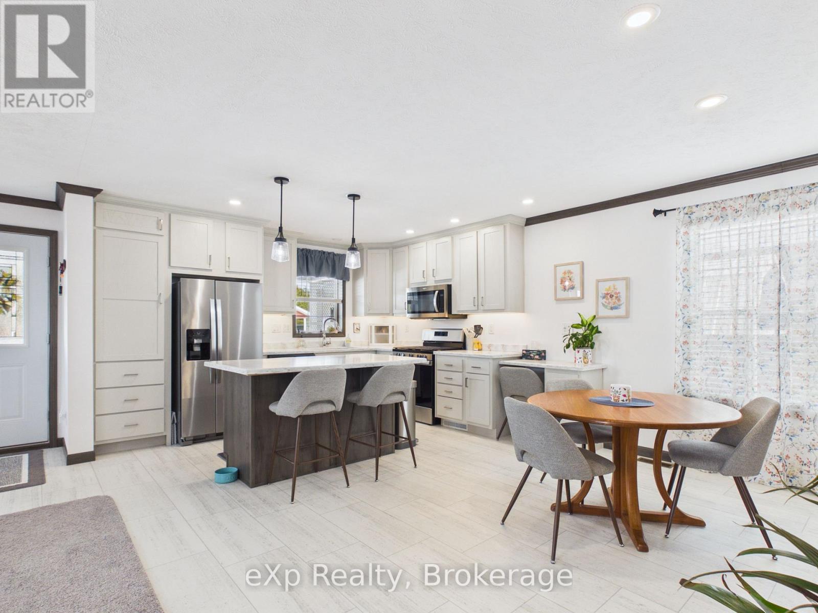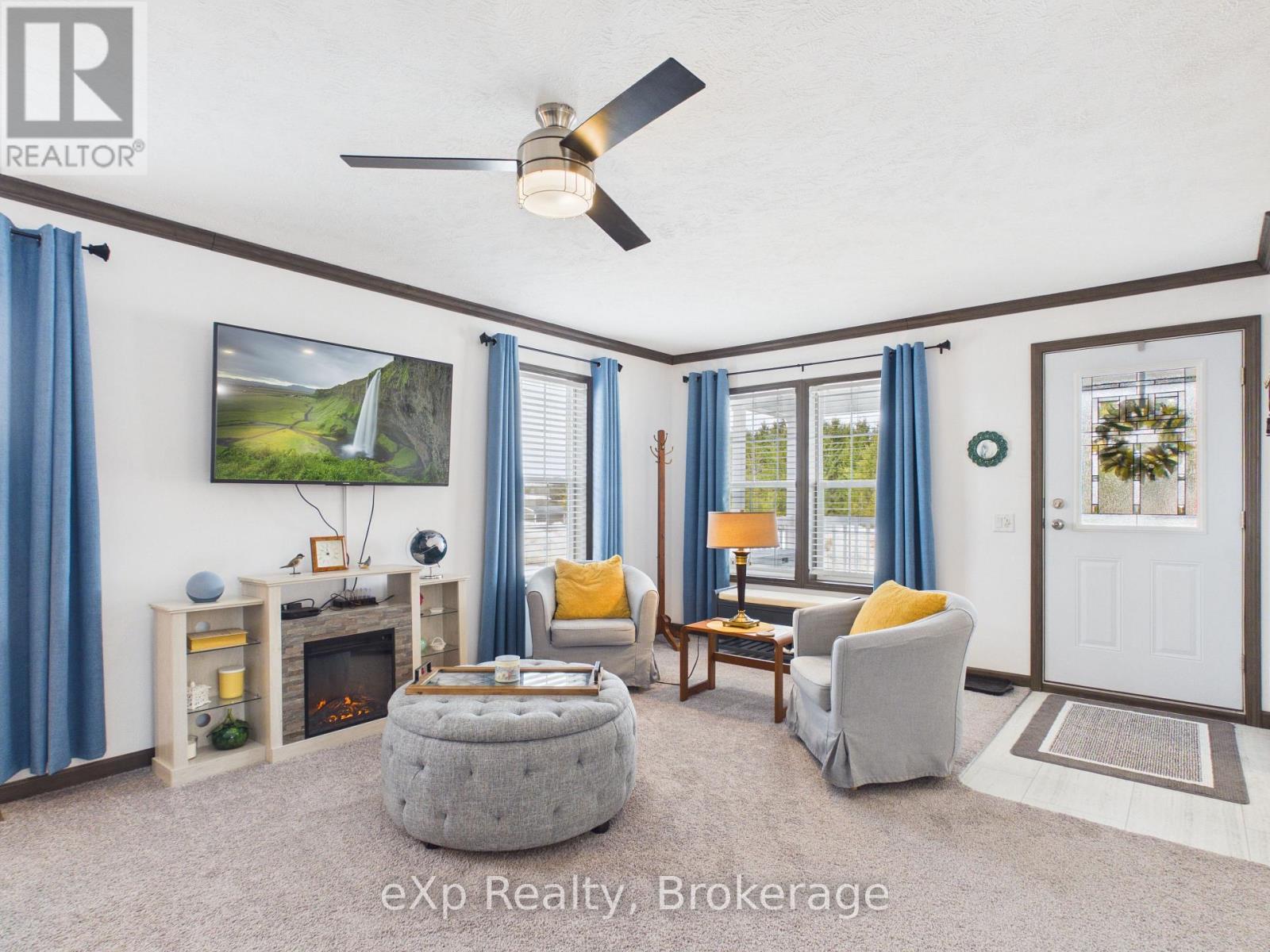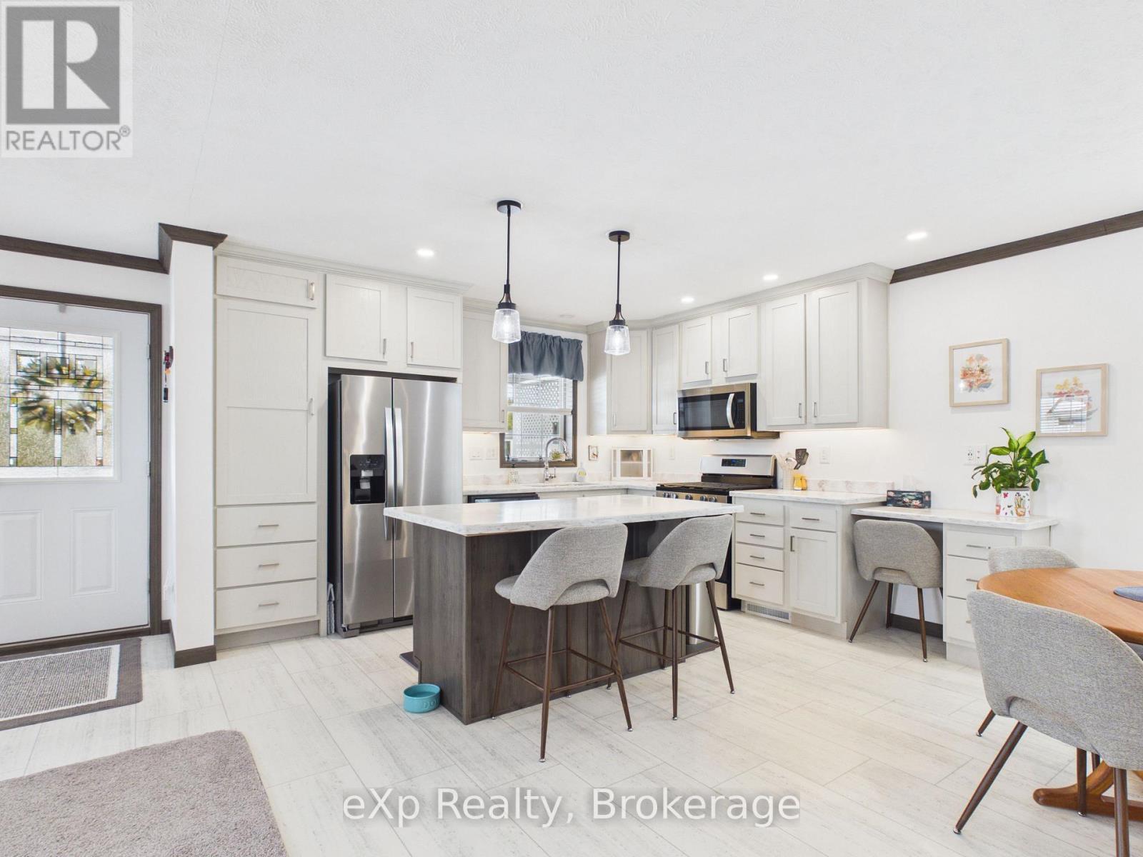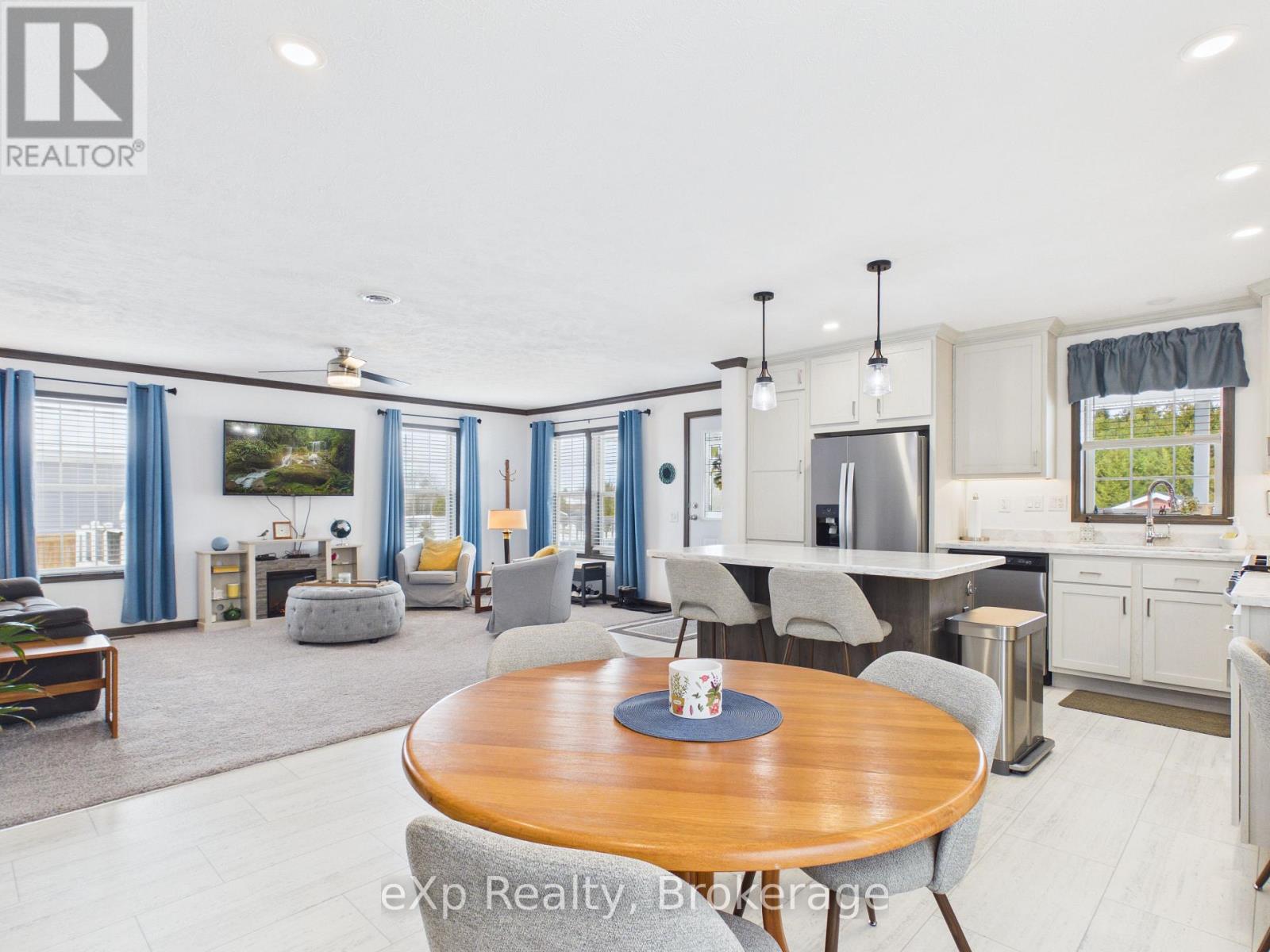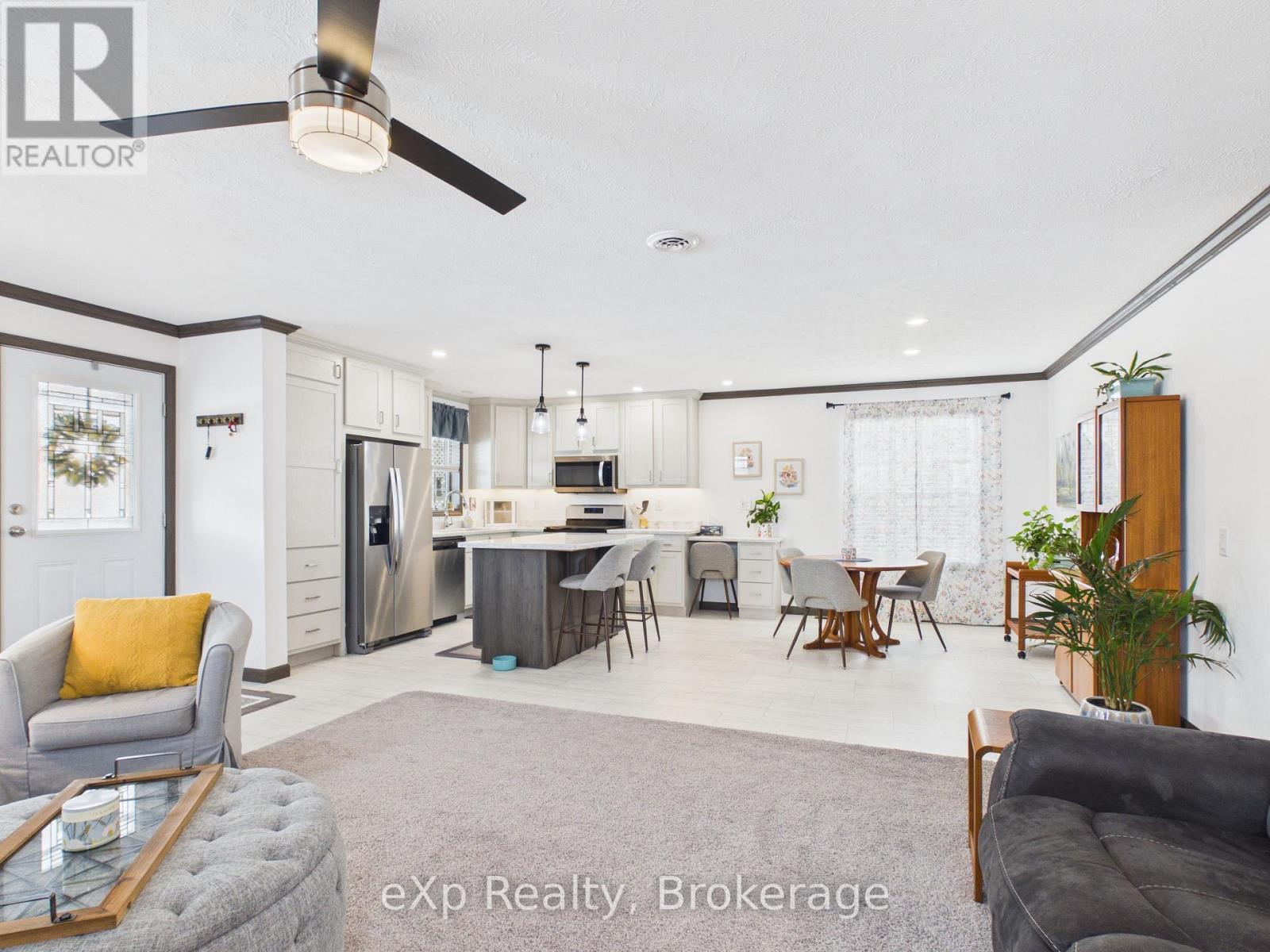 Comfortable Country Living, a quiet and well-kept community just west of Durham, where peaceful living meets everyday convenience. Built in 2022 and gently lived in since June 2024, this beautifully maintained detached modular home feels brand new. The open concept main living area was designed for easy living and effortless entertaining. The spacious living room flows seamlessly into a modern, functional kitchen featuring a large centre island, the perfect spot for morning coffee, casual meals, or hosting family and friends. The primary bedroom is a true retreat, complete with a well-appointed 4 pc. ensuite and impressively sized walk-in closet (12.73 x 4.36 ft). The second bedroom is thoughtfully sized; ideal for guests, a home office, or hobby space. A generously sized 4 pc bathroom adds to the home's practical layout. The laundry hallway leads directly to the side deck, gazebo, and fully fenced, landscaped yard. An attractive decorative privacy fence along the front enhances the outdoor setting, allowing you to relax in the gazebo in total seclusion. Two sheds, one 10x10 ft and a rear garden shed, provide excellent storage for tools and seasonal items. A double paved driveway comfortably holds up to six vehicles, and the covered front porch offers the perfect place to unwind on warm summer days, rain, or shine. This home is ideal for those looking to simplify without compromise. If you are ready for lower maintenance living but still want the comfort of a spacious, bungalow, this is a property you will want to see. Conveniently located just minutes to Durham and a short drive to Hanover, you are close to amenities while enjoying the tranquility of a smaller, rural community. Notable improvements: fence & deck professionally installed, Gazebo erected, front storm door (Aug./24); Mennonite shed May/25, siding Aug./25, pendant lights & under cabinet lighting installed Sept./25, "Ring" Doorbell & side security light, Jul./24. (id:64974)