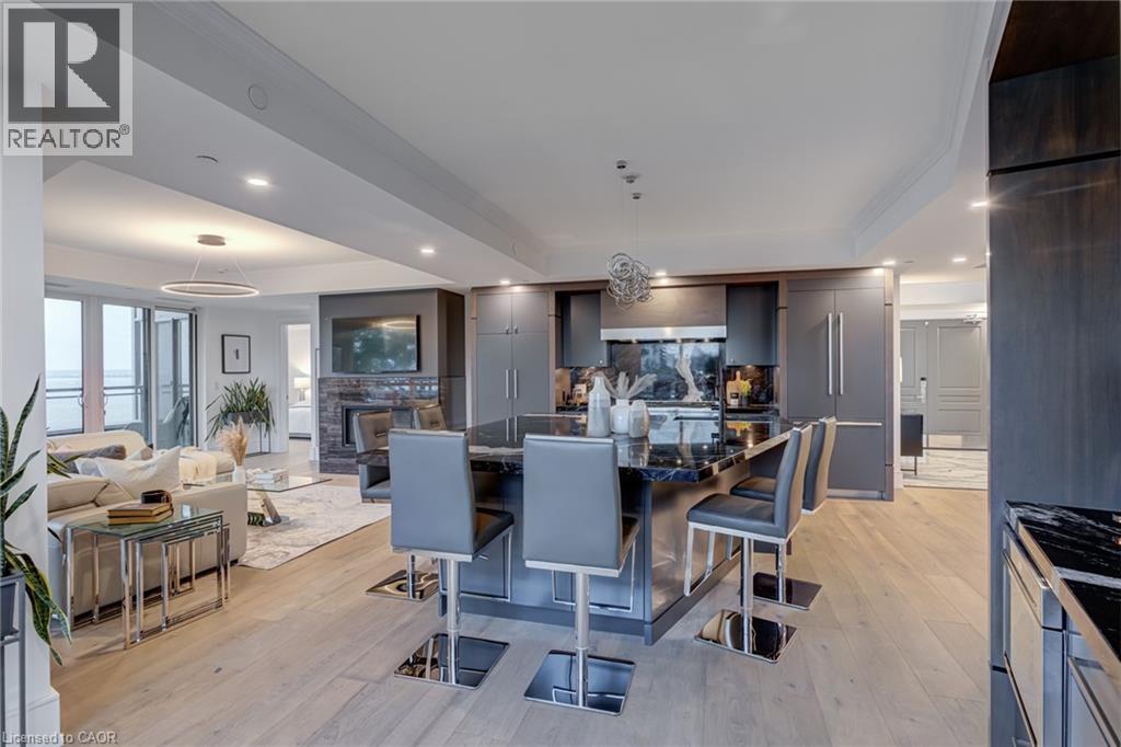 Luxury Waterfront Living in the Heart of Downtown Burlington at the prestigious Bridgewater Residences — where timeless elegance meets lakeside tranquility. Spanning 2,200 square feet of refined living space, plus an expansive 725+ square foot private wrap-around terrace, this southeast-facing corner suite offers breathtaking, unobstructed views of Lake Ontario. Designed with meticulous attention to detail, this 2-bedroom plus den, 3-bathroom residence is rich with luxury upgrades and sophisticated design elements. Soaring floor-to-ceiling windows flood the space with natural light, while the open-concept layout features a gas fireplace and a spectacular gourmet kitchen equipped with premium Thermador appliances, a generous granite island, and custom cabinetry — ideal for both everyday living and entertaining. The hotel-inspired primary suite is a true retreat, complete with terrace access, panoramic lake views, a spacious walk-in closet, and a spa-like ensuite featuring an oversized glass shower and elegant finishes. A second bedroom with ensuite and a separate den/home office (easily adaptable as a third bedroom) ensure flexibility and privacy for guests or family. A dedicated laundry room and a stylish powder room round out the suite’s thoughtful layout. Step outside to your private terrace and take in the serenity of waterfront living — the perfect backdrop for morning coffee, summer dining, or evening relaxation. As a Bridgewater resident, enjoy access to resort-style amenities, including a rooftop terrace, party lounge, fitness centre, piano room, and VIP privileges at The Pearle Hotel & Spa, featuring a second gym and a luxurious indoor pool. This rare offering also includes two premium accessible parking spaces next to the elevator, as well as a private storage locker. Experience the best of Downtown Burlington — just steps to the Waterfront Trail, Spencer Smith Park, the Pier, and a vibrant mix of boutique shopping, fine dining, and cultural attractions. (id:64974)