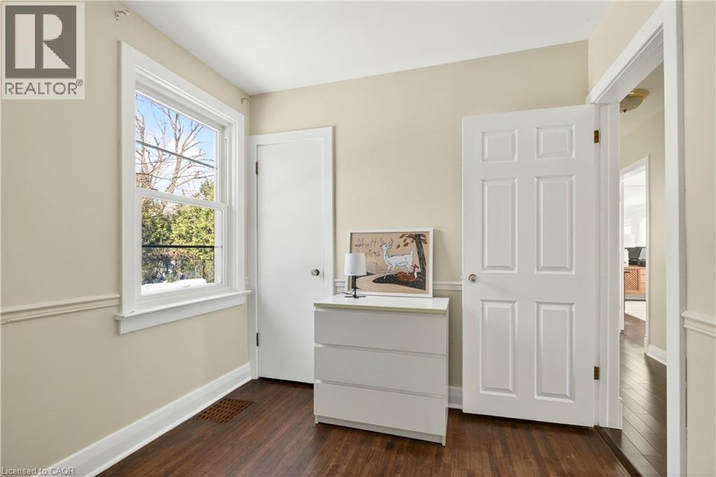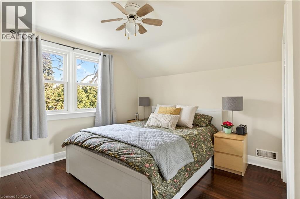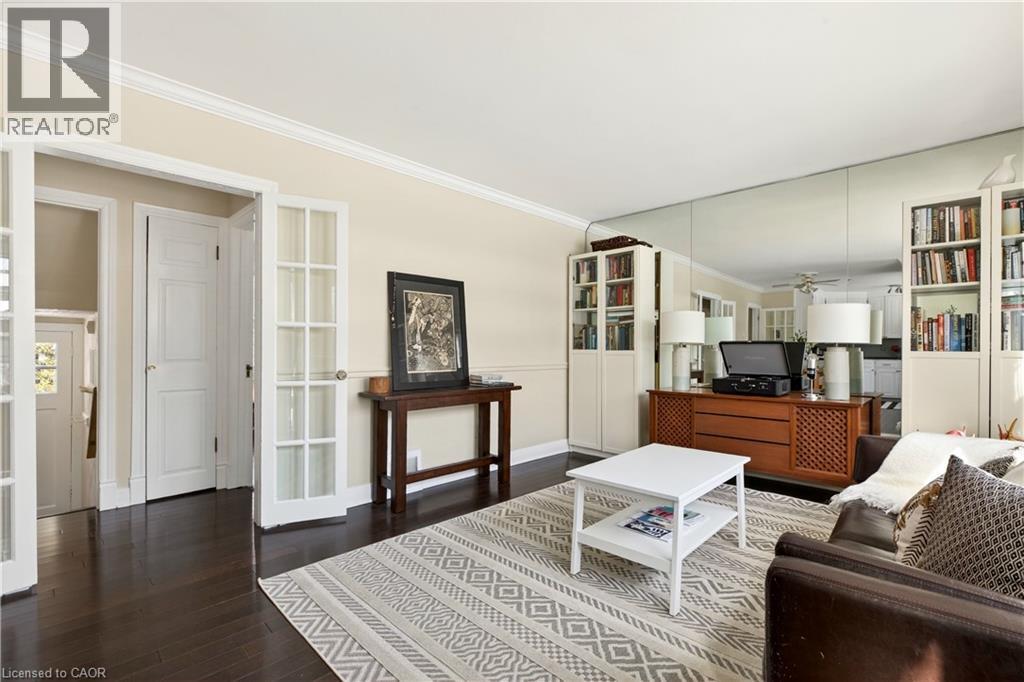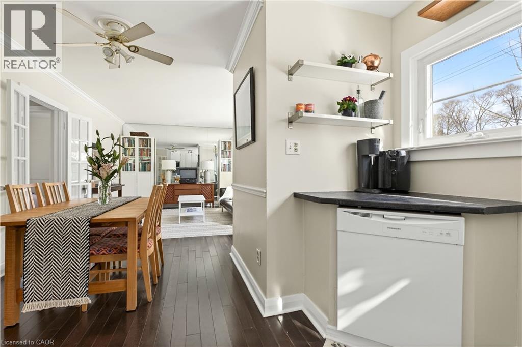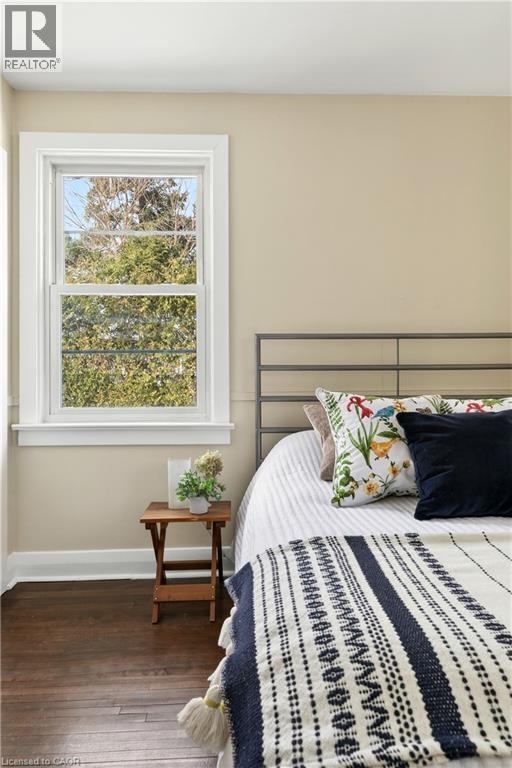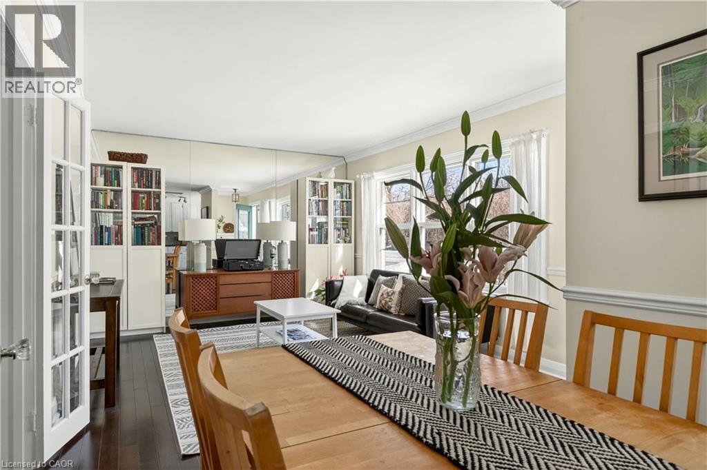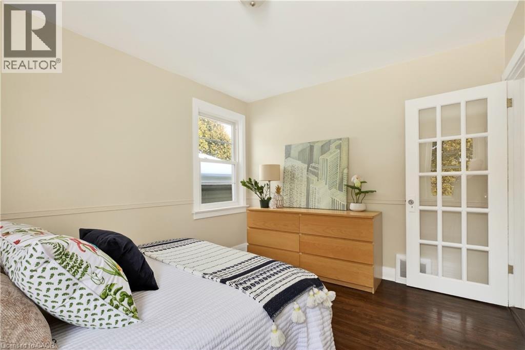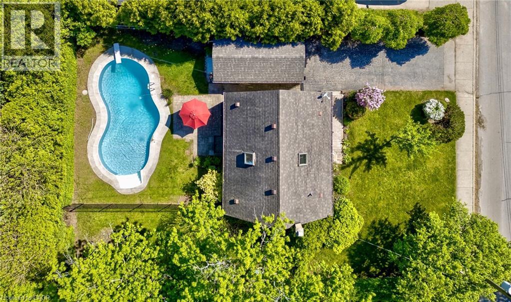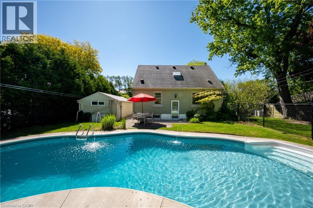 Downtown Burlington living at its best! This charming brick 4-bedroom home is tucked away on a quiet, family-friendly dead-end street with direct access to a park. Set on an impressive 75' x 100' lot in the sought-after Central area, this 1.5-storey home features a stunning in-ground saltwater pool and exceptional outdoor space. Filled with natural light, the home offers an open-concept eat-in kitchen and living area, highlighted by a large picture window that seamlessly brings the outdoors in. Two bedrooms on the main level share a 4-piece bathroom, while the upper level includes two additional bedrooms and a 3-piece bathroom. The finished basement boasts a spacious family room with a gas fireplace, new carpet (2025), and a large finished storage area—ideal for relaxing or entertaining. Step outside to your private, serene backyard oasis surrounded by mature trees and featuring an in-ground saltwater pool, perfect for summer gatherings and unwinding in nature. Unbeatable walkability to downtown Burlington, the lake, GO Train, shopping, schools, and restaurants—this location truly has it all. (id:64974)