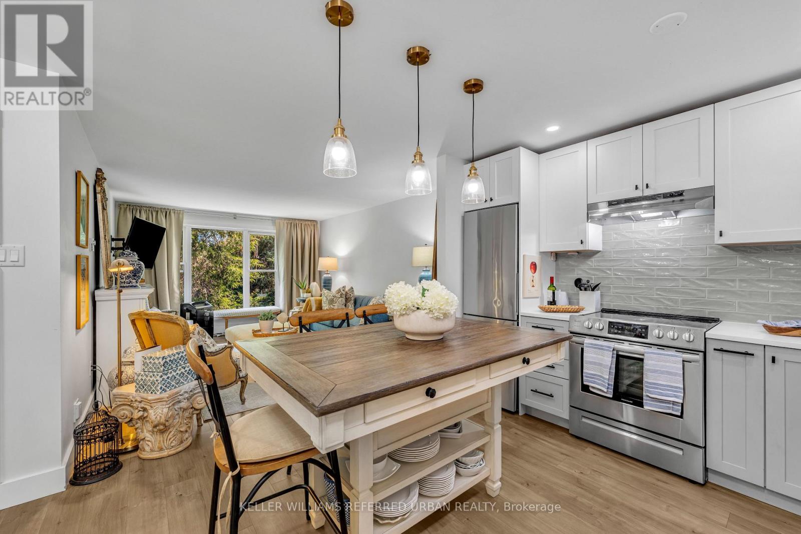 Fully Renovated 1 Bedroom, 1 Bathroom Condo in Prime Cobourg Location Right Next to the Beach! This beautifully updated second-floor condo suite is just one block from Coburg's waterfront, boardwalk, and Beach. Featuring a big and bright 637sf,open-concept layout, the unit includes a renovated custom kitchen with stone countertops, stainless steel appliances, tile backsplash, and soft-close cabinetry. The modern 3-pc bathroom offers a tiled walk-in shower, glass door, and upgraded vanity. The roomy, king sized bedroom offers double closets. Enjoy updated flooring, interior doors, lighting, and trim throughout. Located in a well-maintained building with amenities such as an indoor pool, sauna, shared laundry, and a private outdoor lounge area. Steps to the marina, downtown shops, restaurants, and VIA Rail. Come check it out and fall-in-love! (id:64974)