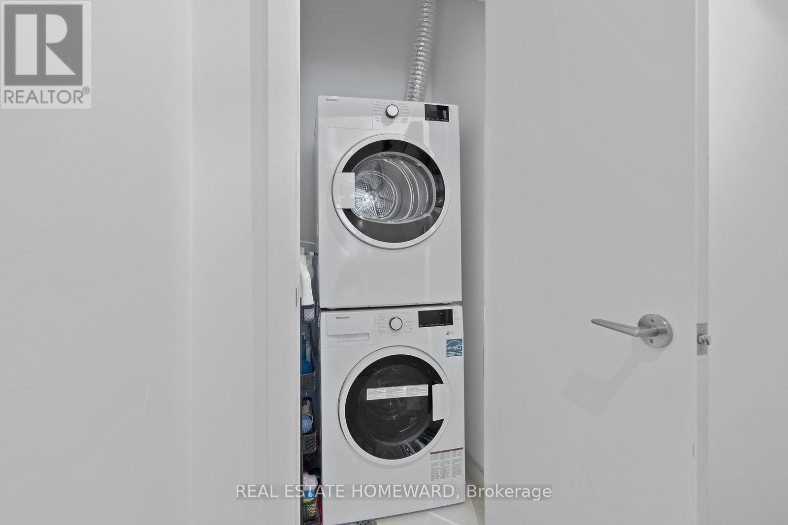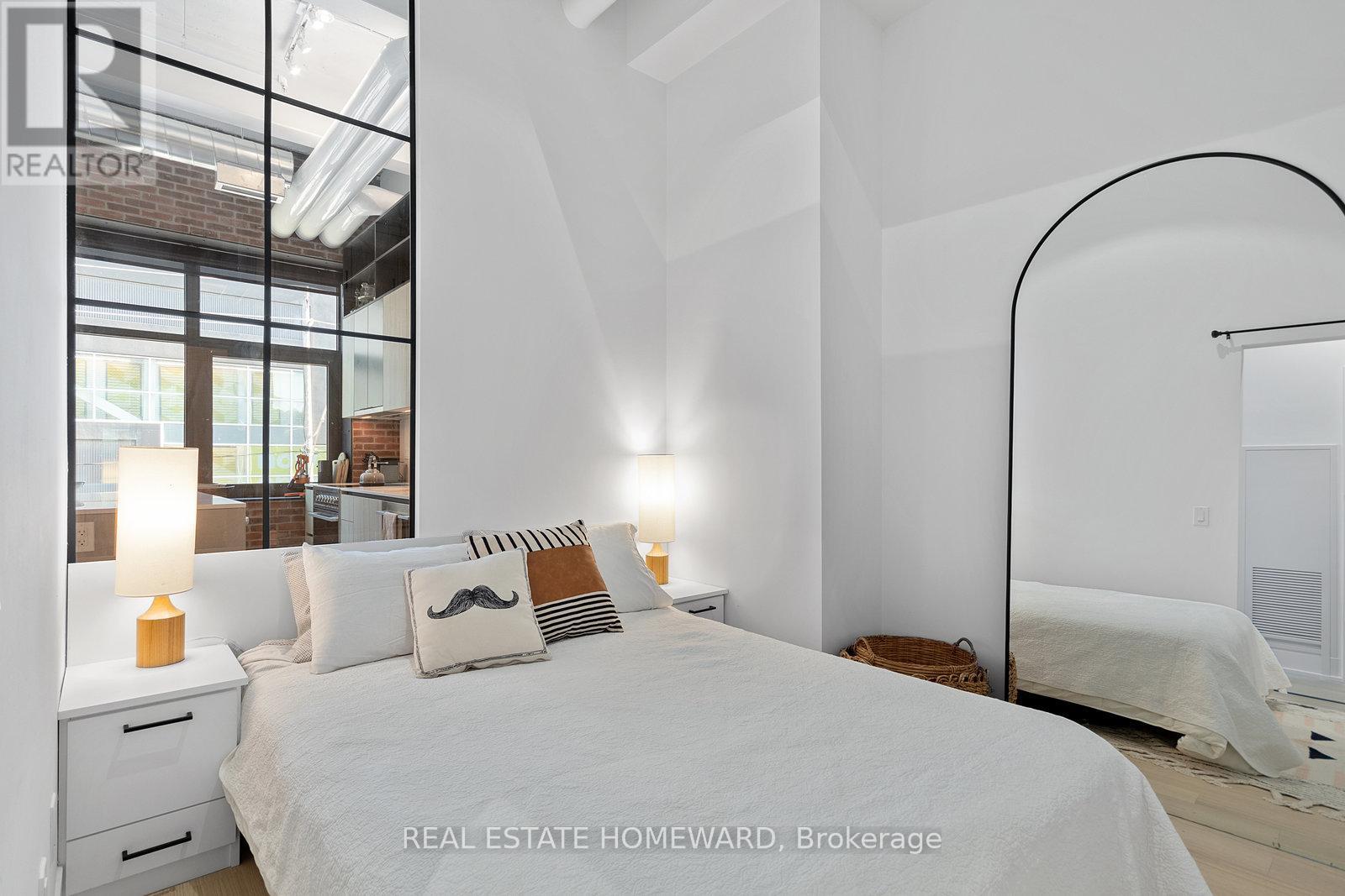 ** FULLY FURNISHED - Utilities Included - 6 Mo Minimum ** 1 Bedroom + Full Home Office ** Experience urban luxury at its best in this stunning Heritage Loft, perfectly situated in Toronto's vibrant east end. Once a historic bread factory, this beautifully reimagined south-facing residence combines industrial charm with high-end sophistication. Step into soaring 15-20 foot ceilings and bask in natural light through expansive industrial windows, outfitted with motorized sunshade and blackout blinds for ultimate comfort. The designer kitchen features premium Fisher & Paykel appliances, while the open-concept living and dining area includes a large table, a plush sleeper sofa (queen pull-out), and a 50" Smart TV-ideal for entertaining or relaxing in style. The primary bedroom offers a queen-size Posturepedic bed with a custom-built frame, spacious custom closets, and a luxurious ensuite with a deep soaker tub. The second bedroom, currently styled as a dedicated home office, includes a large desk and blackout blinds for focused work or peaceful sleep. A sleek powder room adds extra convenience for guests.Additional features include in-suite laundry, a grand entry foyer with soaring ceilings and ample storage, and access to top-tier building amenities like a fully equipped fitness centre, an expansive private rooftop terrace, and 24-hour concierge/security. Included in the Rental Rate: FULLY FURNISHED (including Pots/Pans, Dishes, Cutlery, and Linens) All Utilities (Heat/Ac, Hydro, Water, High-Speed Internet) Parking: 1 Parking Covered Garage (id:64974)