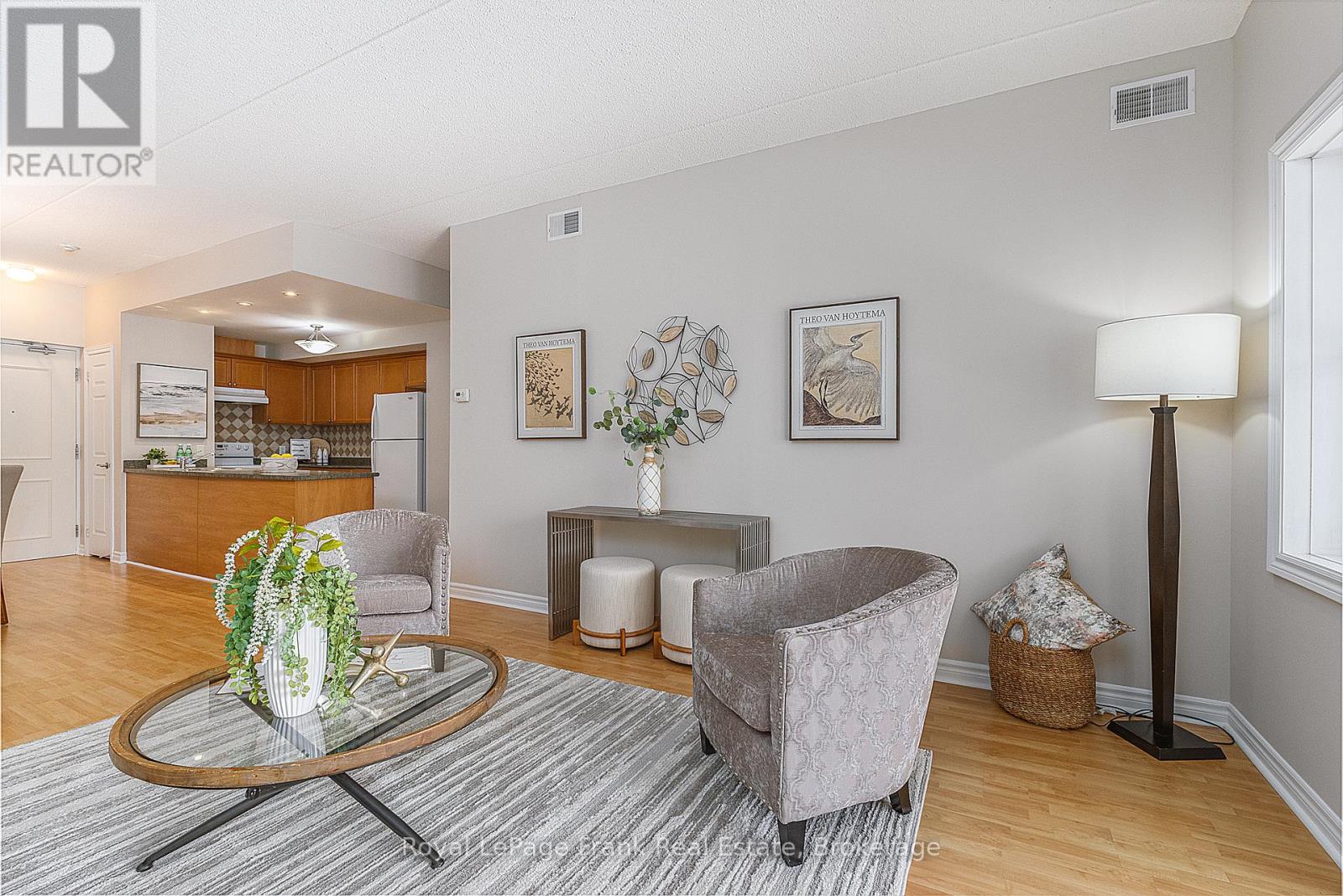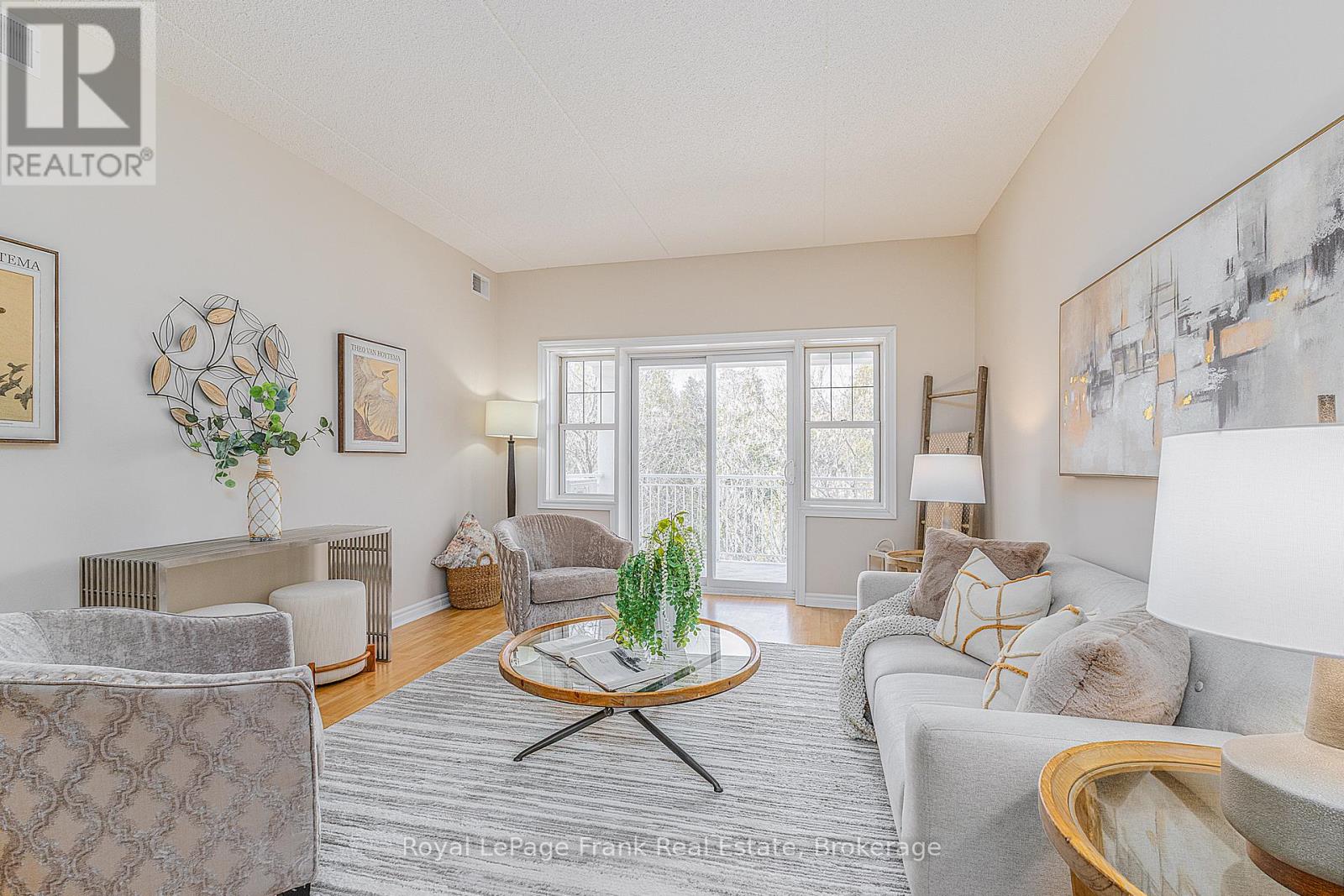 Welcome to beautiful Brookview Terrace in the heart of Uxbridge. - a bright and inviting two-bedroom, two-bathroom condo featuring a sought-after open concept layout with high ceilings and large windows letting in lots of natural light. Bright, clean and airy, this unit has been freshly painted and has been thoughtfully designed offering in suite laundry and a convenient storage area. A generous open balcony with gas hookups and a comfortable easy flow living space make this home perfect for everyday living and entertaining. Enjoy the convenience of one underground parking space, along with access to excellent building amenities including an exercise room, party room, and library. Backing onto green space with a ravine, this home offers a peaceful setting while still being within walking distance to shops, restaurants, parks and trails. Whether you enjoy scenic walks and hiking, especially in Uxbridge, which is proudly known as the Trail Capital of Canada, or prefer to unwind and relax at home in front of the tv, this condo offers the perfect balance for every lifestyle in a fabulous setting. (id:64974)