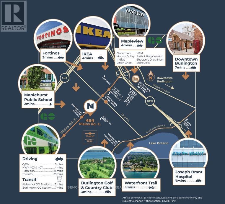 Northshore Condos will be an 8 storeys mid-rise residential project in the highly sought-after Aldershot neighbourhood in Burlington, GTA. This place is typically characterized by super-pricey homes, also rich in amenities, style and luxury. Brand New 1 Bed + Den Parking and Locker. Be in Burlington's Best New Condo where Lasalle meets the Harbour. This Fantastic Floor Flan comes with Balcony, Open Concept, 10' Ceiling, HP Laminate Floors, Designer Cabinetry, Quartz Counters, Stainless Steel Appliances. Enjoy the view of the water from the Skyview Lounge & Rooftop Terrace, featuring BBQ's, Dining & Sunbathing Cabanas. With Fitness Centre, Yoga Studio, Co-Working Space Lounge, Board Room, Party Room and Chefs Kitchen. Pet Friendly with an added dog washing station at the street entrance. Northshore Condos is a Sophisticated, modern design overlooking the rolling fairways of Burlington Golf and Country Club. Close to the Burlington Beach and La Salle Park & Marina and maple View Mall. Be on the GO Train, QEW Hwy 401, 407 or Hwy 403 in Milton (id:64974)
