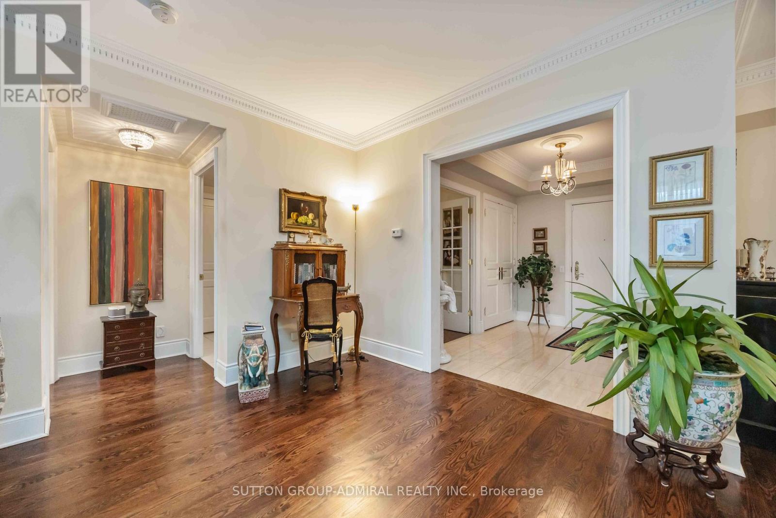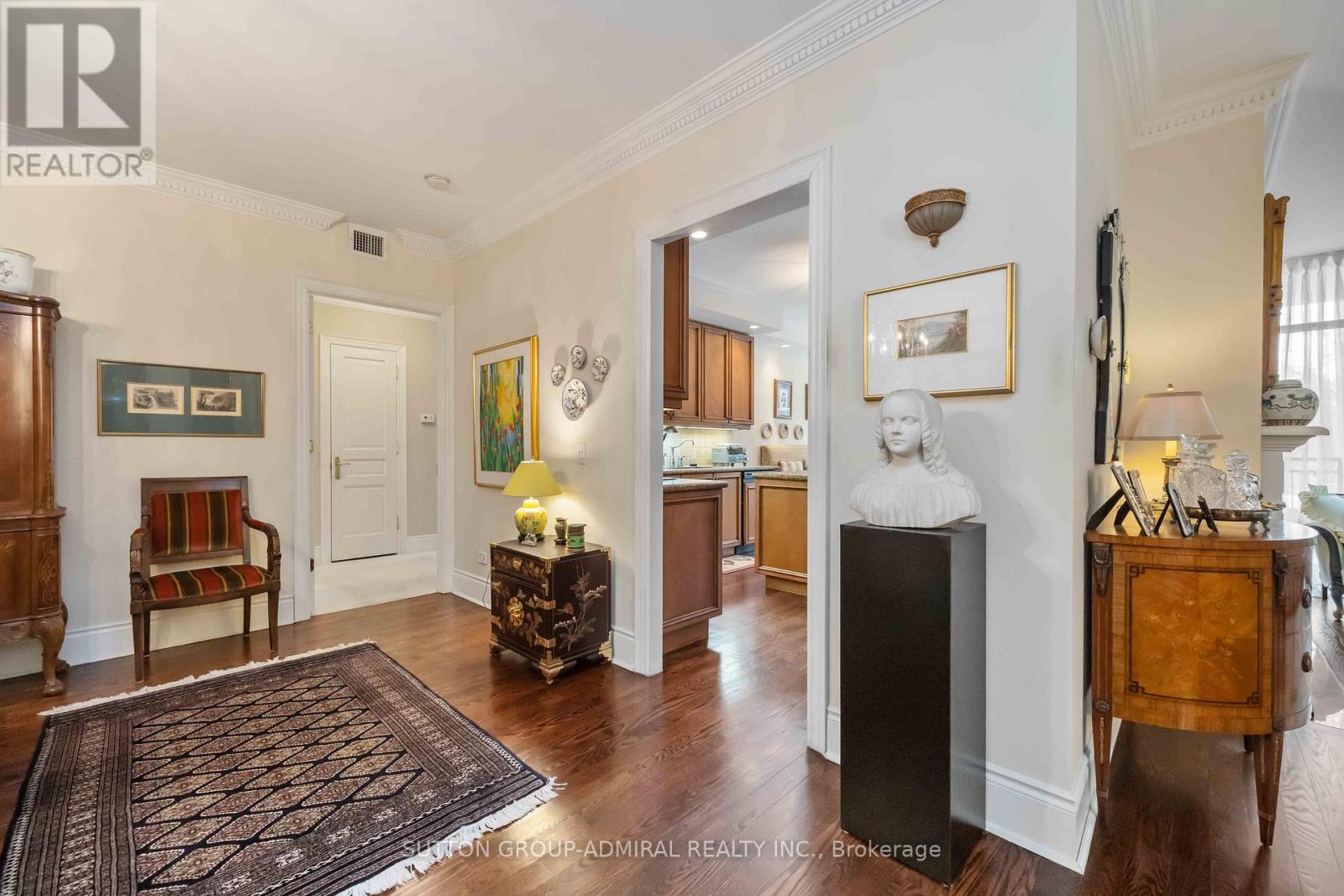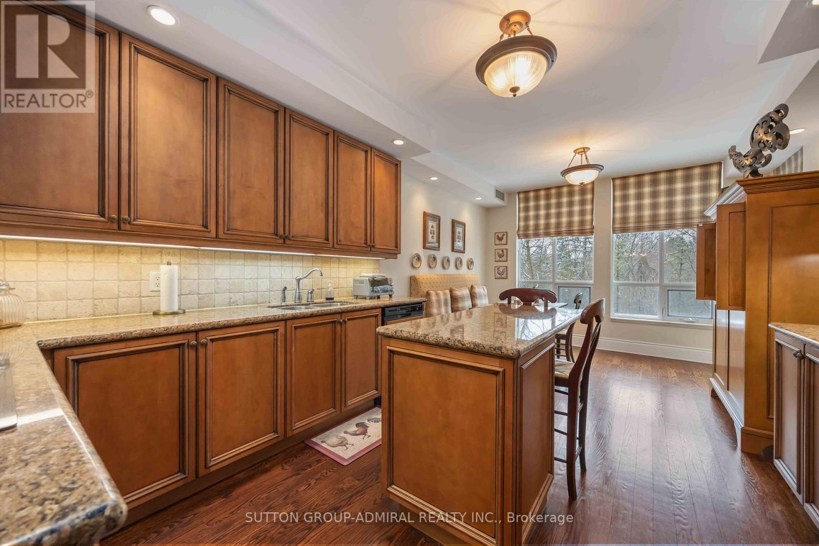 A rare opportunity to own a ravine-facing residence at The Avignon by Tridel, an intimate luxury building recognized for its privacy, craftsmanship, and understated elegance. This boutique six-storey community offers a refined living experience in one of Thornhill's most desirable setting. Residents are welcomed by a beautifully appointed lobby with 24-hour concierge service and a calm, private atmosphere throughout the building. The suite is thoughtfully designed with generous ceiling heights, serene treetop views, and a private outdoor terrace-ideal for quiet mornings or relaxed outdoor dining. Quality finishes and a well-considered layout create a home that feels both sophisticated and comfortable, equally suited for everyday living and entertaining. The location offers a rare balance of natural surroundings with convenient access to nearby shops, services, and daily essentials. Completing the offering are two extra-large parking spaces, providing exceptional ease of use, and a heated room-sized storage locker-a rare and highly practical feature seldom found in condominium living. A private retreat in a truly distinguished residence. (id:64974)