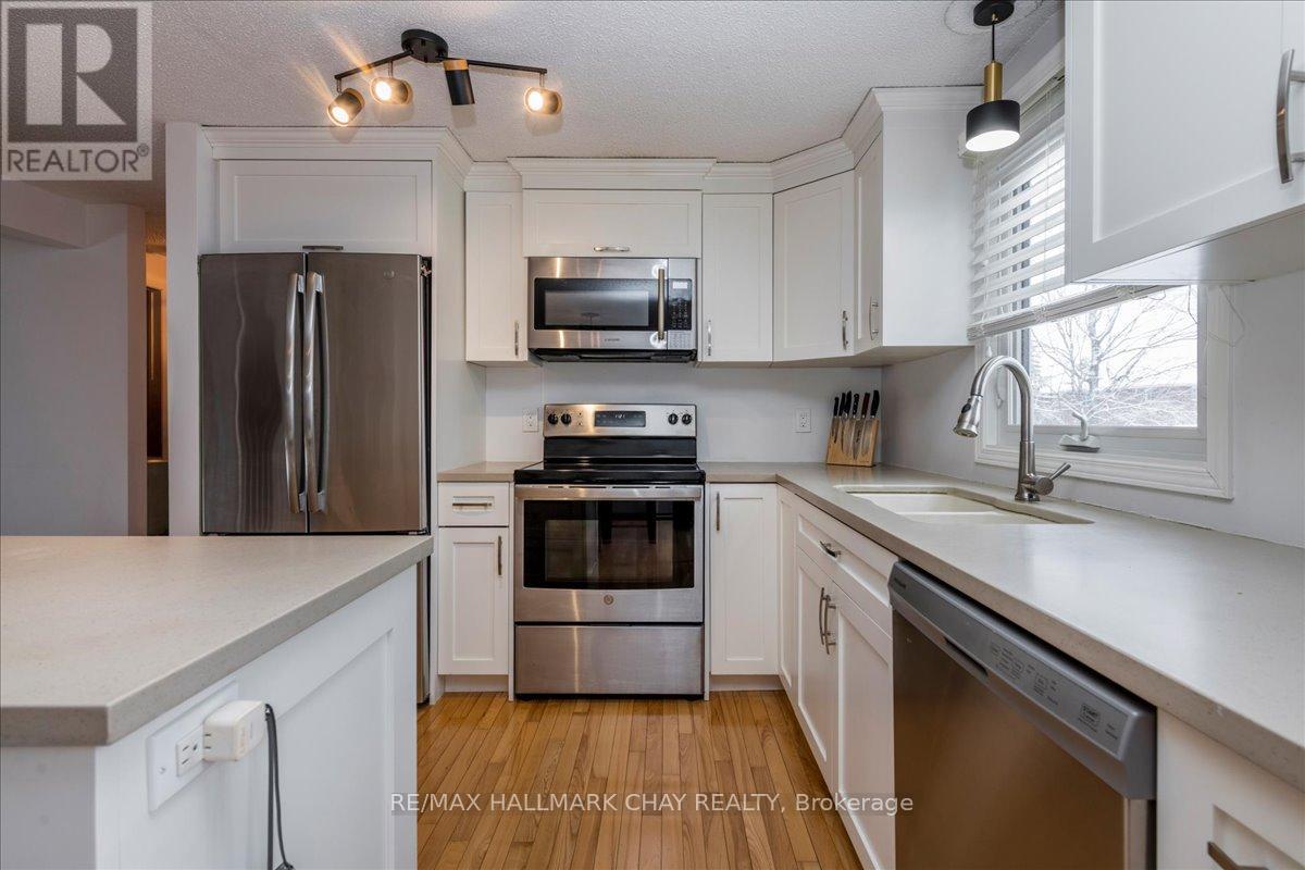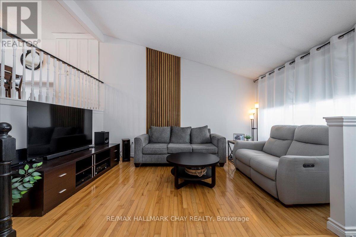 Beautifully Updated Home With Separate Basement Entrance! Super bright and open-concept 2+1 bedroom, 2 bathroom home ideally located within walking distance to schools, shops, and the incredible Lampman Lane Park. Step inside to a spacious living room featuring a soaring vaulted ceiling, gleaming hardwood floors, and a large bay window that fills the space with natural light. Just a few steps up, you'll find a gorgeous kitchen with crisp white cabinetry, a centre island, and stainless steel appliances. The dining room overlooks the living area and offers a walkout to the back deck-perfect for entertaining or enjoying family meals. A convenient pantry provides extra storage. Down the hall are two generously sized bedrooms with hardwood flooring, along with a beautifully updated main bathroom. The lower level features a separate entrance with walkout to the garage, an additional bathroom, laundry area, and a large guest bedroom that could also serve as a home gym, office, or recreation space. Additional highlights include some newer windows, updated kitchen and light fixtures, neutral paint throughout, parking for 3 vehicles (2 on driveway + 1 in heated garage with opener), and a fully fenced backyard with ample enclosed storage under the deck and in the shed. Located just minutes from Highway 400 and close to all amenities, this versatile home is perfect for a variety of family setups in the heart of Barrie. Just unpack and relax! (id:64974)