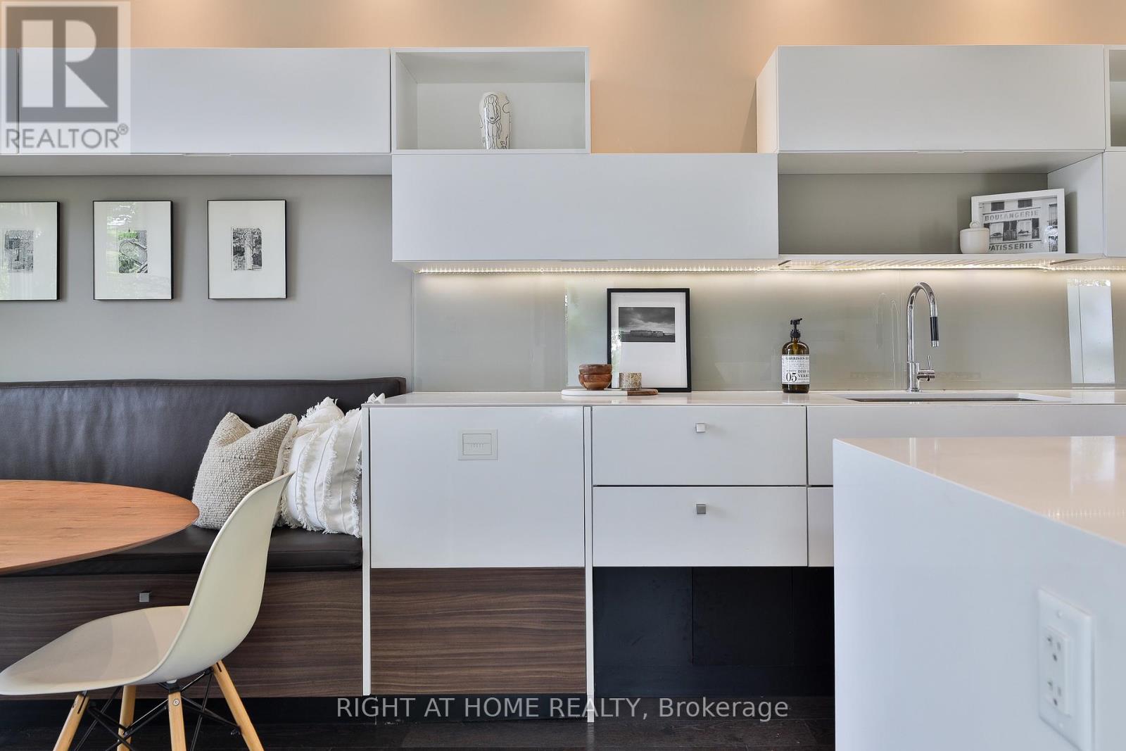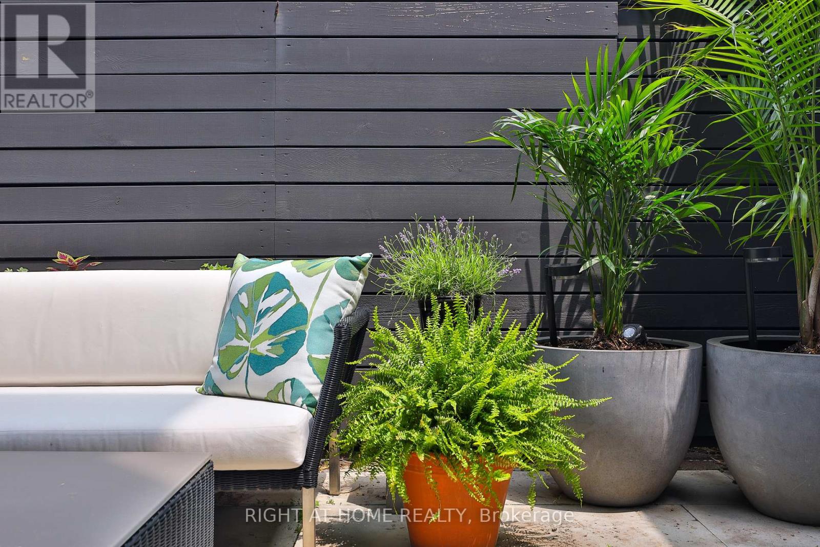 Welcome to this bright and spacious home at Trinity Bellwoods Townhomes, ideal for anyone craving modern living in an outstanding neighbourhood. This freehold townhome is defined by a great floorplan, leafy views, a clean modern interior, and a seamless layout ideal for both daily living and superb entertaining. Ten-foot ceilings on the main level frame an expansive chefs kitchen with a generous dining room and a refined living space with custom gas fireplace, built-ins, and walkout to a private urban garden with gas and water connections. Upstairs, you'll find three bedrooms including a remarkable full-floor primary suite with walk-in closet, spa-like ensuite with soaker tub, and a private terrace with quiet views over Trinity Bellwoods. 2nd floor laundry for added convenience. The lower level offers a flexible family room / den / home office, powder room, and direct access to a secure and oversized underground garage. A rare end home in a thoughtfully designed community, just moments to College, Dundas West, Queen West and the park. (id:64974)