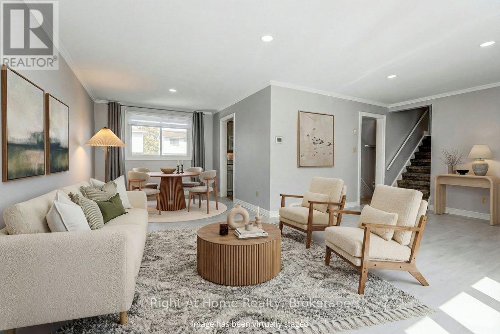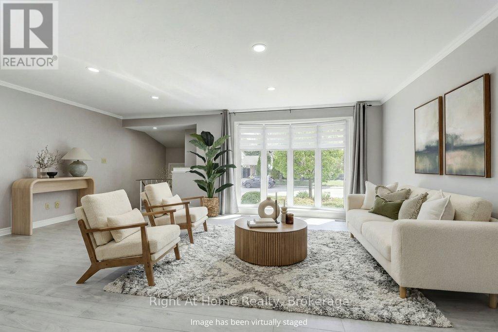 WELCOME to 207 Montmorency Drive. This lovingly cared for home has plenty of living space for you and your family to enjoy. Four bedrooms in a four level side split design. Offering a bright, sun-filled living/dining room combination with a large picturesque bow window, pot lights, crown moulding and new flooring, a kitchen with plenty of cupboard space, a lower level family room that boasts hardwood flooring and a warm and cozy gas fireplace, a finished recreation room that can be utilized in so many ways (think gym, office, kids playroom, convert to in-law suite), a large laundry room that includes a bonus shower; this home has to be seen! Situated on a large 60 X 100 foot lot with a spacious backyard that includes a covered patio, convenient shed, possibility for a vegetable garden and ample space remaining for many more garden ideas!! Parking is not an issue here as the attached double car garage(2 garage door opener, newer garage doors) also has a spacious, paved driveway with total accommodation for 6 vehicles. Family friendly neighbourhood, close to schools, parks, recreation centre and easy hwy access for the commuter. This home is ready and waiting for its new family. CALL TODAY! (id:64974)