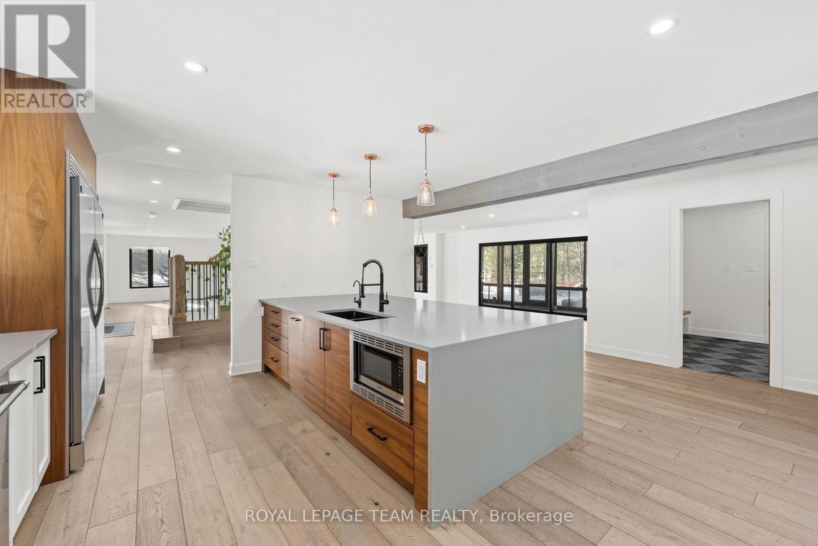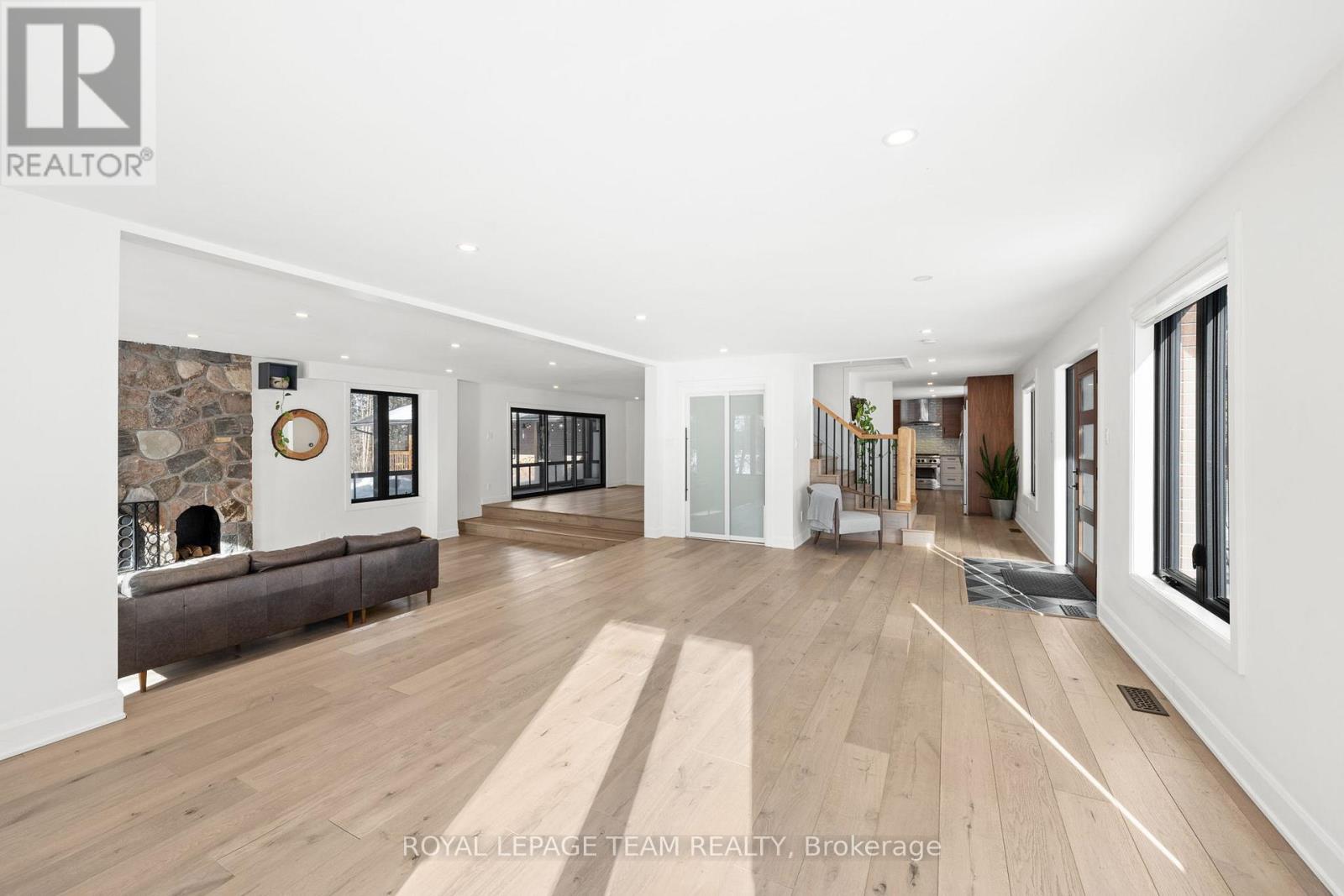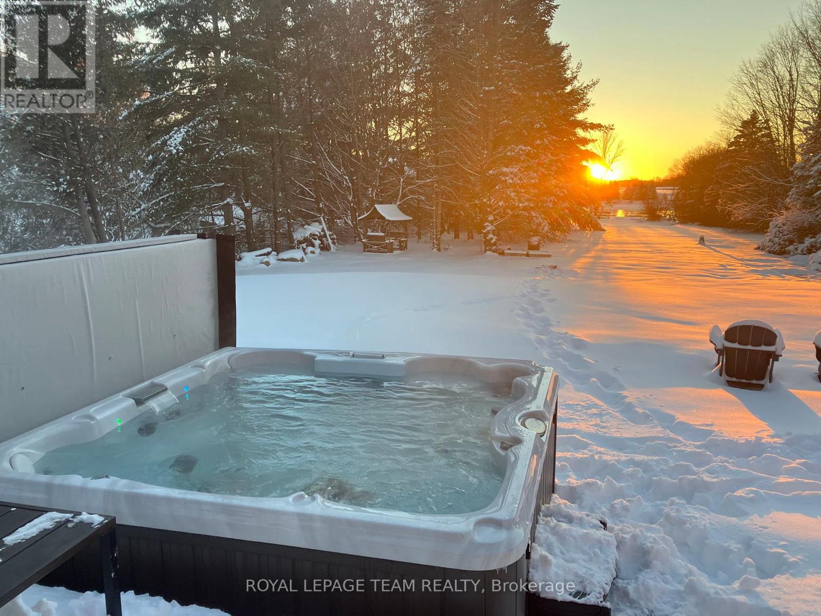 Set on two private acres of exceptional waterfront with coveted western exposure, this remarkable estate offers a lifestyle that is truly unmatched. Surrounded by impressive custom-built luxury homes, the property combines natural beauty, privacy, and refined living in one extraordinary setting. Extensively renovated throughout, the home showcases a spectacular, oversized chef's kitchen designed to be the heart of the home. With expansive workspaces, high-end finishes, and room to gather, cook, and entertain, the kitchen anchors a home that is both elegant and welcoming.The thoughtful layout offers incredible flexibility for large or multi-generational families. The second floor features six bedrooms (one currently used as a home office), while the fully finished basement includes an additional large bedroom with its own full bathroom, ideal for guests or extended family. Outdoor living here is just as exceptional. Enjoy the peaceful surroundings from the screened room, expansive deck, and beautifully finished interlock spaces, all designed for relaxation and entertaining. The property also features a hot tub (only a few years old) and a sauna with a newer metal roof and heater, creating your own private spa experience at home. At the waterfront, benefit from the use of a private dock to watch the boats go by or to park your own! With its stunning waterfront setting, spectacular sunsets, extensive living space, and resort-like amenities, this property is truly a one-of-a-kind family estate. Minutes to the village of Manotick, with school buses to top schools at the driveway. A lease shorter than 12 months is available. (id:64974)