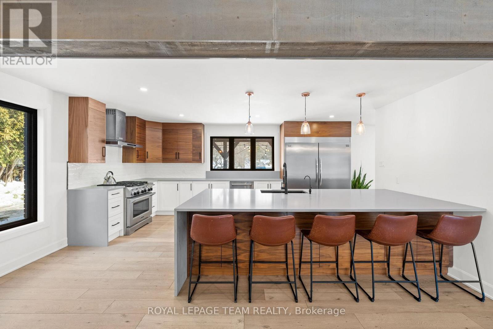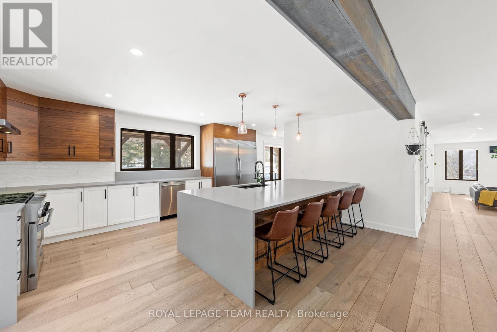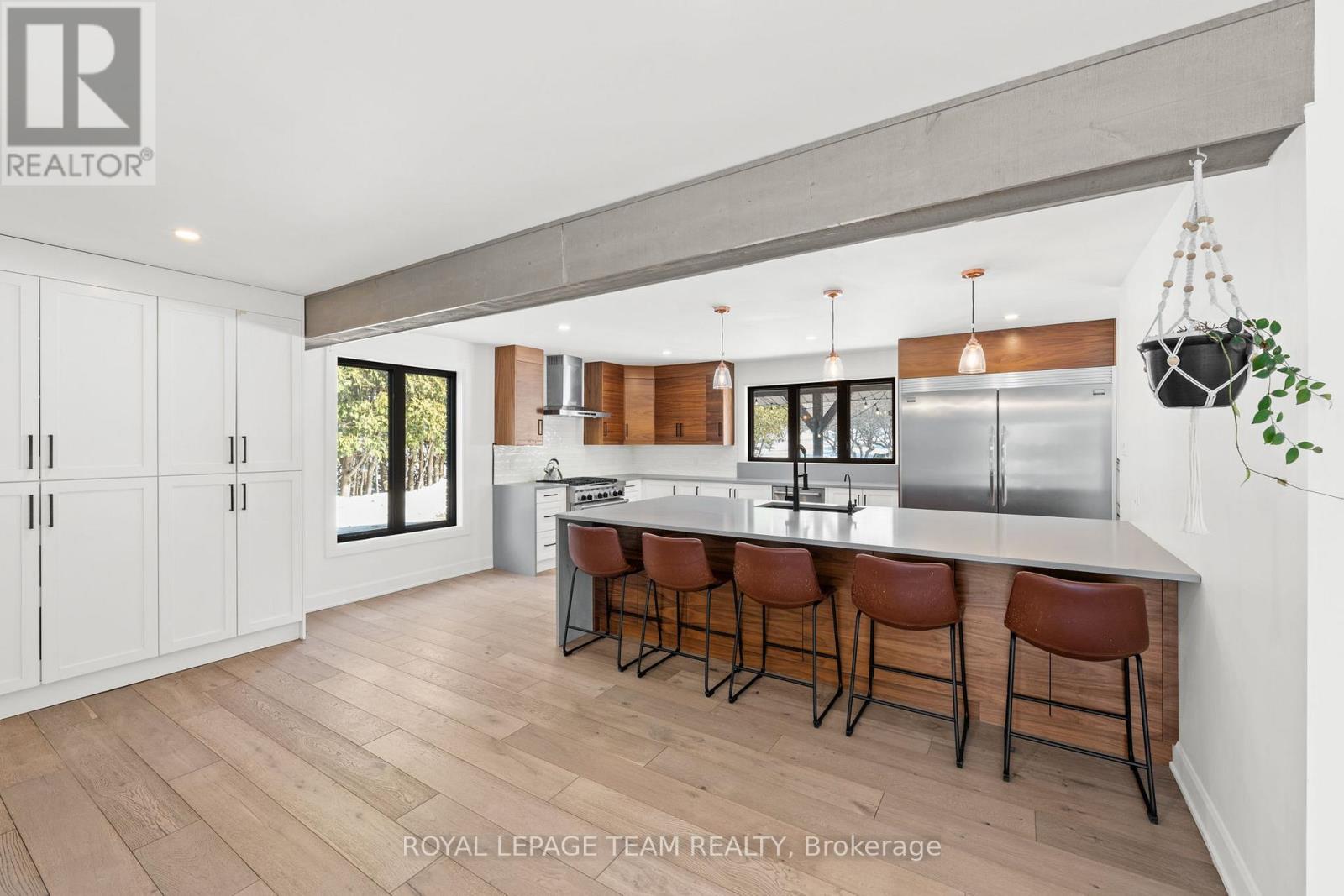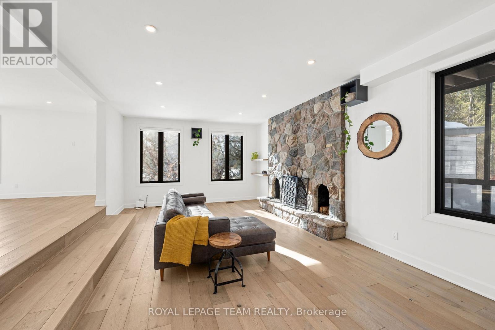 Set on two private acres of exceptional waterfront with coveted western exposure, this remarkable estate offers a lifestyle that is truly unmatched. Surrounded by impressive custom-built luxury homes, the property combines natural beauty, privacy, and refined living in one extraordinary setting. Extensively renovated throughout, the home showcases a spectacular, oversized chef's kitchen designed to be the heart of the home. With expansive workspaces, high-end finishes, and room to gather, cook, and entertain, the kitchen anchors a home that is both elegant and welcoming.The thoughtful layout offers incredible flexibility for large or multi-generational families. The second floor features six bedrooms (one currently used as a home office), while the fully finished basement includes an additional large bedroom with its own full bathroom, ideal for guests or extended family. Outdoor living here is just as exceptional. Enjoy the peaceful surroundings from the screened room, expansive deck, and beautifully finished interlock spaces, all designed for relaxation and entertaining. The property also features a hot tub (only a few years old) and a sauna with a newer metal roof and heater, creating your own private spa experience at home. At the waterfront, benefit from the use of a private dock to watch the boats go by or to park your own! With its stunning waterfront setting, spectacular sunsets, extensive living space, and resort-like amenities, this property is truly a one-of-a-kind family estate. Minutes to the village of Manotick, with school buses to top schools at the driveway. A lease shorter than 12 months is available. (id:64974)