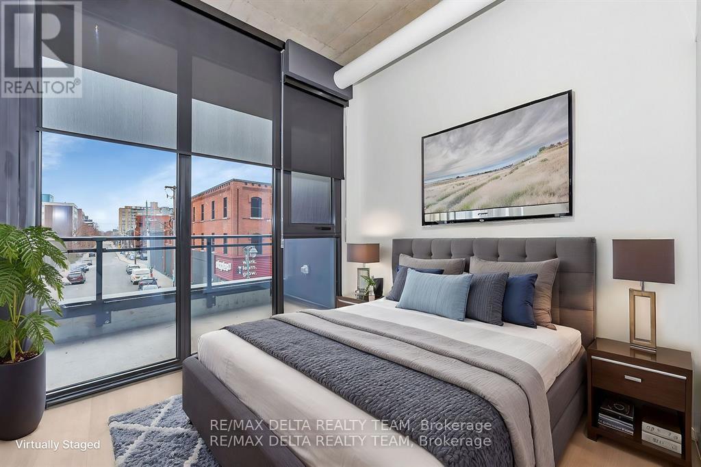 Welcome to James House! A modern boutique style condo in the heart of Centertown, just steps to amazing restaurants, shopping, transit, groceries, and of course the famous Rideau Canal! This open concept 2 bedroom unit boasts modern exposed concrete, high ceilings, a sleek designer kitchen with loads of storage, engineered stone counters, SS appliances, built-in fridge & dishwasher, plus a large island w/ breakfast bar, floor to ceiling windows, balcony, in suite laundry & luxury vinyl plank flooring throughout. Both generous sized bedrooms offer large closets for plenty of storage and the primary bedroom has access to the large spa-like cheater ensuite. Everything you need to enjoy urban living is here at James House from the designer lounge, roof-top pool, exercise room and more! INCLUDED in your rent - 1 underground parking space, high speed internet, heat, A/C & water! (id:64974)