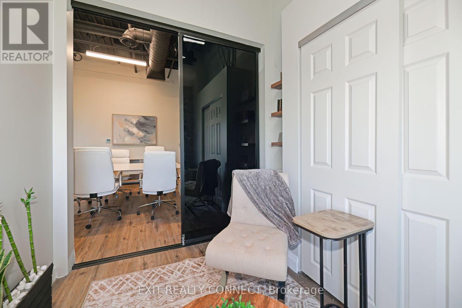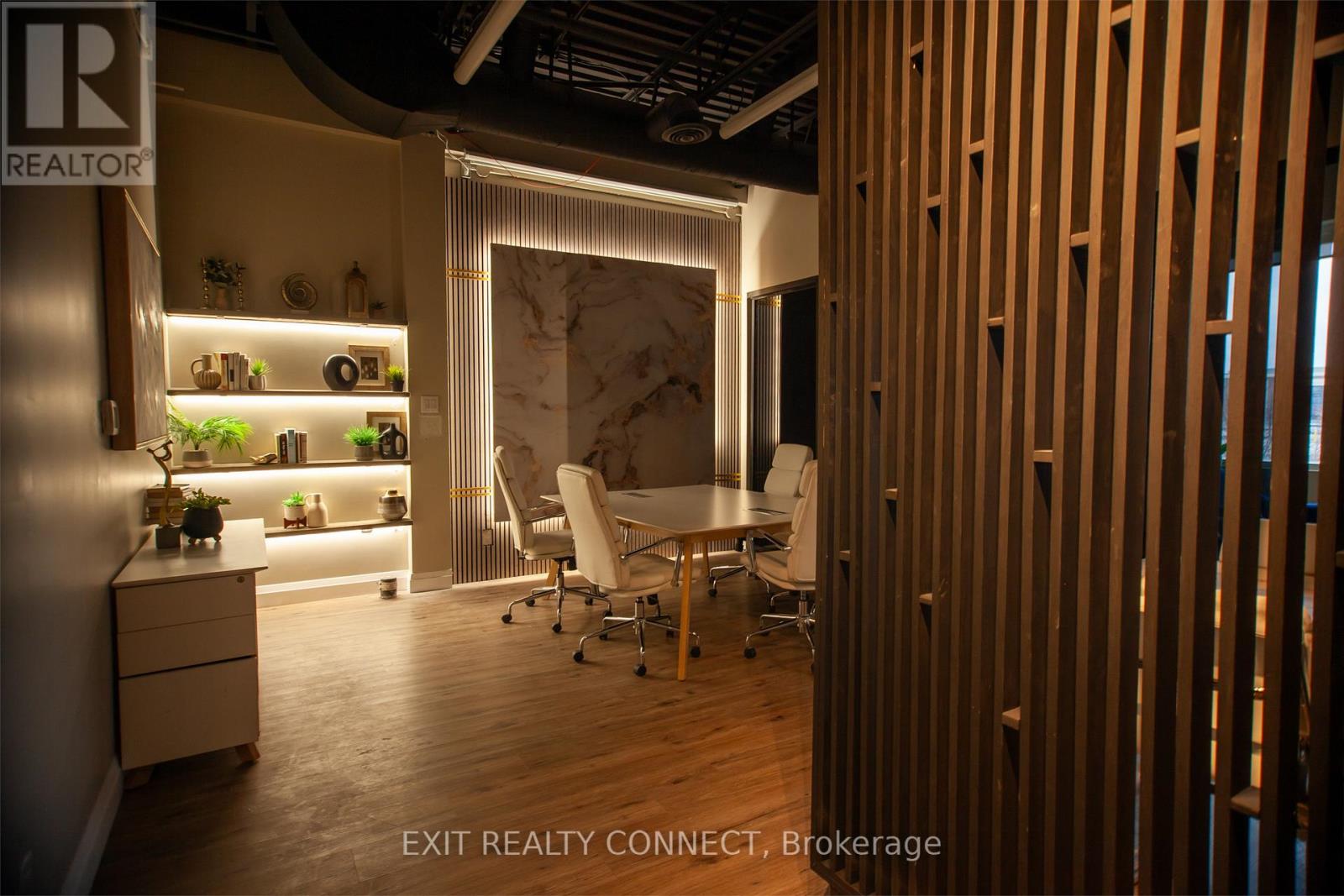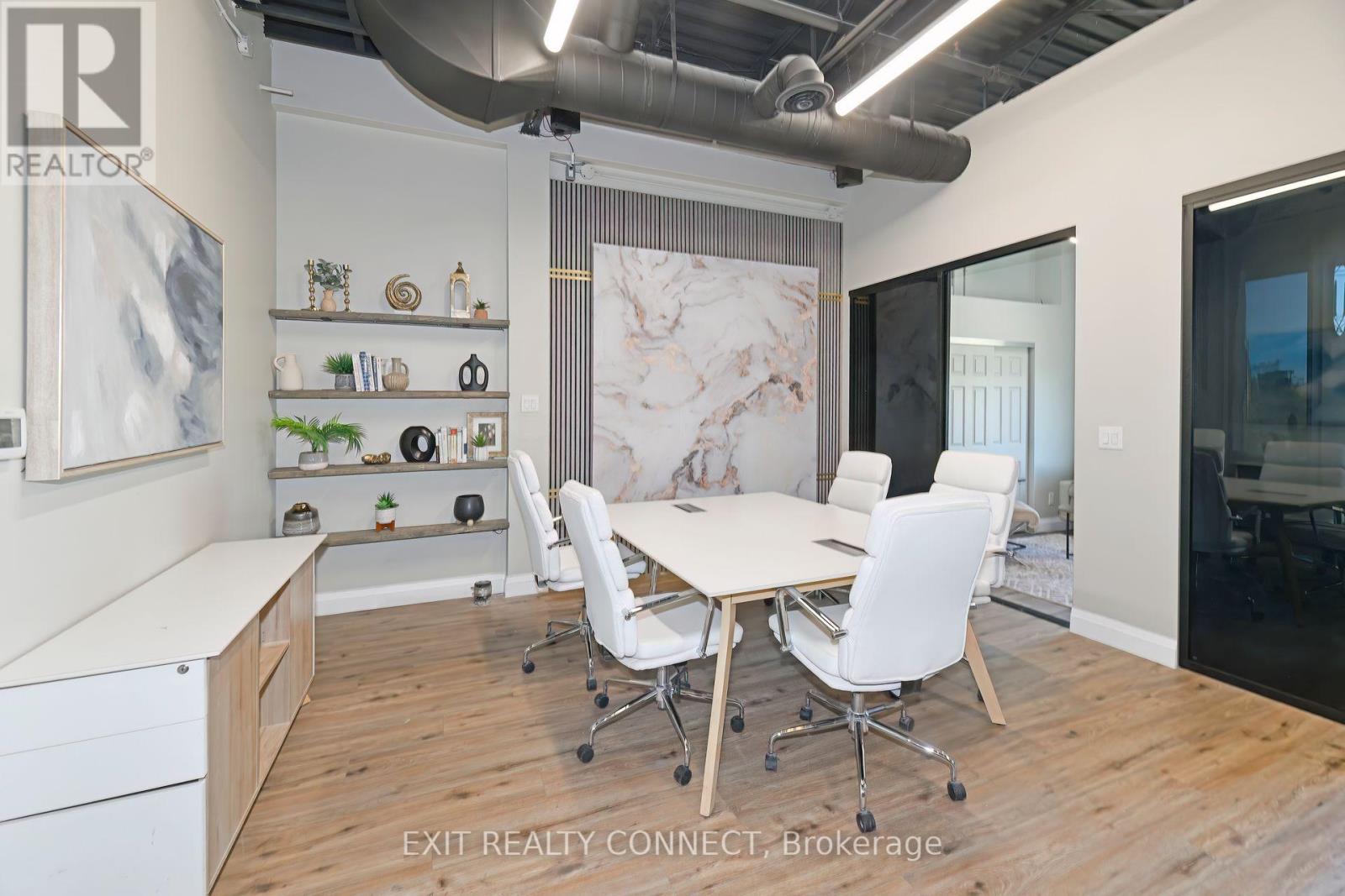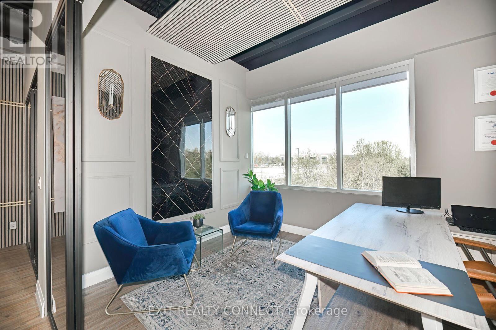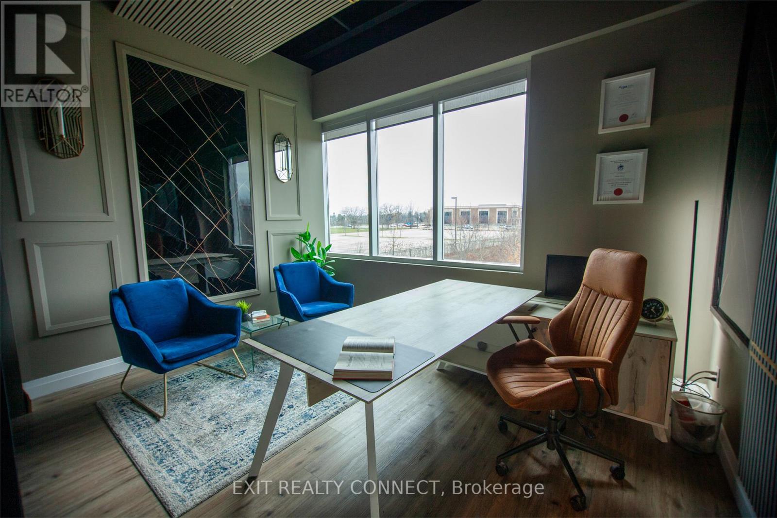 Discover the Potential at 3485 Rebecca Street #208 a bright, professional space designed to elevate your business. With impressive 12-footceilings and large windows, this unit offers natural light and a view of the adjacent green space, creating a welcoming and private atmosphere for clients and teams alike. open work space plus 2 private offices provides a modern executive office experience. Step into a professionally finished custom setting with high end finishes. Additional features include access to shared amenities including a sleek 416 sq ft boardroom and a 242 sq ft kitchen & lounge perfect for meetings, collaboration, and day-to-day convenience. Positioned on one of Oakville's high-traffic corridors with over 20,000 vehicles passing daily, Unit 208 boasts excellent signage opportunities and exposure. The property also offers direct access to a9-acre grocery-anchored retail plaza, enhancing convenience and walkability for your clients and team. Ample parking and proximity to the QEW ensure seamless access, while the surrounding mix of industrial, retail, and upscale residential neighborhoods makes this a prime location for any growing business. Need more space? This unit can be combined with Unit 209. Opportunity knocks elevate your business at Rebecca Street today (id:64974)