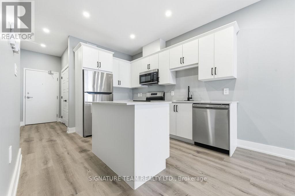 For Rent; A stunning brand new one bedroom plus den, one full bath apartment in Eganville, perfect for seniors or professionals seeking a low-maintenance lifestyle. This second floor unit in an elevator serviced, secure building offers direct access to a private balcony with lovely views of the valley. The bedroom features a walk in closet. Bathroom is wall to wall tile with walk in shower. The modern white kitchen with elegant black trim and subway tiled backsplash is more than you would expect to see in an apartment and the granite counters makes this the talk of the town. All kitchen major appliances are included and each unit has its own laundry hook-up, HRV system, full sized hot water tank and heat pump for your individually controlled A/C. In floor heating that is controlled in each unit is included in your rent as is water, sewer and parking. Hydro and internet/ phone is the tenants responsibility. Eganville is a great family friendly community surrounded by nature! (id:64974)