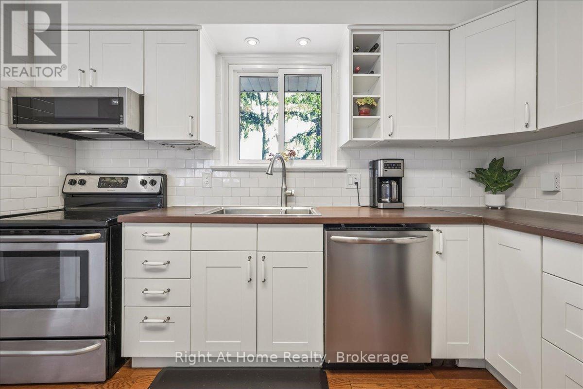 Nestled in a highly coveted pocket of College Park, at the desirable quiet end of Mccraney, this meticulously maintained raised bungalow offers a rare opportunity for young professionals and growing families. Just two houses away from the entrance to the renowned 16 Mile CreekTrail System, one of Oakville's most scenic landscapes. Families will also appreciate being within walking distance to the highly rated Sunningdale Public School. Step inside to a bright, open-concept main level, featuring beautiful hardwood flooring and a layout designed for entertaining. The renovated kitchen and dining area boasts enviable built in cabinetry complete with pull out pantry drawers for optimal storage. 3 generous bedrooms and a contemporary bathroom with a convenient shower complete this level. Downstairs you'll find a bright fourth bedroom with an above grade window-ideal for guests or a quiet home office. a second updated bathroom on the lower level features a luxurious jetted tub, perfect for unwinding after a long day. The large family room, with laminate flooring and pot lights is an ideal space to watch a movie or the kids play, Note: The charming wood-burning fireplace has never been used by the current owners and is being sold as-is. (an inspection is recommended) Peace of Mind upgrades include: Built-in Microwave (2025) freshly paved driveway(2024), Washer/Dryer (2024), Dishwasher (2024) High Efficiency Lennox AC and Furnace (2019)Hot Water Tank is Owned, no monthly contracts. Don't miss your chance to experience the perfect blend of Modern Comfort and Community Charm at a Competitive Price Point. Book your Showing with confidence. (id:64974)