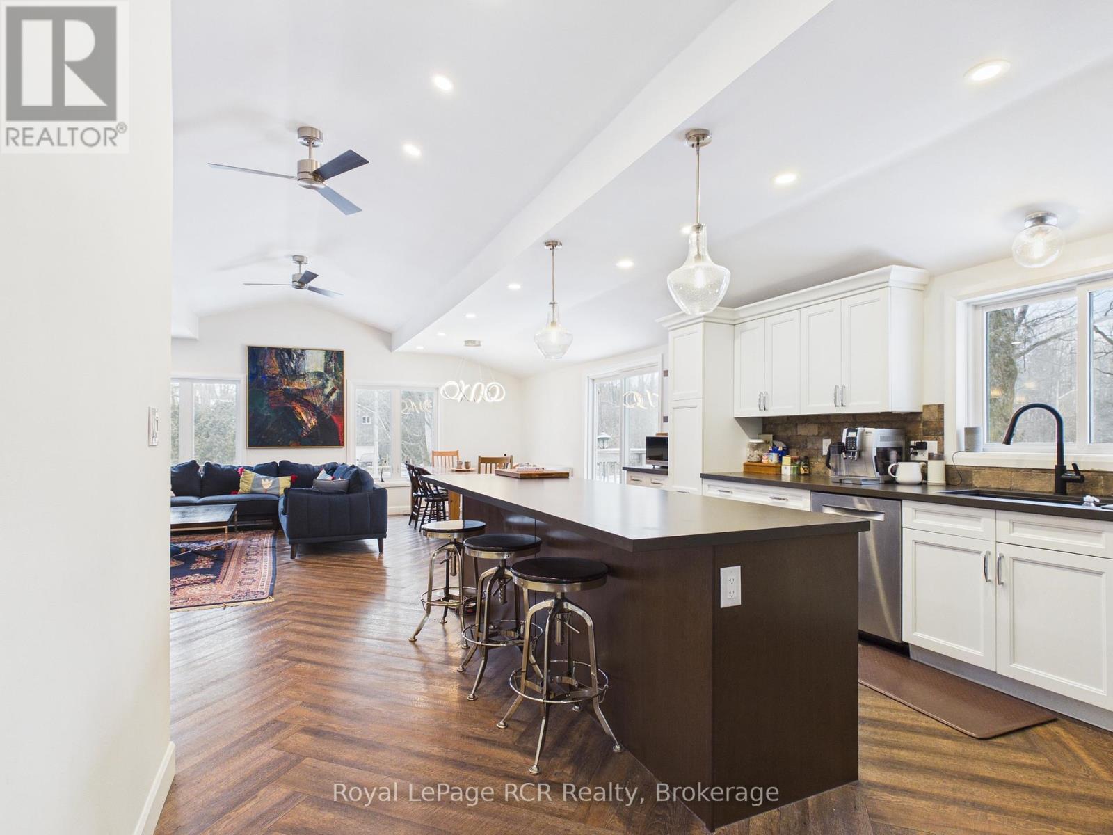 Imagine a home where the whole family fits... and it helps pay the bills! Welcome to this incredible 7-bedroom, 5-bathroom property in Eugenia, offering the perfect setup for multigenerational living, an income property, or a combination of both. Just a short 5-minute walk to the beach and minutes to the area's popular ski hills, this location offers a year-round lifestyle. Originally renovated in 2018 with approximately $350,000 in improvements, the home has been successfully operating as a licensed Airbnb since 2019, with the flexibility to continue generating income or accommodate family living. The thoughtful layout features two separate living spaces connected by a central shared living room. Inside, you'll find a spacious and welcoming interior with newer vinyl flooring, pot lights and updated bathrooms. The kitchen is well-equipped for hosting and large groups, featuring an industrial stove with venting. Wood fireplaces add warmth and character throughout the home. The property includes a 2 self-contained basement areas, each with two bedrooms, providing additional flexibility for guests or rental opportunity. A wrap-around deck creates the perfect space for relaxing and entertaining. Major mechanical updates include a new propane forced-air furnace and central air conditioning (2021), updated hot water tanks, and 400-amp electrical service. Outside, you'll find a detached garage with storage and a shed, offering plenty of room for tools, toys, and outdoor equipment. Currently generating strong short-term rental income with nightly rates ranging from $225-$300 and peak weeks around $3,000, this property offers exceptional flexibility and investment potential in one of Grey County's most desirable recreational areas. A rare chance to own a spacious home that can bring family together while also generating meaningful income. (id:64974)