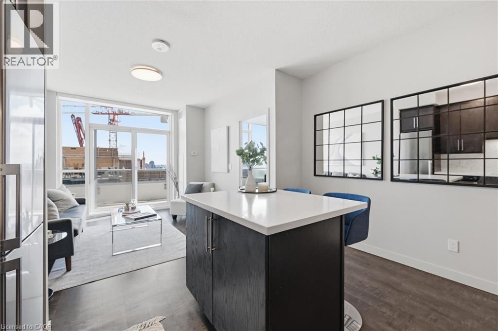 Sought-after Paradigm Condominium with south-facing lake views! This impressive 1-bedroom plus den suite offers 627 square feet of thoughtfully designed space with a smart, functional layout. The modern kitchen features extended cabinetry, a seated island, and stainless steel appliances, opening effortlessly into the bright living area — ideal for both relaxing and entertaining. The versatile den/bonus room provides the perfect flex space for a home office, gaming area, or cozy reading nook. Step out onto the generously sized balcony with southern exposure, filling the unit with natural light throughout the day. Included with the suite is one underground parking space and a storage locker. Indulge in the abundance of lavish building amenities, including a sky lounge, indoor pool, fitness centre, basketball court, party room, children’s playroom, outdoor activity area, terrace with lounge seating and multiple BBQ stations, theatre room, ground-level bike storage, and guest suites. Also, 24-hour concierge, secure key-fob access, video surveillance and controlled entry systems. Ideally located beside the GO Train Station, with nearby shopping, and quick access to the waterfront and all the attractions of downtown Burlington. An exceptional blend of comfort, convenience, and lifestyle — this is condo living at its finest. (id:64974)