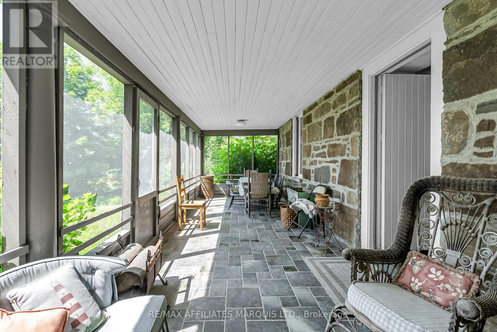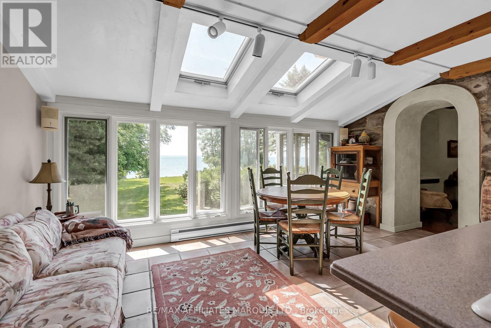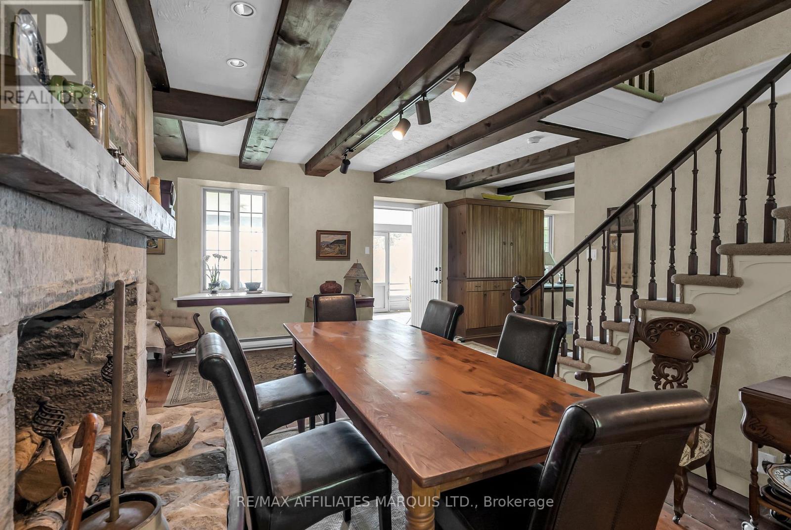 A truly special waterfront estate on 3.17 acres with 145 feet of shoreline on Lake St. Francis. Built in 1832 and updated in 1994, this timeless stone home is rich in character and offers the perfect blend of heritage charm and everyday comfort. Set back from the road along a private laneway, the property feels like a peaceful escape, surrounded by mature trees and breathtaking lake views. Inside, the home features original details and three wood-burning fireplaces in the dining room, primary bedroom, and the walkout basement. The main level includes a cozy living room, a welcoming kitchen, and a screened-in porch where you can enjoy morning coffee while watching the sun rise over the water. Upstairs you'll find three bedrooms, including a water-facing primary suite with a fireplace, ensuite bath, and convenient upstairs laundry. The lower level offers a warm and inviting family room with another fireplace and walkout access to the yard. A separate 3-bedroom, 1-bath cottage sits on the property with its own screened-in porch, 200-amp service, and separate hydro meter perfect for extended family, guests, or potential rental income. The home is serviced by two wells and two septic systems. Additional features include a detached 2-car garage with a loft and a separate outbuilding currently used as an art studio. A small beach area, gorgeous lake views, and room to roam make this property ideal for families seeking both beauty and function in a lakeside setting. This is a rare opportunity to own a piece of history and create unforgettable memories in a one-of-a-kind setting. Just minutes from the Quebec Border.This property is just minutes away from a private airport, giving you quick access. 24 hour irrevocable on all offers. (id:64974)