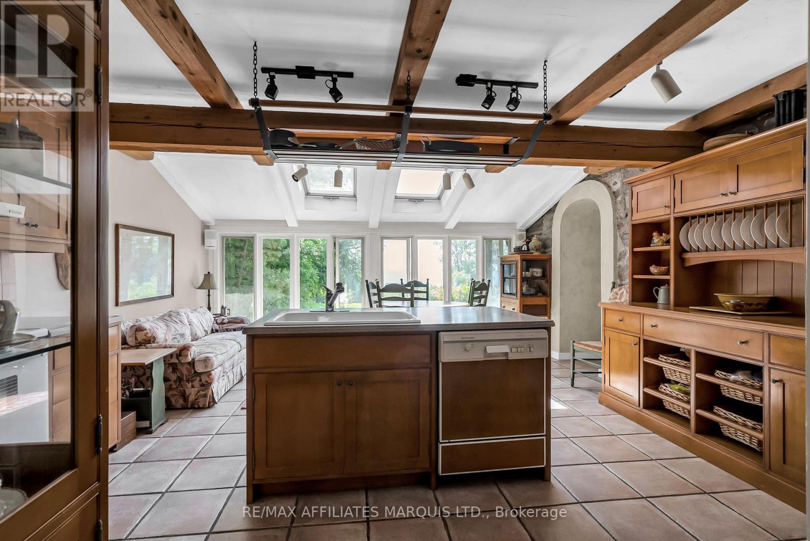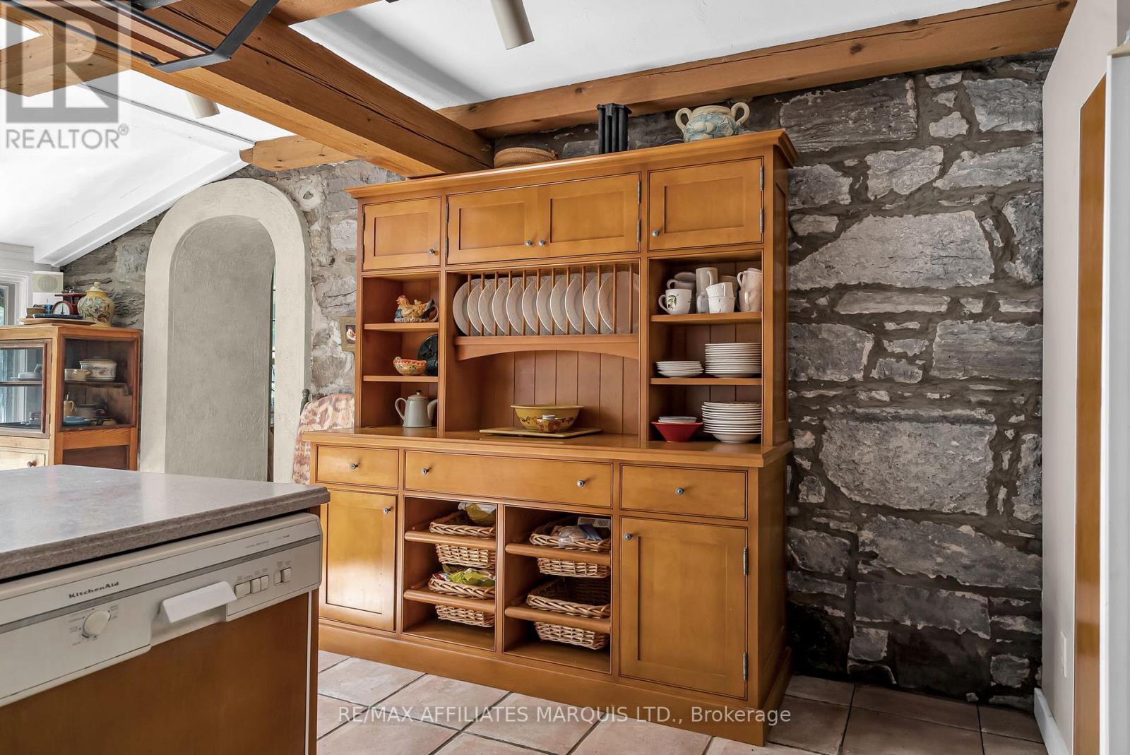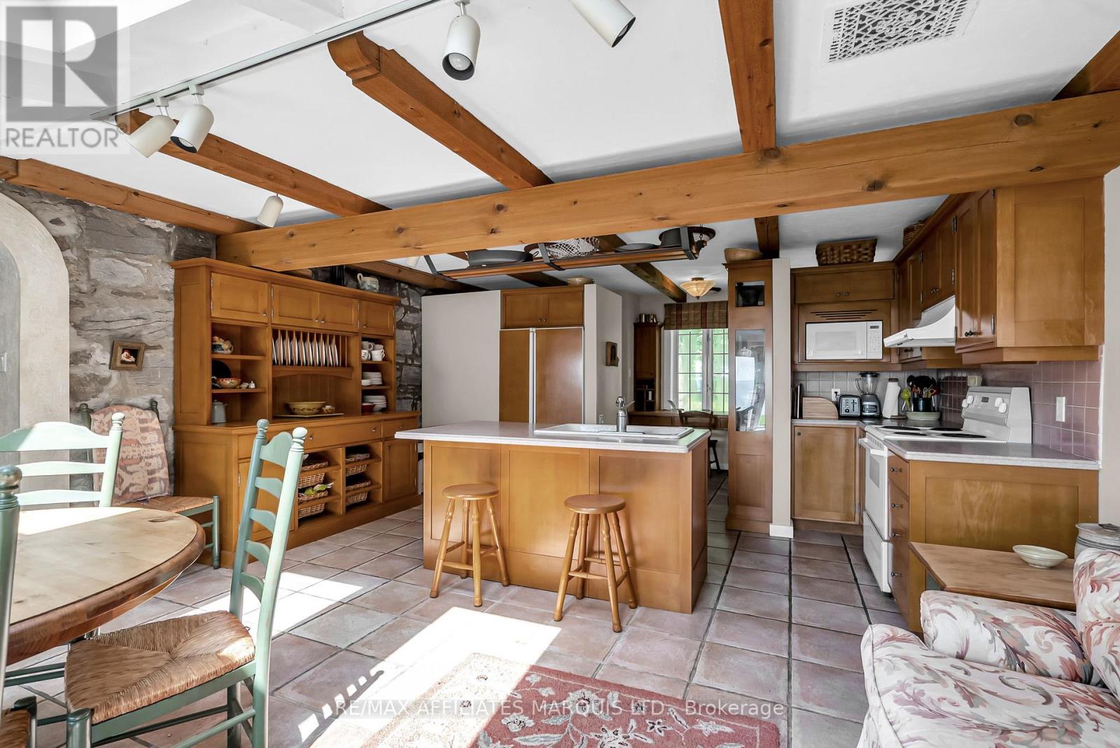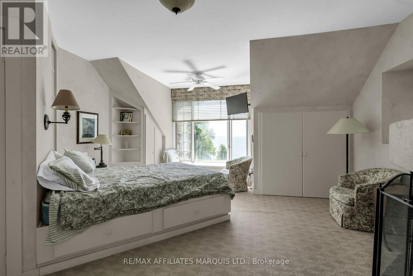 A truly special waterfront estate on 3.17 acres with 145 feet of shoreline on Lake St. Francis. Built in 1832 and updated in 1994, this timeless stone home is rich in character and offers the perfect blend of heritage charm and everyday comfort. Set back from the road along a private laneway, the property feels like a peaceful escape, surrounded by mature trees and breathtaking lake views. Inside, the home features original details and three wood-burning fireplaces in the dining room, primary bedroom, and the walkout basement. The main level includes a cozy living room, a welcoming kitchen, and a screened-in porch where you can enjoy morning coffee while watching the sun rise over the water. Upstairs you'll find three bedrooms, including a water-facing primary suite with a fireplace, ensuite bath, and convenient upstairs laundry. The lower level offers a warm and inviting family room with another fireplace and walkout access to the yard. A separate 3-bedroom, 1-bath cottage sits on the property with its own screened-in porch, 200-amp service, and separate hydro meter perfect for extended family, guests, or potential rental income. The home is serviced by two wells and two septic systems. Additional features include a detached 2-car garage with a loft and a separate outbuilding currently used as an art studio. A small beach area, gorgeous lake views, and room to roam make this property ideal for families seeking both beauty and function in a lakeside setting. This is a rare opportunity to own a piece of history and create unforgettable memories in a one-of-a-kind setting. Just minutes from the Quebec Border.This property is just minutes away from a private airport, giving you quick access. 24 hour irrevocable on all offers. (id:64974)