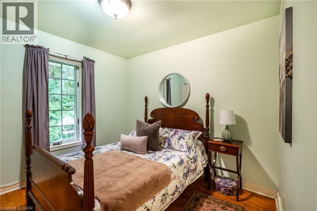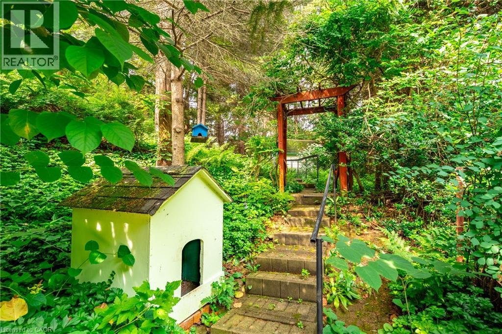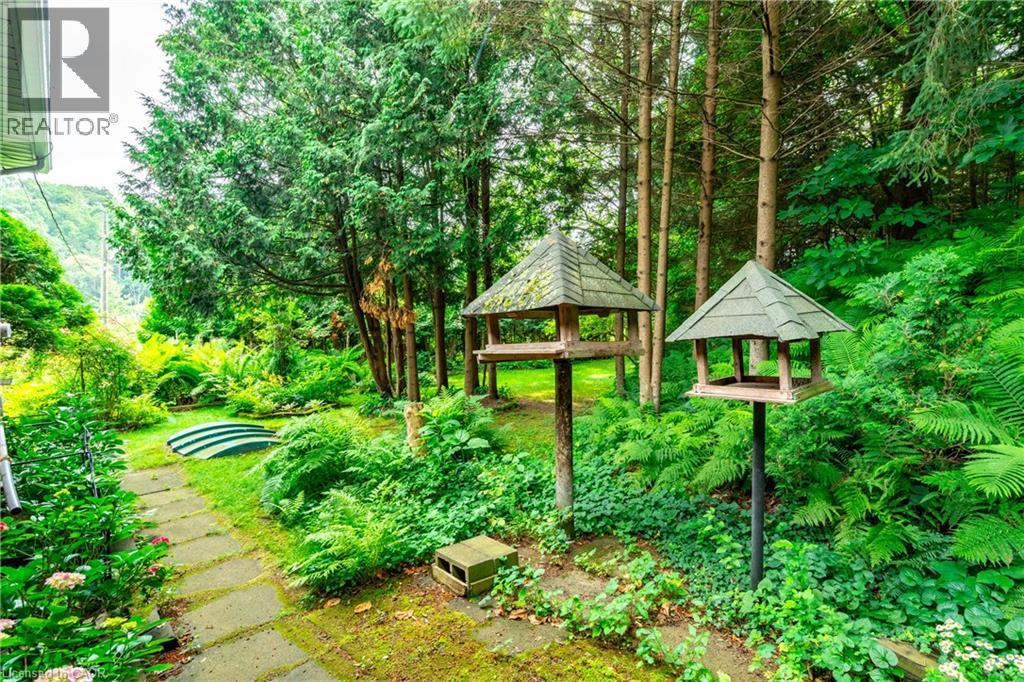 Welcome to this custom-built bungalow in the heart of the Short Hills, backing onto protected conservation land and a large tranquil pond. Built in 1988 and offering over 1,650 sq ft of living space, this well-maintained home features 3 bedrooms, 2 full bathrooms, and beautiful hardwood flooring throughout. The sunken living room with wood-burning fireplace adds warmth and character, while large windows offer peaceful views of nature year-round. The kitchen and bedrooms walk out to an extensively landscaped oasis - perfect for relaxing or entertaining. The walkout basement includes access to the attached oversized single-car garage and offers future potential for more living space or in-law setup. Tucked away on a quiet street just minutes to Fonthill, Thorold, and nearby trails, this is a rare opportunity to enjoy privacy, nature, and timeless quality in one of Niagara's most desirable settings. (id:64974)