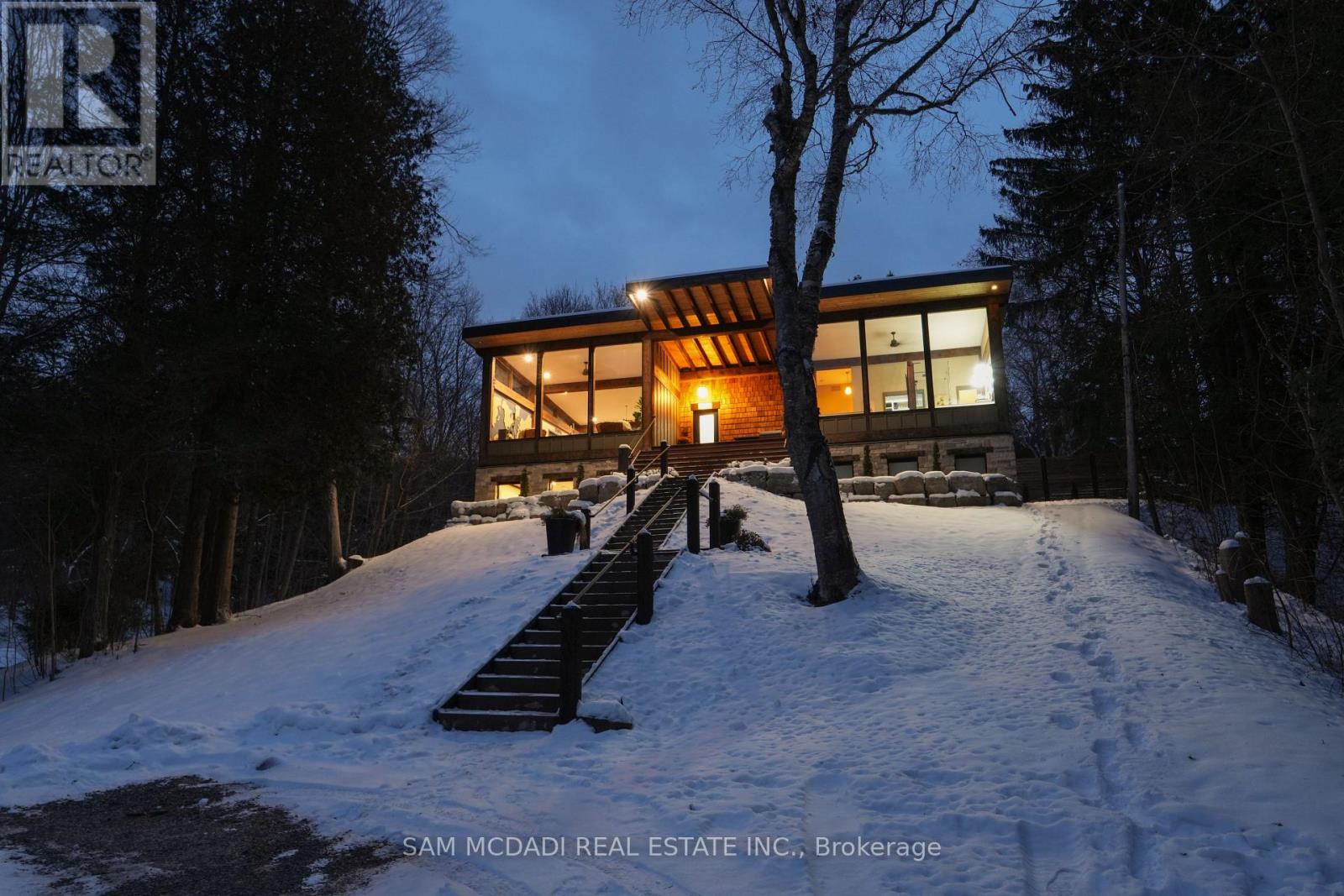 Welcome to 2084 Grand Blvd., a contemporary 3-bedroom, 4-bath summer home set within the exclusive, gated community of Cedar Springs, nestled along the Niagara Escarpment in the sought-after village of Kilbride, just 15 minutes from downtown Burlington. This private enclave of only 83 homes spans over 600 acres of protected nature and trails and offers a challenging golf course, pickleball and clay tennis courts, a sandy beach, and a vibrant community with year-round events, including a summer camp for children and grandchildren. Designed for recreation and entertaining, the home offers over 3,600 sq ft of living space across two levels with ceilings up to 12 ft, highlighted by post-and-beam Douglas fir timbers and sweeping views of the golf course and escarpment, with the first tee just steps from the front door. The main level features open-concept kitchen, dining, and living areas overlooking the first fairway, with a chef-inspired kitchen offering built-in appliances, walk-in pantry, and oversized center island, while the dining area comfortably seats twelve. The serene primary suite enjoys golf course views, a dressing room, and spa-inspired ensuite, while two additional bedrooms share a Jack-and-Jill ensuite and walk-in closets. The walk-out lower level is an entertainer's retreat with theatre, golf simulator, games area, wet bar, gym, office or optional fourth bedroom, fourth bathroom, and an approx. 500 sq ft workshop/garage with glass walls. Outdoor living includes a covered front porch, rear timber/composite deck with glass railings, fire pit area, raised garden beds, and parking for up to 12 vehicles. Built with an ICF foundation, Shou Sugi Ban, protected Douglas fir framing, spray foam insulation, in-floor radiant heating, unlimited hot water, UV-treated spring water, and Ecoflo septic system, this is a rare offering delivering comfort, privacy, and resort-style living within the GTA. Please note: Certain seasonal provisions apply to the property. (id:64974)