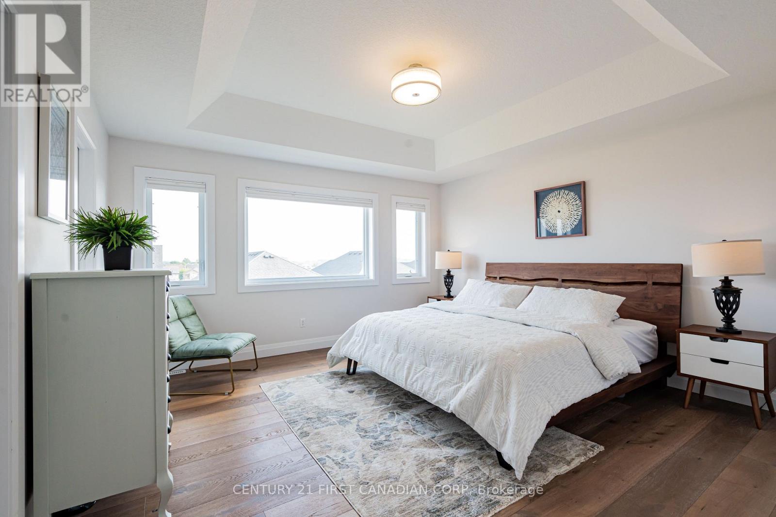 Welcome to this well-maintained 2-storey home in one of North London's most desirable neighbourhoods. Offering 4+1 bedrooms plus a bonus room, this home provides flexible space for families, guests, or a home office setup. The main floor features a bright, open-concept layout with quartz countertops throughout and hardwood flooring across the main and second levels. The kitchen flows seamlessly into the living and dining areas, creating a practical space for everyday living and entertaining, complete with a fireplace for added comfort. Upstairs, you'll find 4 spacious bedrooms, including a primary suite with both a walk-in closet and an additional closet. One of the secondary bedrooms also features a large walk-in closet. From the primary bedroom, enjoy a clear view across the city with a sightline toward downtown, a unique feature that adds to the overall feel of the home. The fully finished walkout basement adds valuable living space with an additional bedroom, a large rec room, a second fireplace, and a bonus room ideal for a gym, office, or storage. Durable flooring runs throughout the lower level, with direct access to the backyard. Step out onto the elevated deck, offering a great outdoor space overlooking the yard. The backyard provides excellent natural light throughout the day and enhances the indoor & outdoor flow of the home. Located on a quiet street in a strong family neighbourhood, close to top-rated schools, parks, walking trails, golf, the YMCA, Masonville, and all amenities. A clean, move-in ready home with quality finishes, functional space, and features that stand out. (id:64974)