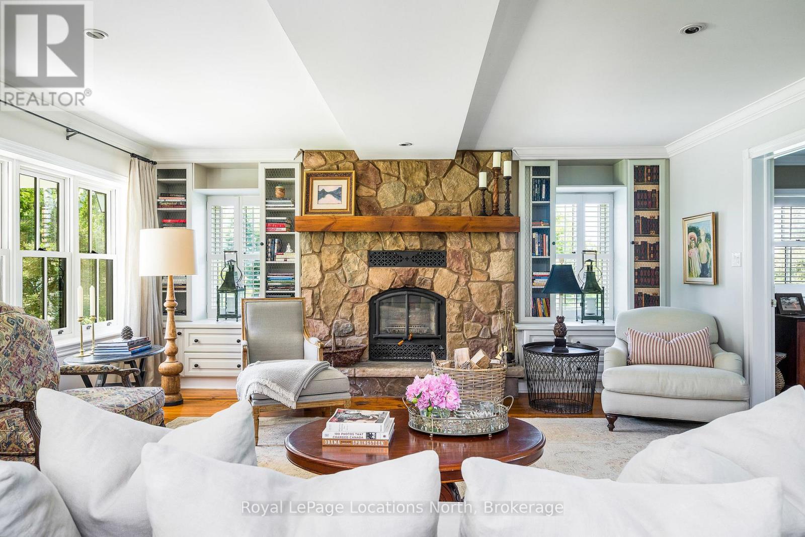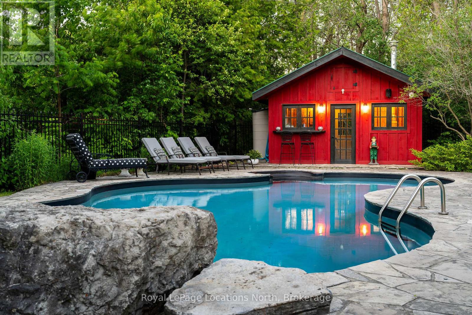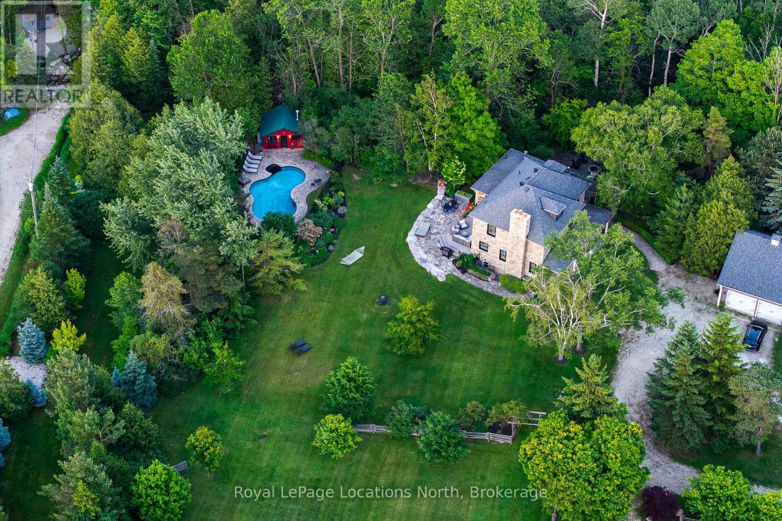Welcome to the historic Camperdown Sandhill Estate, a truly unique country retreat set on 2.5 private acres with panoramic views of the Niagara Escarpment and Georgian Bay.Perfectly positioned just minutes from the area's top ski clubs and the vibrant communities of Thornbury and Collingwood, this exceptional property blends rural charm with refined living.Lovingly and fully restored over the years, the home combines timeless character with modern comfort. Beyond the glass front entrance lies a gourmet kitchen with picture-perfect views of the English gardens and in-ground swimming pool. The bespoke dining room is designed for entertaining, comfortably accommodating up to 12 guests. The elegant living room features a wood-burning fireplace, creating a warm and inviting space for gatherings with family and friends.Upstairs, the second level hosts four spacious bedrooms and two bathrooms. The primary suite offers a private hallway entry, delivering a peaceful, retreat-like escape. The third floor adds versatile living space ideal for a kids zone, guest overflow, or a cozy recreational lounge.The fully finished lower level features a large rec room, a fitness area with sauna, and a full 3-piece bath. A separate entrance provides convenient access to the pool perfect for guests or easy transition from outdoor to indoor living.Outside, the property is nothing short of a showstopper. Spend your summer days lounging by the pool and cabana, or enjoy evenings around the fire pit, with the soothing sound of the nearby creek in the background. Two outbuildings provide generous storage for vehicles, tools, or recreational gear.This is a rare opportunity to experience the best of country living privacy, beauty, and proximity to everything that makes the Blue Mountains region so special. (id:64974)