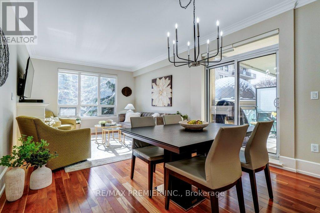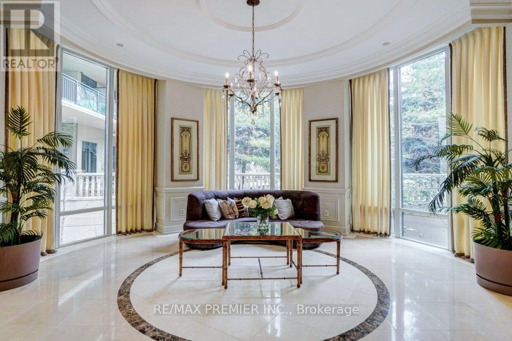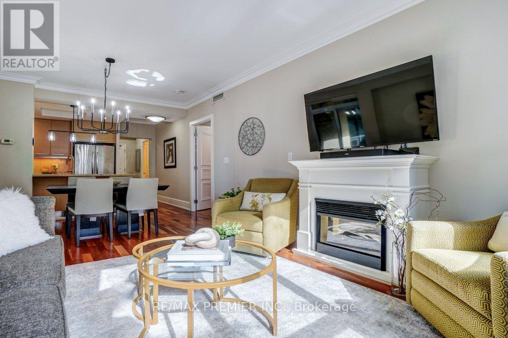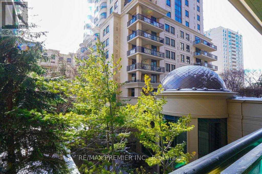 Welcome to an exceptional offering in the iconic St. Gabriel Village by renowned builder Shane Baghai, nestled in the prestigious Bayview Village community. This gorgeous, immaculate 2-bed, 2-bath residence offers 1,090 sf of refined living and represents one of the most attractive entry points into this exclusive, 2-tower enclave. This offering is uniquely positioned for discerning buyers seeking luxury, value and prestige. Thoughtfully designed and arguably the best 2-bedrm layout in the building, the suite features 9' smooth ceilings, a welcoming gas fireplace, and an ideal split-bedroom plan for privacy. South-facing exposure floods the space with natural light, while the 2nd floor setting offers tranquil, tree-filled views and exceptional privacy. Rich hardwood and marble flooring, solid interior doors, and quality finishes reflect Baghai's signature craftsmanship. The spacious primary retreat keeps you organized with closet organizers and a linen closet, and a large ensuite with lux features: a large jetted tub, separate shower with rain shower head and body jets, and a Toto Washlet. A modern LG WashTower (June 2025) enhances everyday convenience. The balcony includes a gas BBQ line for effortless outdoor cooking and entertaining. Inspired by French and Italian design principles with contemporary elegance, St. Gabriel Village offers superb management and 5-star hotel-like services: 24/7 concierge & security, valet parking and porter service (prompt deliveries to suites). Residents enjoy resort-style amenities including an indoor pool & hot tub, wet and dry saunas, fitness centre, games room, library, party room, visitor parking, beautifully landscaped gardens and a charming Village Square with a fountain. Steps to Bayview Village Shopping Centre, subway access and minutes to Hwy 401,404/DVP. This is sophisticated living at its finest. (See floor plan included with photos.) (id:64974)