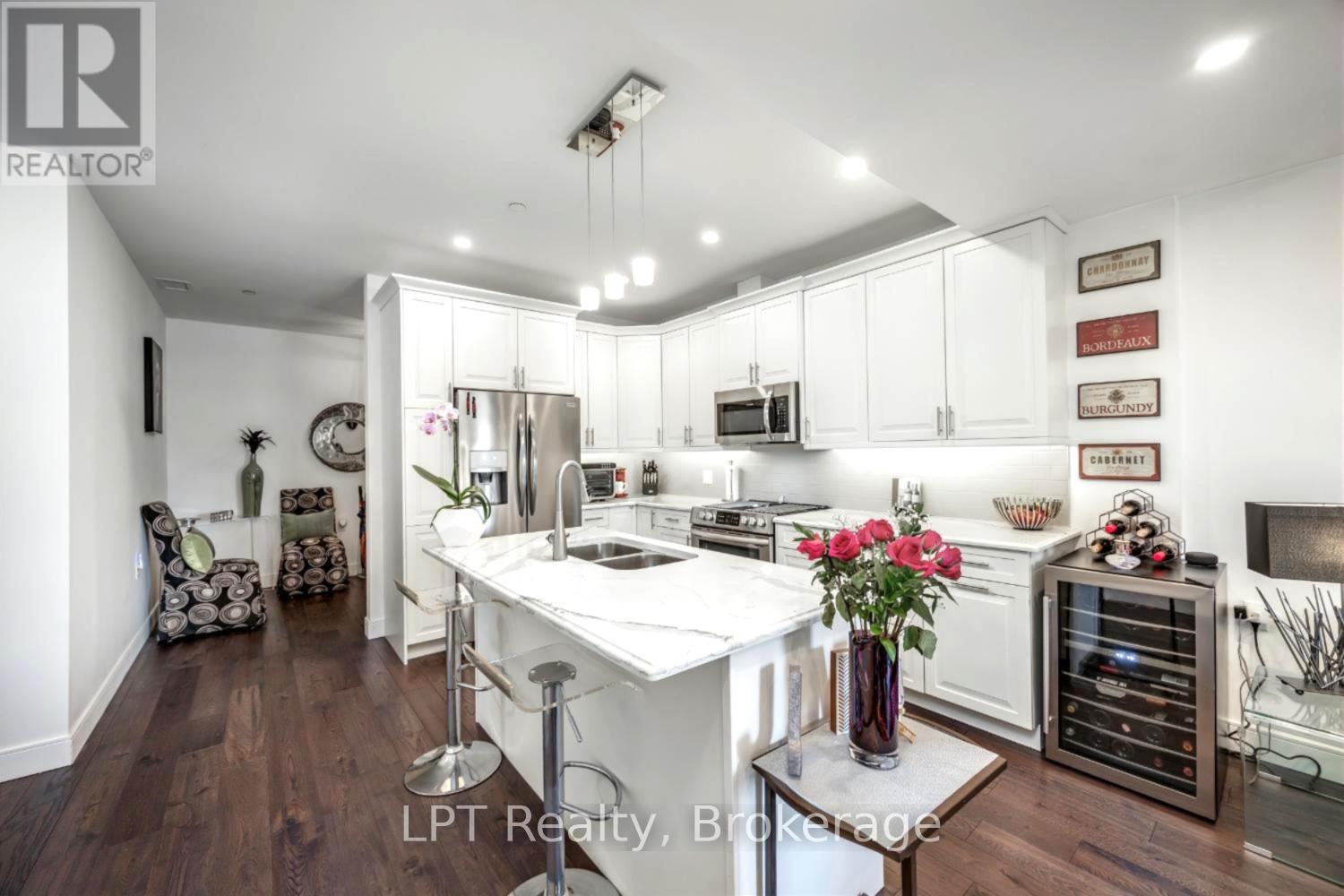 Welcome To Luxury Living At Harbour Breeze Condominiums In The Heart Of Downtown Cobourg. This Exceptional Corner Suite Offers 1,179 Sq Ft Of Elegantly Designed Living Space, Where Abundant Natural Light, Sophisticated Finishes, And A Premium Layout Create A Truly Elevated Lifestyle. From The Moment You Enter, You Are Greeted By A Spacious Foyer That Leads Into A Stunning Open-Concept Living Area Featuring Soaring 9 Ft Ceilings, Engineered Hardwood Flooring, And Expansive Windows That Flood The Home With Sunlight All Day Long. A Signature Benefit Of This Desirable Corner Unit. The Gourmet Kitchen Is A Showstopper, Designed For Both The Enthusiastic Home Chef And Entertainer Alike. Complete With Quartz Countertops, A Large Centre Island, And Ample Prep Space, It Seamlessly Blends Style And Functionality. The Thoughtfully Designed Layout Includes Two Generously Sized Bedrooms, Offering Privacy And Comfort. The Primary Suite Serves As A Luxurious Retreat With A Walk-In Closet And A Spa-Inspired Ensuite Featuring A Large Glass Walk-In Shower. Perfectly Positioned Just Steps From Cobourg's Vibrant Downtown, You Will Enjoy Boutique Shopping, Fine Dining, The Waterfront, Cobourg Beach, The VIA Station, And Quick Access To The 401. This Sun-Filled Corner Residence Also Includes A Convenient Storage Locker, Offering An Exceptional Opportunity To Experience Refined, Low-Maintenance Living In One Of Cobourg's Most Sought-After Communities. (id:64974)