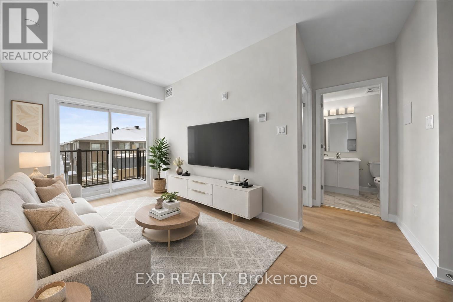 LIMITED TIME ONLY - NO CONDO FEES FOR TWO YEARS!! Experience modern living at its finest with The Dawn model by Mattamy Homes. This brand new 710 sqft condo features a spacious 1bed + den/1 bath layout. FIVE appliances included! The kitchen boasts stunning quartz countertops and a stylish backsplash, creating a sleek and functional cooking space. Enjoy the elegance of luxury vinyl plank flooring that flow seamlessly throughout the home complemented by smooth 9' ceilings that enhance the open feel. Step out onto your private balcony off the living room, perfect for relaxing and enjoying the view. Nestled in a prime location this apartment offers easy access to the great outdoors with nearby Henri-Rocque Park, Vista Park and the Orleans Hydro Corridor trail. For sports enthusiasts, the Ray Friel Recreation Complex and Francois Dupuis Recreation Centre are just a short drive away. Walk to shopping and restaurants. Convenience is at your doorstep with planned neighbourhood retail spaces on the main floor and easy access to transit. THIS HOME IS UNDER CONSTRUCTION. Photos used are to showcase builder finishes. (id:64974)