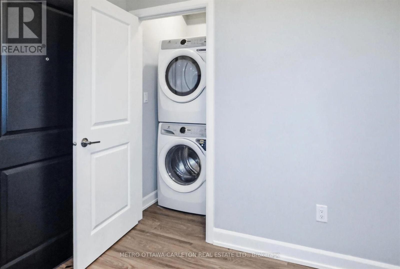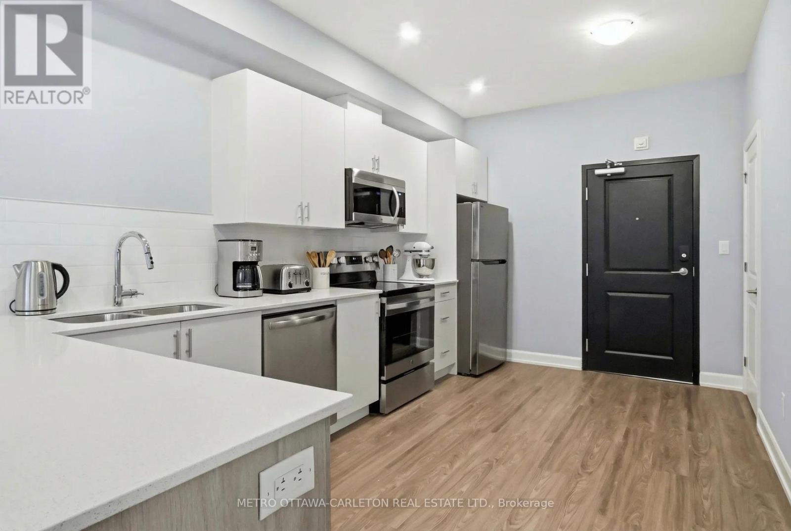 ***MARCH FREE RENT*** Ottawa, Blackburn Hamlet, minutes from Orleans. BRAND NEW "NON SMOKING" PROPERTY IDEAL FOR THE ADULT LIFESTYLE COMMUNITY. Available Immediately with a flexible start date! This Modern CORNER suite Apartment for rent, on the second level, features 593sq ft, 1 bedroom + 1 full bathroom. Open concept living/dining rooms w/luxury vinyl plank flooring throughout. This suite boasts plenty of natural light with a patio door to a PRIVATE COVERED balcony. Kitchen w/ample cupboards, quartz counter tops including stainless steel refrigerator, stove, dishwasher and over the range microwave. In suite laundry with stacked, full size washer and dryer (white). Bedroom of good size w/wall to wall closet. Spacious 4pce bathroom with bath/shower combo. Wall A/C (High efficiency Energy Star Heat Pump for heating and air conditioning). Window blinds included! Building amenities include an Elevator, Exercise Room, Parcel Room for At-Home-Delivery services, Bike room and Secure building access with 1 Valet/security cameras. High Speed Internet. Underground parking w/storage room as well as Designated Electric Vehicle (EV) underground parking w/storage available at an extra cost (limited availability-enquire within). Walking distance to trails, bike paths, parks, shopping, banks, grocery and Transit. Additional fees apply for water, high speed internet, hot water tank rental and hydro. **Some photos have been virtually staged** (id:64974)