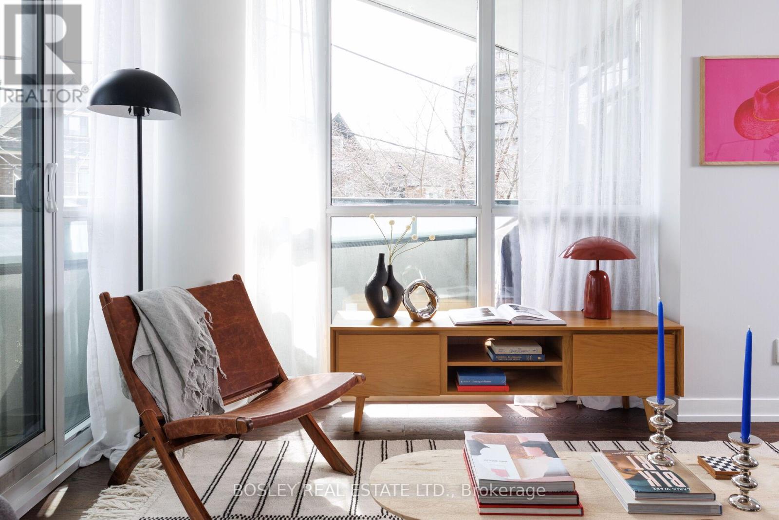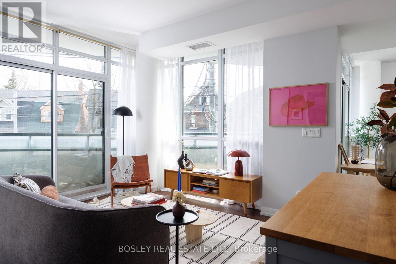 Tucked Within The Treetops In The Heart Of Roncesvalles Village, This Sun-Drenched Corner Suite Is A Study In Warmth, Light, And Effortless Calm. From Gentle Morning Glow To Golden Evening Sunsets, Every Moment Here Feels Quietly Elevated. Suite 2O9 Unfolds With A Rare Sense Of Ease - Gracious, Airy Interiors That Invite Both Everyday Living And Unhurried Lingering, All Complemented By Exceptional Storage Throughout. The Highly Sought-After Layout Offers Two Generous Bedrooms, A Versatile Den, And Two Beautifully Finished Bathrooms, Including Ensuite, All Flowing With Intention And Ease. Outdoor Living Isn't An Afterthought Here - It's A Highlight. Three Private Terraces Create The Perfect Rhythm For The Day: Morning Coffee Among The Trees, Sun Lit Afternoons, And Relaxed Warm Summer Evenings (They Will Be Here Before You Know It!) Perfectly Positioned, You're Just Moments From High Park, The Vibrant Shops And Restaurants Of Roncesvalles, And Seamless Transit With The TTC At Your Door And The Up Express And GO Minutes Away. With Parking And Bike Storage Included, This Is A Rare Offering In One Of Toronto's Most Cherished Neighborhoods - Refined, Relaxed, And Ready To Call Home. (id:64974)