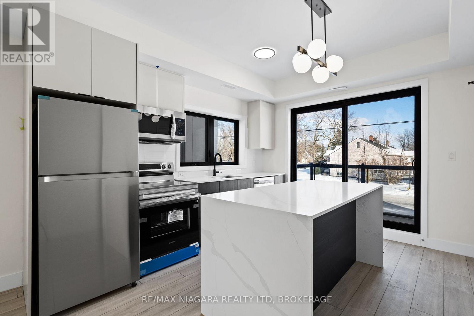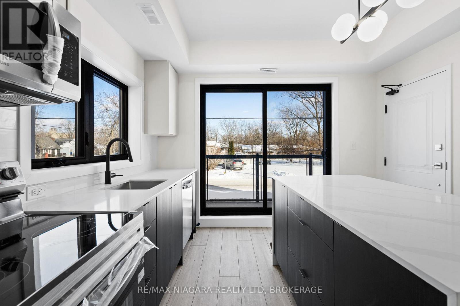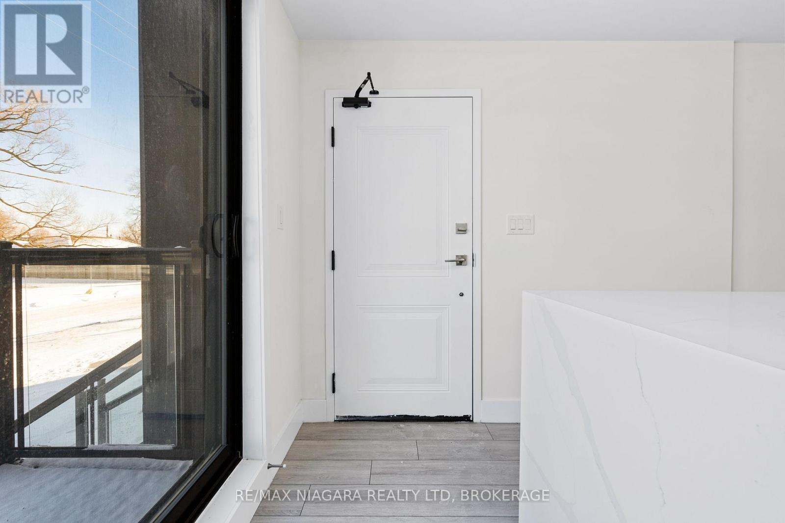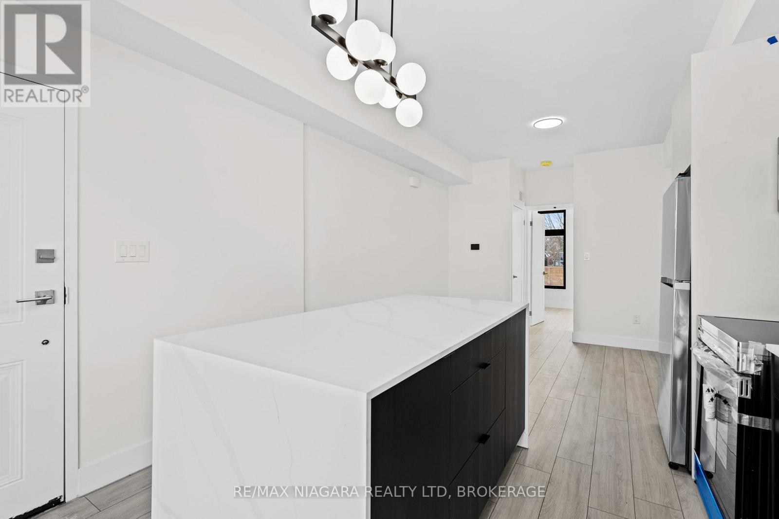 Welcome to Niagaras Latest Urban Retreat! Experience modern living in this pristine 480 sq ft condominium, ideally positioned in the heart of Niagara Falls. This never-lived-in unit boasts an efficient one-bedroom, one-bathroom layout, perfect for professionals or those seeking a stylish, low-maintenance lifestyle.Step into a world of elegance with high-end finishes throughout this contemporary space. The open-plan living area is bathed in natural light, featuring 9-foot smooth ceilings that enhance the sense of space. The sleek, modern kitchen is equipped with stainless steel appliances, quartz countertops, flat-panel cabinetry that extends to the ceiling, and a stylish tiled backsplash. Wide plank designer flooring flows seamlessly throughout the unit, adding a touch of luxury and durability.Relax in the cozy bedroom designed with wood flooring and a spacious closet, providing ample storage solutions. The bathroom echoes the units modern aesthetic with porcelain tiles, an undermount sink, and premium fixtures.This condo offers ultimate convenience, located steps from public transit and just minutes from major retail stores such as Costco, Winners, Walmart, and Metro. With the exciting new Niagara Falls hospital nearby and the iconic Falls just a short drive away, this location is as practical as it is appealing.Ideal for those who value design and convenience, this condo is a perfect blend of style and functionality. Make it yours today and step into the vibrant Niagara lifestyle! **EXTRAS** Brand New Appliances including Washer/Dryer combination unit for the ultimate in convenience. (id:64974)