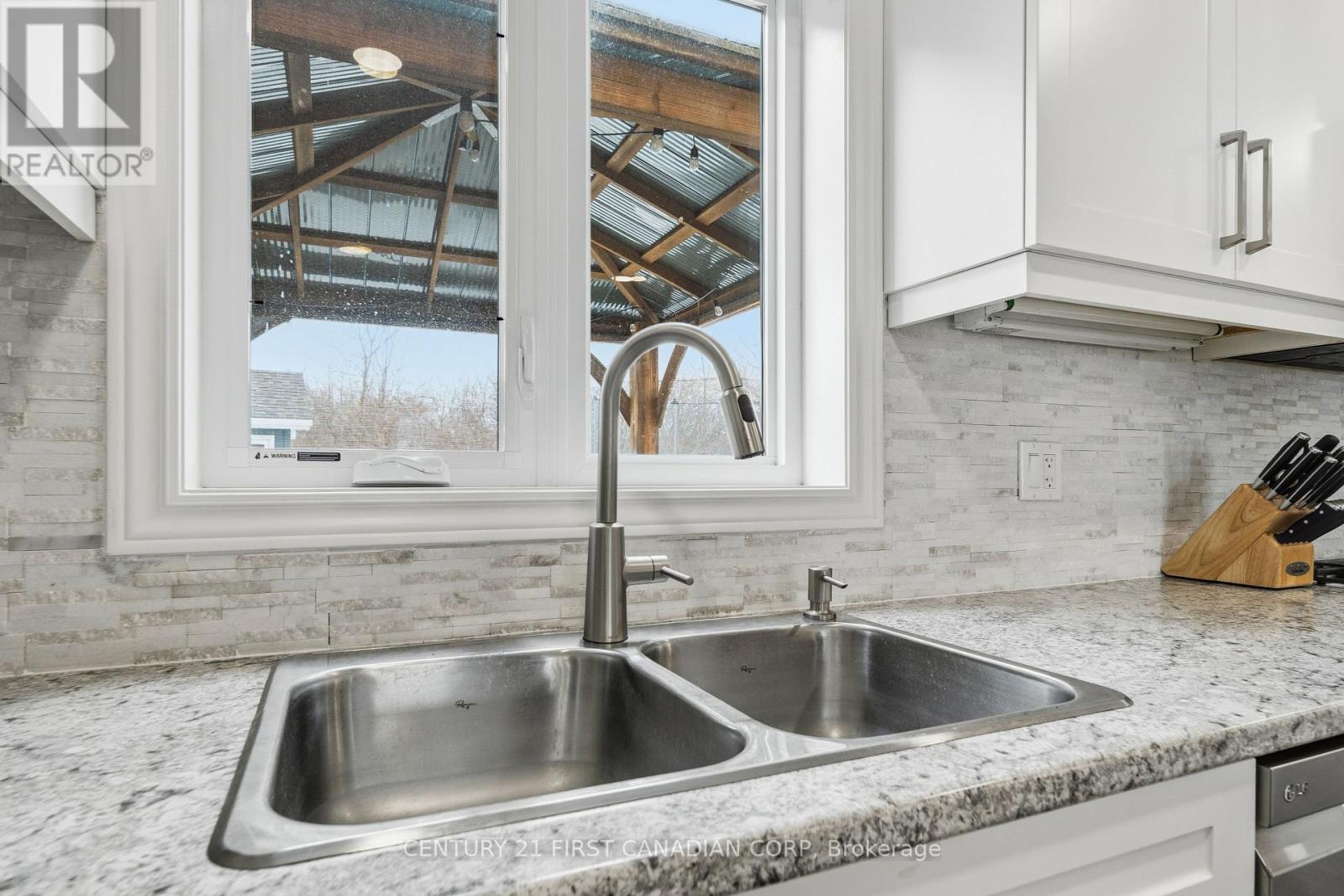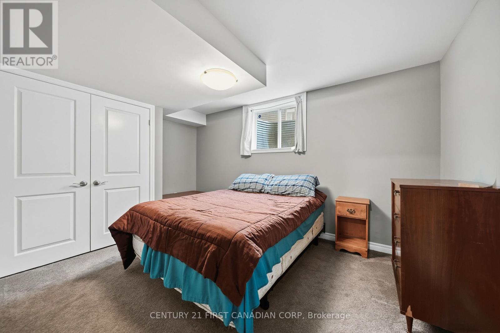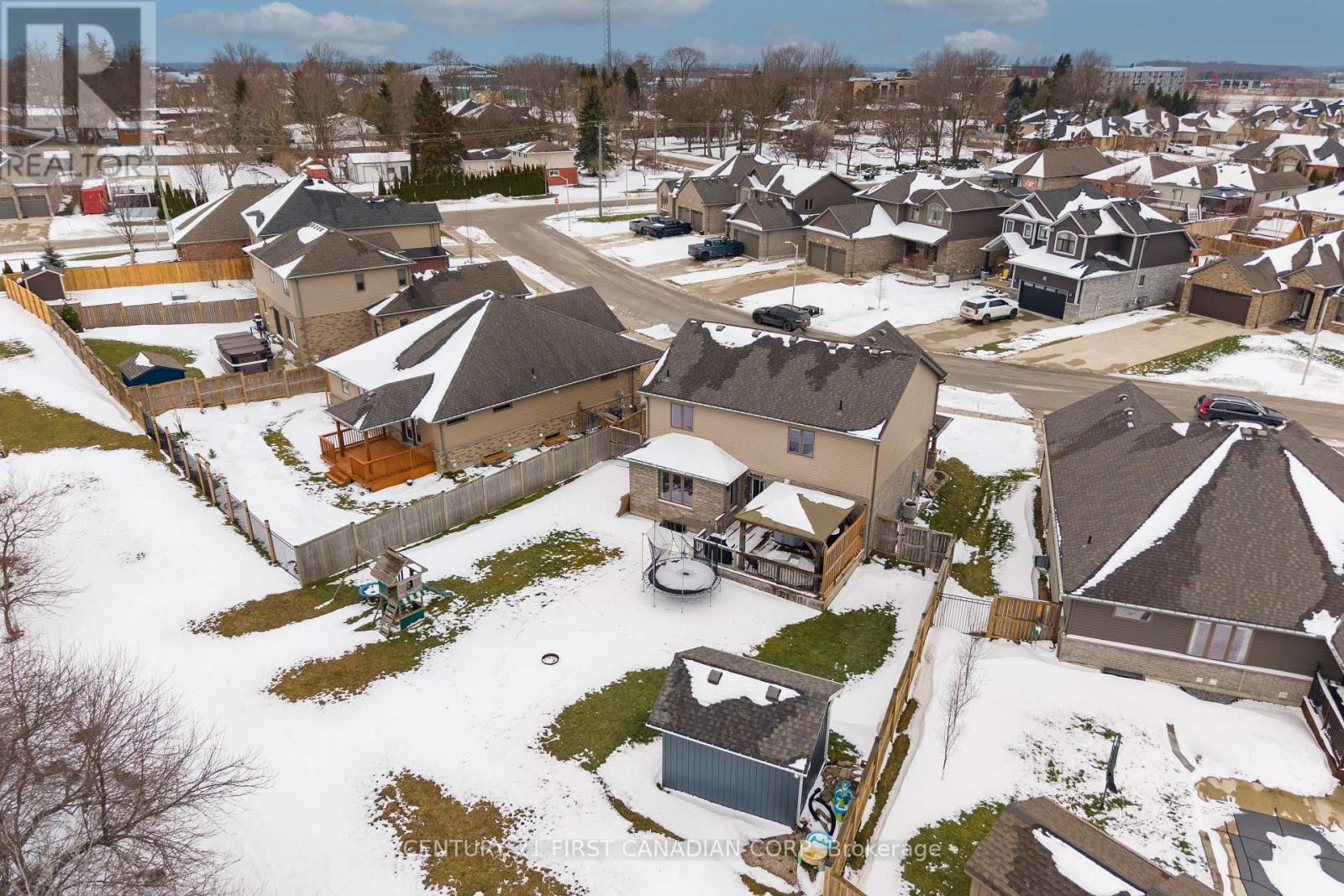 Welcome to 209 Campanale Way in the Ridge Crossing subdivision, conveniently located just a short walk from Wilberforce Public School, the Lucan Arena and Community Centre, the walking path plus a ton of great local amenities. As you step inside, you're welcomed by a formal dining room that can also be used as a sitting area or home office. Toward the back of the home, you'll find a bright, open-concept kitchen and living space, featuring a stunning oversized island- the perfect place to gather with family and friends. The cozy living room features a gas fireplace with beautiful built-ins, creating a warm and inviting atmosphere. Just off the living room, the back deck offers peaceful views of the apple trees and walking path located directly behind the home, a perfect spot to relax and enjoy the outdoors. Upstairs, the spacious primary bedroom has a vaulted ceiling, a walk-in closet, and a spacious five-piece ensuite. Two additional bedrooms are ideal for kids or guests and there is a four-piece main bathroom.The fully finished basement adds even more living space, with a large rec room for kids to play or hang out with friends, plenty of storage for toys and games, plus a fourth bedroom and a three-piece bathroom. Additional features of the home include a concrete laneway and pathway, plus a storage shed in the backyard with hydro. (id:64974)