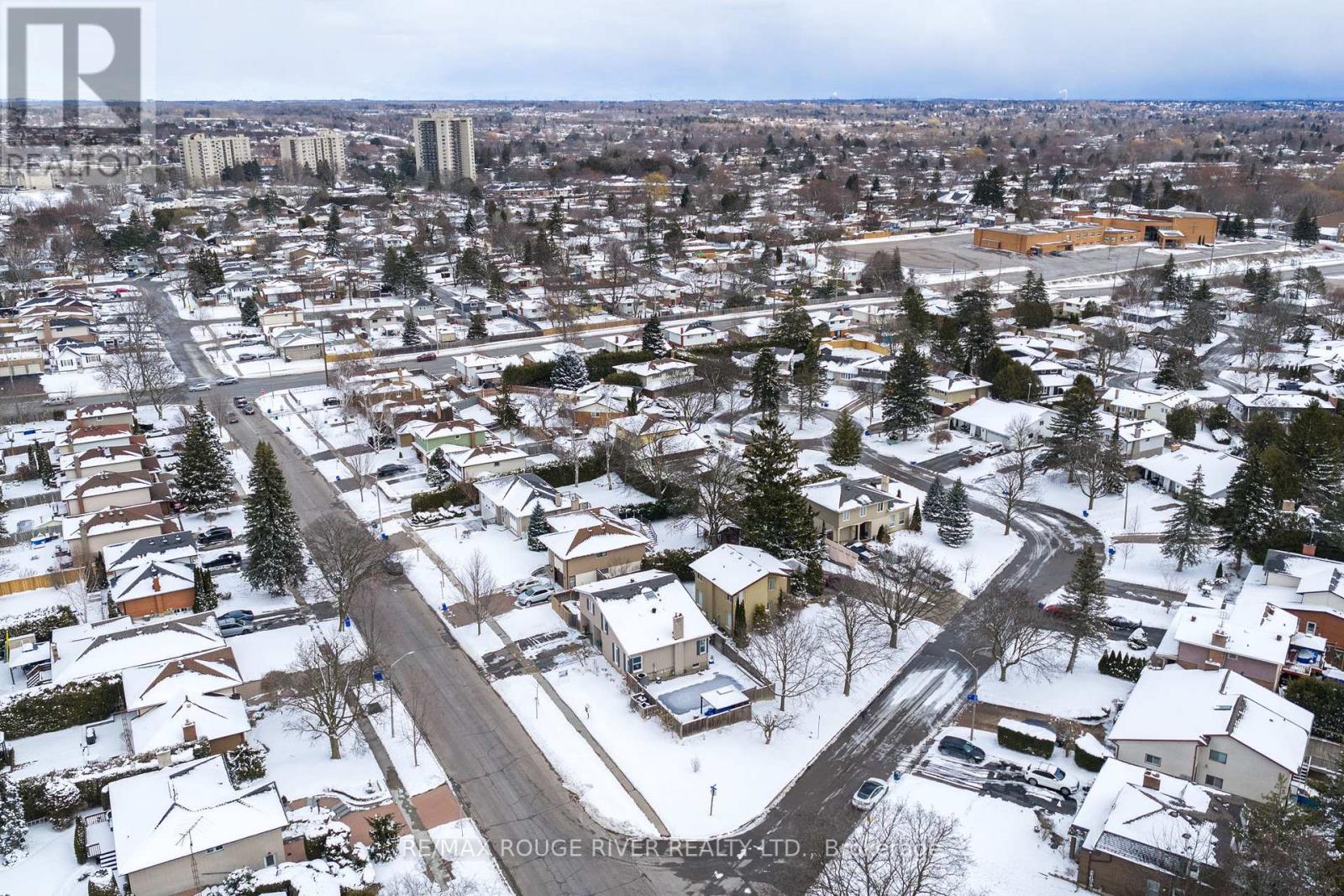 Situated on a desirable corner lot, this home offers a bright and spacious layout with thoughtful updates and excellent outdoor living spaces with yards on both sides of the home. The main level welcomes you with an open-concept living and dining area featuring impressive 11 ft. high ceilings and large windows that flood the space with natural light from multiple exposures. Hardwood flooring runs throughout, while a striking chandelier anchors the dining space, creating an elegant setting for entertaining. The well-appointed kitchen is designed for both function and style, complete with pot lights, quartz countertops, a stainless steel double sink, and a full suite of appliances including a gas stove and convection oven, range hood, fridge, and dishwasher along with a walkout to the deck for seamless indoor-outdoor living. Upstairs, the primary bedroom offers a comfortable retreat with laminate flooring, two closets, and a convenient ensuite bathroom. Two additional bedrooms provide ample space, each with laminate flooring and generous closet storage. A bright second-floor bathroom features a skylight, bringing in natural light and enhancing the space. The finished basement extends the living area with a spacious family room highlighted by large windows, a cozy fireplace, and new vinyl plank flooring throughout which can be used as a fourth bedroom. This level also offers flexibility, with space that can easily function as a home office, or recreation area. Step outside to a private backyard oasis designed for relaxation and entertaining. The in-ground swimming pool is surrounded by interlock and concrete, with multiple outdoor living spaces including a rear deck and a stone patio. Two metal gazebos provide shaded areas on both sides of the yard, creating the perfect setting for gatherings or quiet enjoyment. With its versatile layout, bright interior, and exceptional outdoor features, this corner-lot property is a wonderful place to call home. (id:64974)