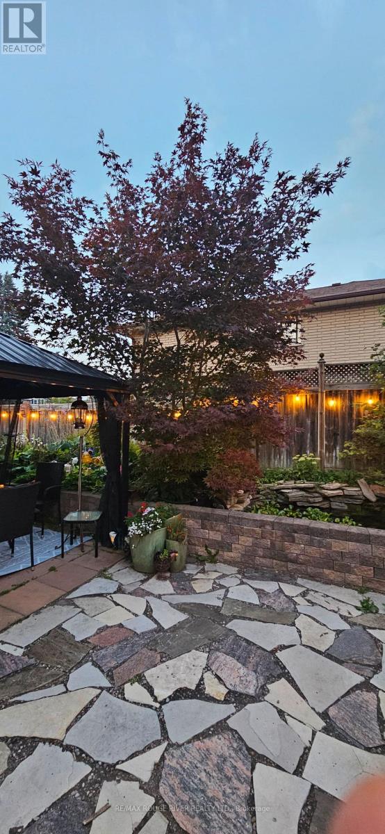 Situated on a desirable corner lot, this home offers a bright and spacious layout with thoughtful updates and excellent outdoor living spaces with yards on both sides of the home. The main level welcomes you with an open-concept living and dining area featuring impressive 11 ft. high ceilings and large windows that flood the space with natural light from multiple exposures. Hardwood flooring runs throughout, while a striking chandelier anchors the dining space, creating an elegant setting for entertaining. The well-appointed kitchen is designed for both function and style, complete with pot lights, quartz countertops, a stainless steel double sink, and a full suite of appliances including a gas stove and convection oven, range hood, fridge, and dishwasher along with a walkout to the deck for seamless indoor-outdoor living. Upstairs, the primary bedroom offers a comfortable retreat with laminate flooring, two closets, and a convenient ensuite bathroom. Two additional bedrooms provide ample space, each with laminate flooring and generous closet storage. A bright second-floor bathroom features a skylight, bringing in natural light and enhancing the space. The finished basement extends the living area with a spacious family room highlighted by large windows, a cozy fireplace, and new vinyl plank flooring throughout which can be used as a fourth bedroom. This level also offers flexibility, with space that can easily function as a home office, or recreation area. Step outside to a private backyard oasis designed for relaxation and entertaining. The in-ground swimming pool is surrounded by interlock and concrete, with multiple outdoor living spaces including a rear deck and a stone patio. Two metal gazebos provide shaded areas on both sides of the yard, creating the perfect setting for gatherings or quiet enjoyment. With its versatile layout, bright interior, and exceptional outdoor features, this corner-lot property is a wonderful place to call home. (id:64974)