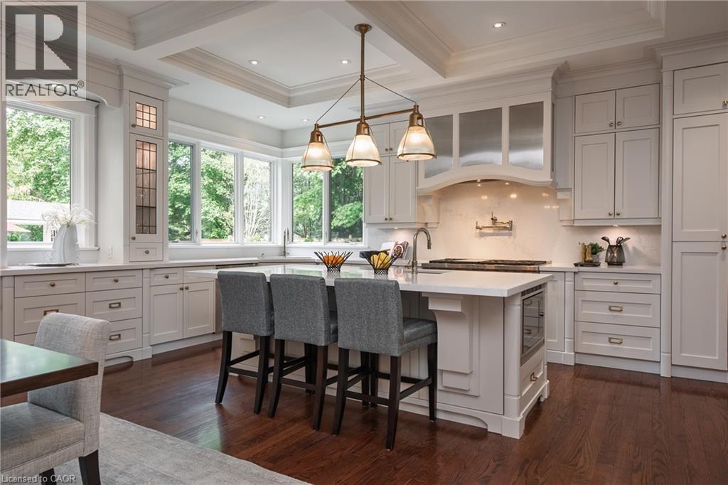 A rare opportunity to own an estate property on one of Old Oakville’s most prestigious streets. Set on an oversized 100' x 171' lot, this David Small-designed home offers over 8,000 square feet of finished living space, ideal for modern family living and entertaining. Just a short walk to downtown Oakville and minutes to the GO Train, Whole Foods, Longo’s, and top-ranked schools, this home offers both convenience and privacy. Surrounded by mature trees, the property sits on a quiet, established street. Inside, the double-height foyer opens to formal living and dining rooms. The main level features oversized principal rooms with vaulted ceilings. The chef’s kitchen flows into the family room and includes a large island, premium appliances, and custom cabinetry. A mudroom with front and rear access, a secondary powder room for pool use, and main floor laundry add everyday practicality. Upstairs, the primary suite offers a spa-like ensuite with steam shower and soaker tub. Three additional bedrooms include ensuite access and ample closets. A second-floor family room offers flexible space for growing families. The finished basement includes a large recreation room, games area with wet bar, oversized wine cellar, newly finished gym, fifth bedroom, and full bathroom. Outside, the private backyard is fully landscaped with a pool, retractable cover, hot tub, covered lounge, and built-in outdoor kitchen—ideal for relaxing or entertaining. With parking for six vehicles and an oversized double garage, this is a timeless family home in one of South Oakville’s most desirable locations. (id:64974)
