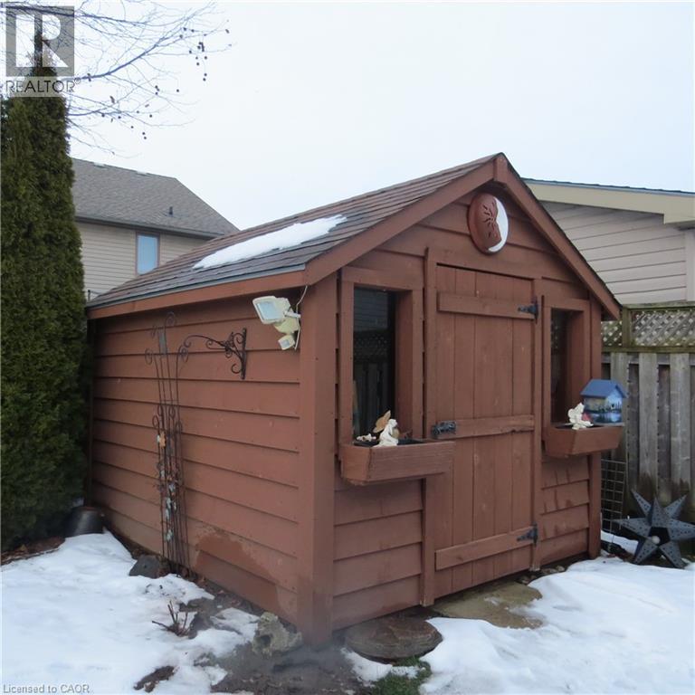 The paved stone driveway and curved walkway to the covered front door welcome you home to 209 Kingfisher Ave. Entering the spacious foyer you are wowed by the living room with gas fireplace, cathedral/ceiling and bay window. The sunlit din/kit area boast engineered hardwood floors, oak cupboards including pantry, lots of counter space and 4 stainless steel appliances. Patio doors lead to a covered deck with direct natural gas hook up for bbqing, shutters for privacy and a good view of the landscaped fenced yard. An adorable she-shed and utility shed hold endless possibilities. The primary bedroom has a lovely ensuite and his and her double closets. The main bath, second bedrooms and laundry are located on the second level. Steps down from the foyer enter into a large L-shaped rec room that is sure to convince you this is your new home. A 3rd bedroom, 3-piece bath and endless storage are also on this level. Lovingly cared for home. Move-in condition! (id:64974)
