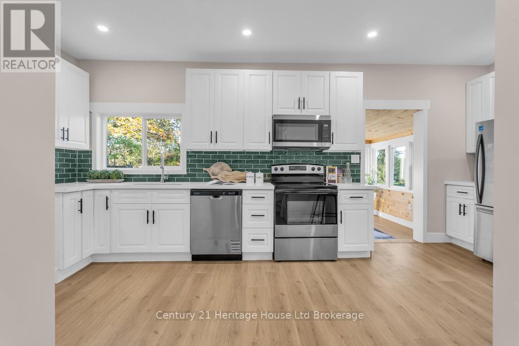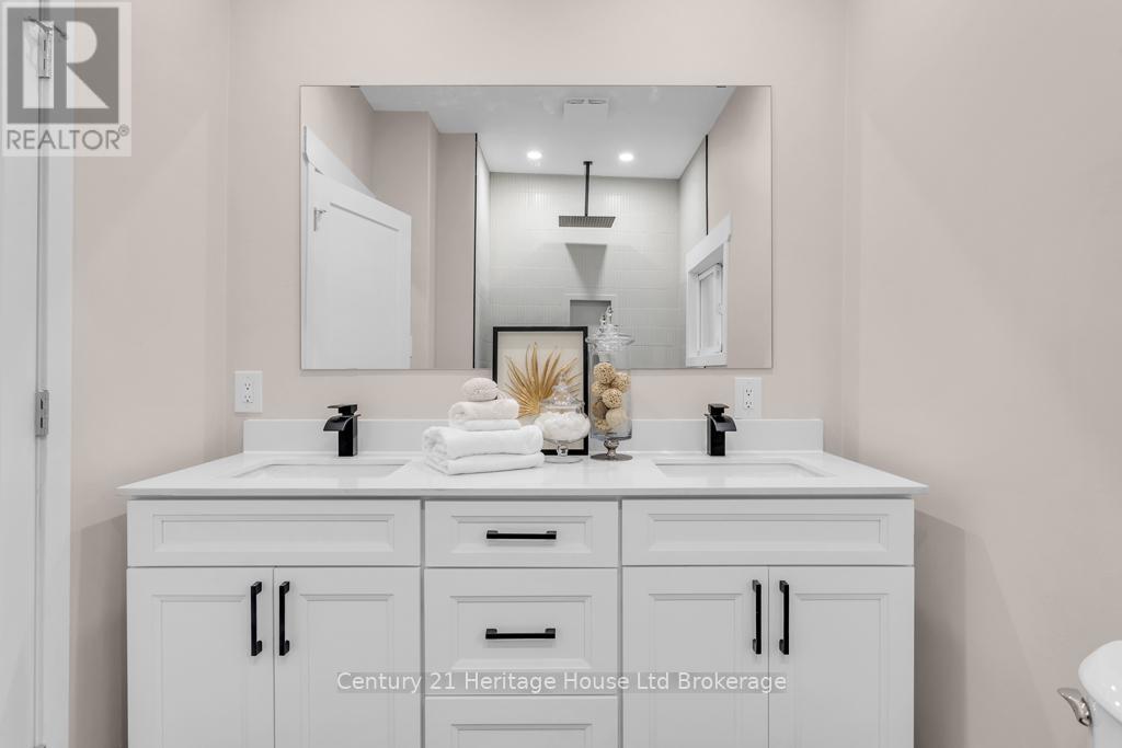 This 3 + 1 bedroom home has been professionally renovated back to the studs. The layout, kitchen, 2 bathrooms, laundry room, roof, flooring, appliances are all brand new. Walking into this charming home, you'll feel like your in trendy Wortley Village however... houses in Wortley don't have a 222 foot deep lot and they certainly don't have an attached double car garage. The beautiful kitchen is at the back of the home overlooking a large backyard, off the kitchen there is beautiful 4 season room, surrounded by windows. It can be used as a dining area or den - it's a perfect spot to hang out. Thru the sliding doors is a deck, another perfect spot to enjoy the deep lot. Your not backing onto houses so it's private. The main bathroom is stylish with all new fixtures including his and her sinks. There is also a new 2 piece powder room for convenience. The main laundry is off the garage with brand new appliances and cabinetry. An added bonus is the upstairs bedroom complete with it's own separate den/office. A covered front porch and some exposed brick inside show that the character of this charming home has been thoughtfully retained. (id:64974)