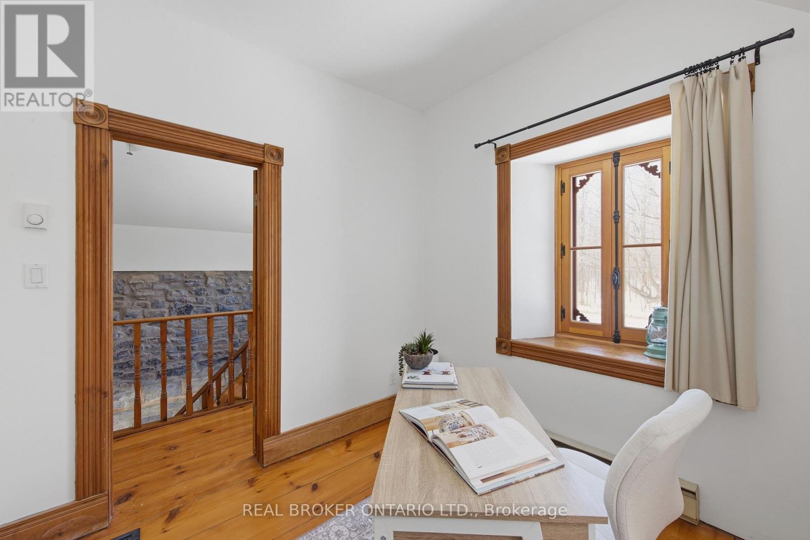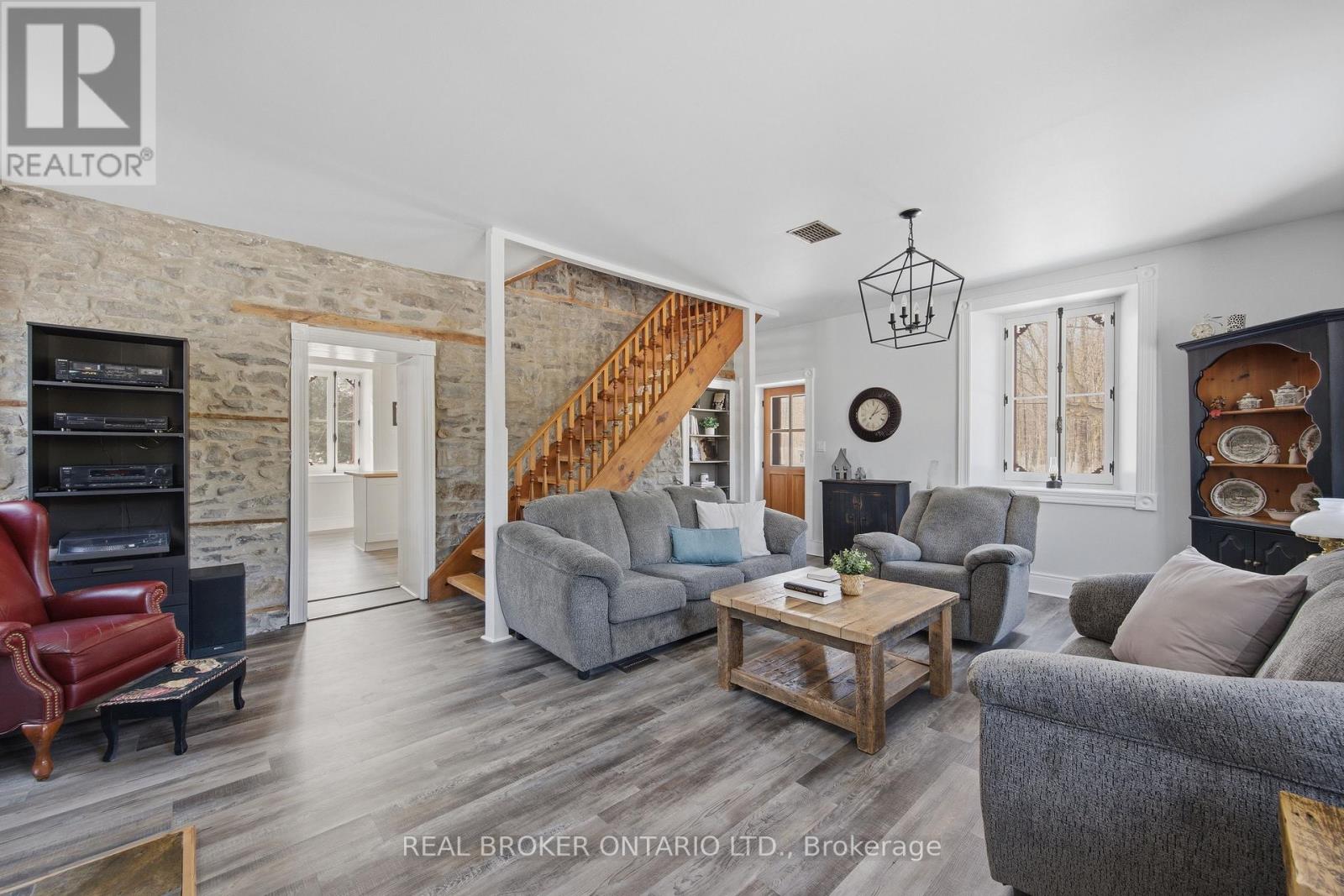 Some homes just have a story. This 1860s stone residence in Oxford Mills is one of them. Built to last and updated to live in, this four-bedroom home sits on 1.25 acres with the kind of bones you can't manufacture. Original pine plank floors, deep windowsills, and exposed stone walls that have been standing for over 150 years. It's the real thing.The main floor is functional and warm. A well-used kitchen with butcher block and Corian surfaces, a family room anchored by a wood stove, and a sunroom that looks out over established perennial gardens and a pond. Upstairs, four bedrooms and a bathroom with a clawfoot tub. Out back, a saltwater pool and deck installed in 2025. Ready for summer without the wait. The attached nanny suite has its own separate entrance, giving family members, guests, or a live-in caregiver genuine independence without leaving the property. A detached garage and a heated studio with hydro, round out the practical side of things. Oxford Mills puts you 10 minutes from Kemptville and 40 from Ottawa, right off Highway 416. Rural without being remote. If you've been looking for a heritage property that actually functions for modern life, this is worth a serious look. (id:64974)