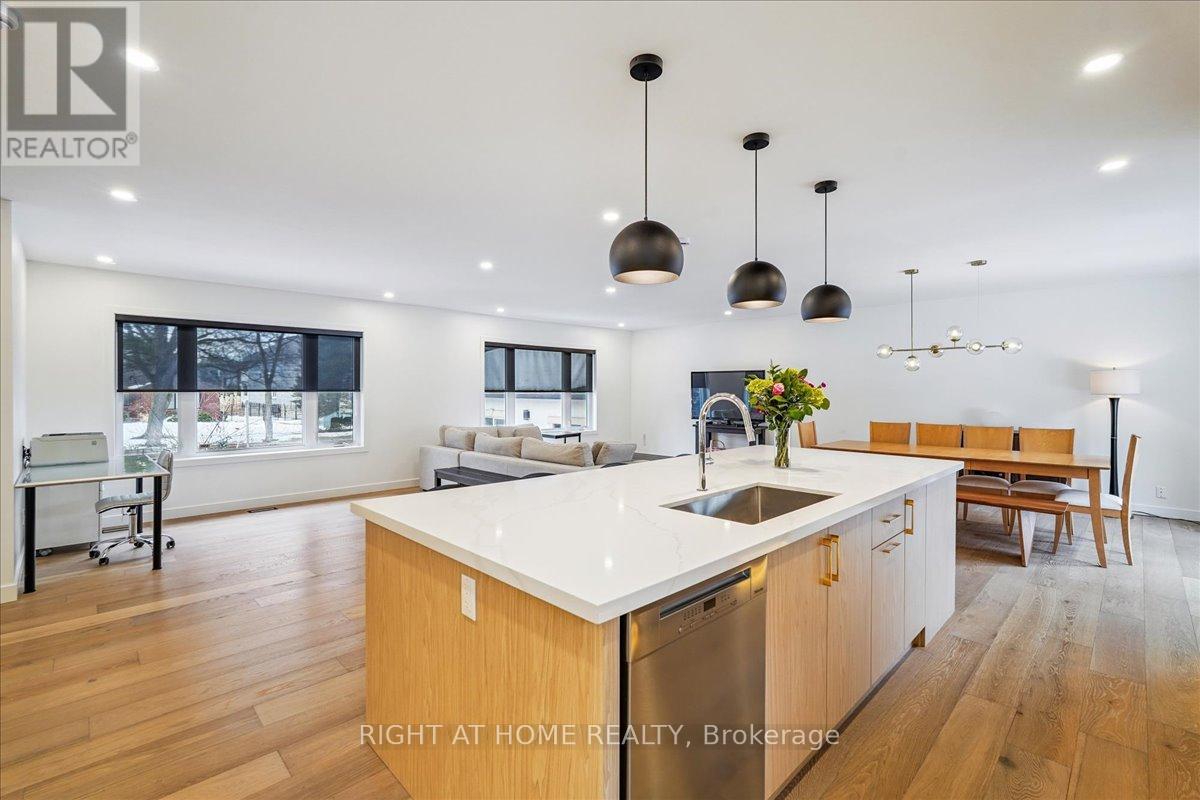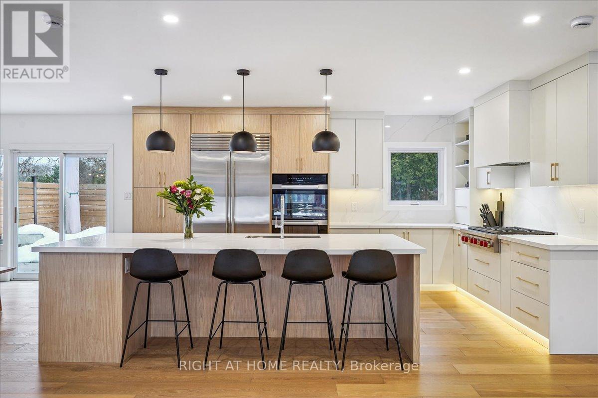 Exquisite fully renovated executive residence in the prestigious Sheridan community, surrounded by multi-million-dollar estates. Meticulously reimagined, this remarkable stone & stucco home showcases a redesigned open-concept main floor creating a bright, seamless flow for modern living. Offering over 3,000 sq. ft. of finished living space, the home features 4+2 spacious bedrooms, including the current den which is accounted for in the bedroom count and can easily serve as a fourth bedroom or private office, along with five impeccably updated bathrooms. The main floor primary suite offers a private five-piece bath, picture-frame moulding feature wall, and conveniently located laundry nearby. A motion-lit staircase leads to two upper bedrooms, each with its own ensuite, one featuring luxurious heated floors. At the heart of the home is a bright chef-inspired kitchen with brand new high-end appliances (2025), quartz countertops, an oversized island, sleek custom cabinetry, and under-mount lighting. Custom remote blinds on the oversized living room windows allow effortless control of privacy and ambiance. Principal rooms flow seamlessly to a private backyard retreat featuring a 20' x 18' composite deck with glass railings (2022) and hot tub (2022), perfect for entertaining or relaxing in privacy. The fully finished lower level adds exceptional versatility with a second kitchen with quartz counters and new appliances (2022), a four-piece bathroom with heated floors, electric fireplace, and additional living space ideal for multi-generational living, plus its own Maytag washer and dryer. A striking entrance begins at the newly redone circular driveway with elegant interlocking border and ample parking. Ideally located minutes from top-tier schools, the renowned Mississaugua Golf and Country Club, the QEW, Highway 403, University of Toronto Mississauga, Toronto Pearson International Airport, and close to Port Credit and Lake Ontario. A truly turnkey luxury opportunity. (id:64974)