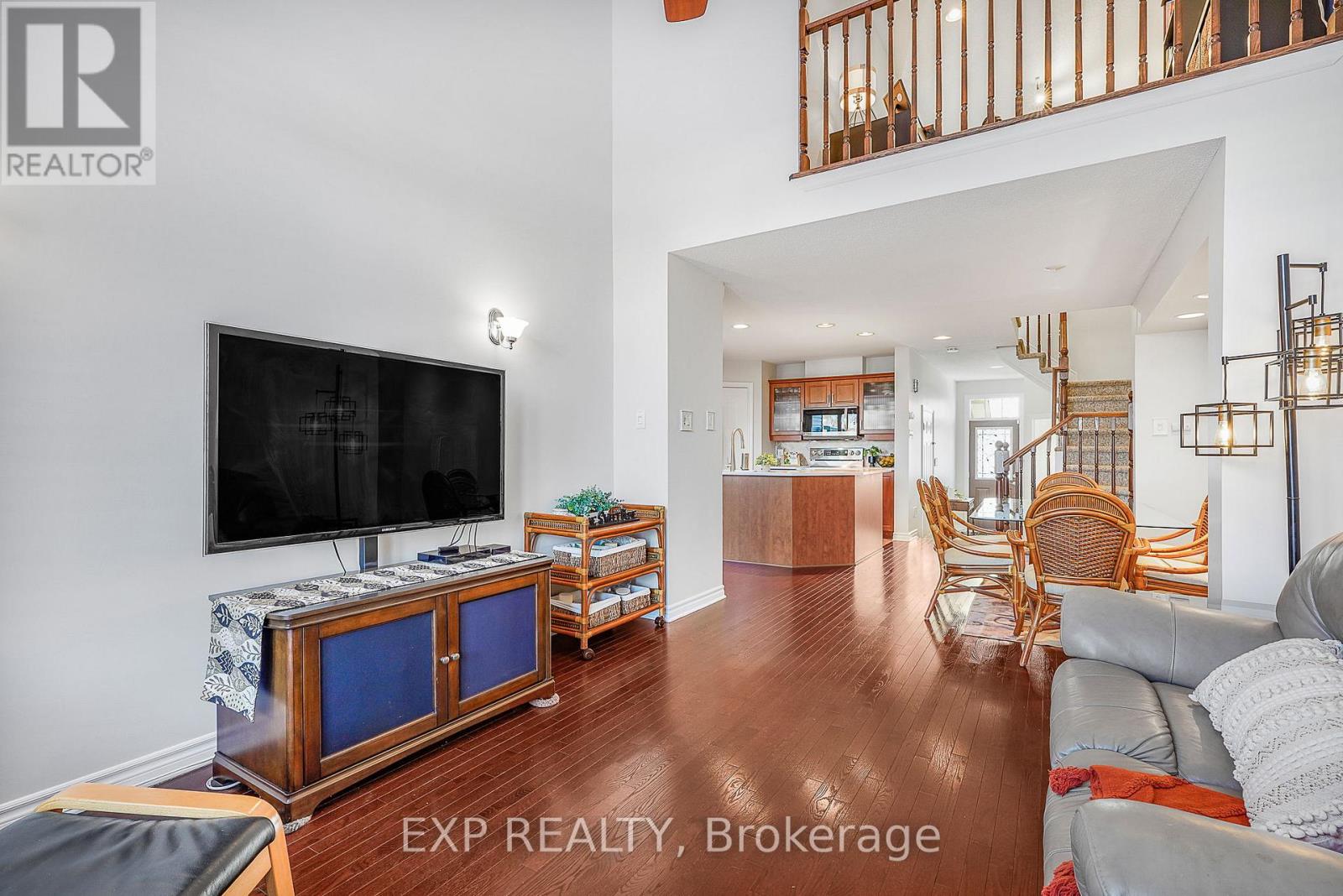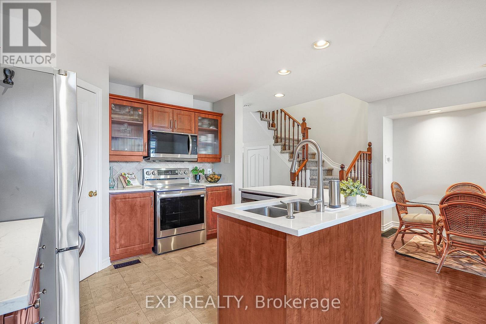 Welcome to this beautifully maintained townhome, ideally located just steps from shopping, restaurants, schools, parks, medical services, and pharmacies. Truly, everything you need is right at your doorstep! Proudly owned by its original owner, this home has been lovingly cared for and freshly repainted from top to bottom. Stunning landscaping enhances both the front and backyard, creating inviting outdoor spaces perfect for relaxing or entertaining. Inside, the main level offers a convenient powder room and a bright kitchen featuring quartz countertops, a walk-in pantry, stainless steel appliances, and a charming breakfast nook, the perfect spot for your morning coffee. Upstairs, you'll find two spacious bedrooms, a versatile den overlooking the living room below, and an impressive cathedral ceiling that fills the space with natural light and an airy feel. The full bathroom includes a soaker tub and a separate shower for added comfort. The finished basement adds valuable living space, complete with a full bathroom and a large recreation area, ideal for guests, a home office, or your own private retreat. A rare opportunity to own a thoughtfully designed, well-loved home in a prime Orléans location. (id:64974)