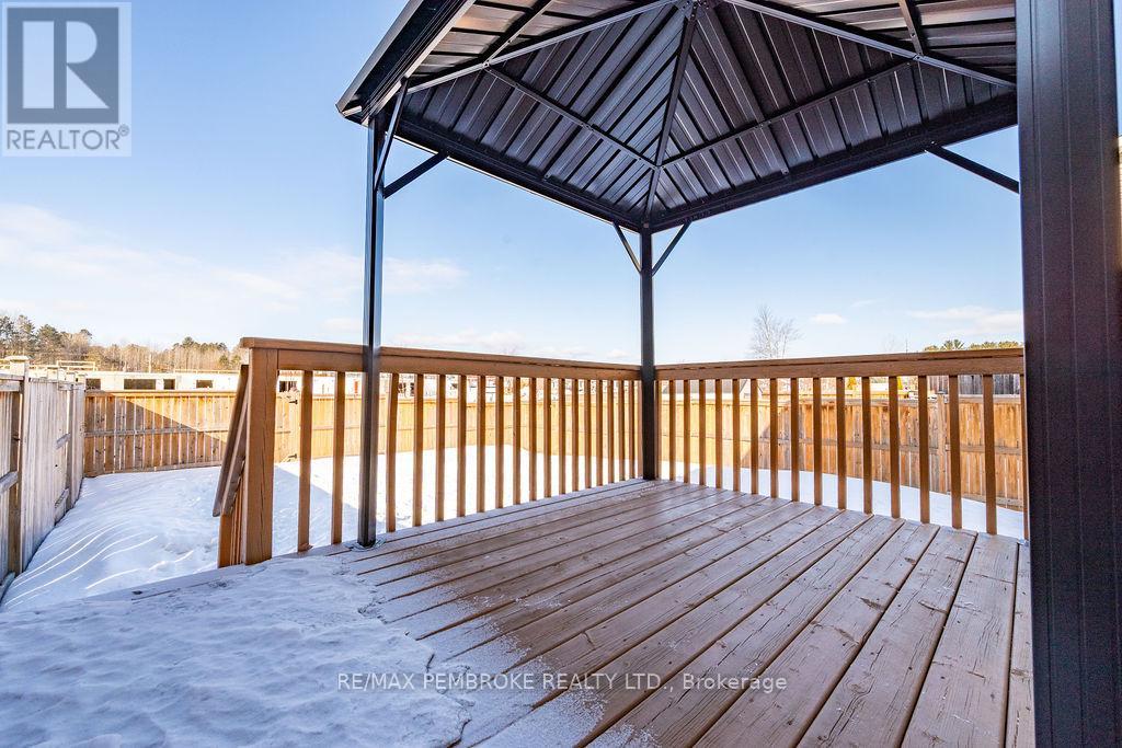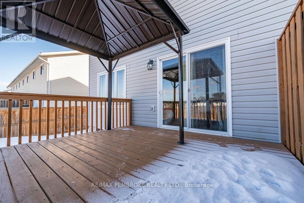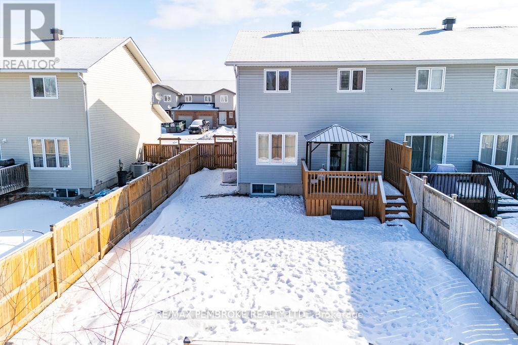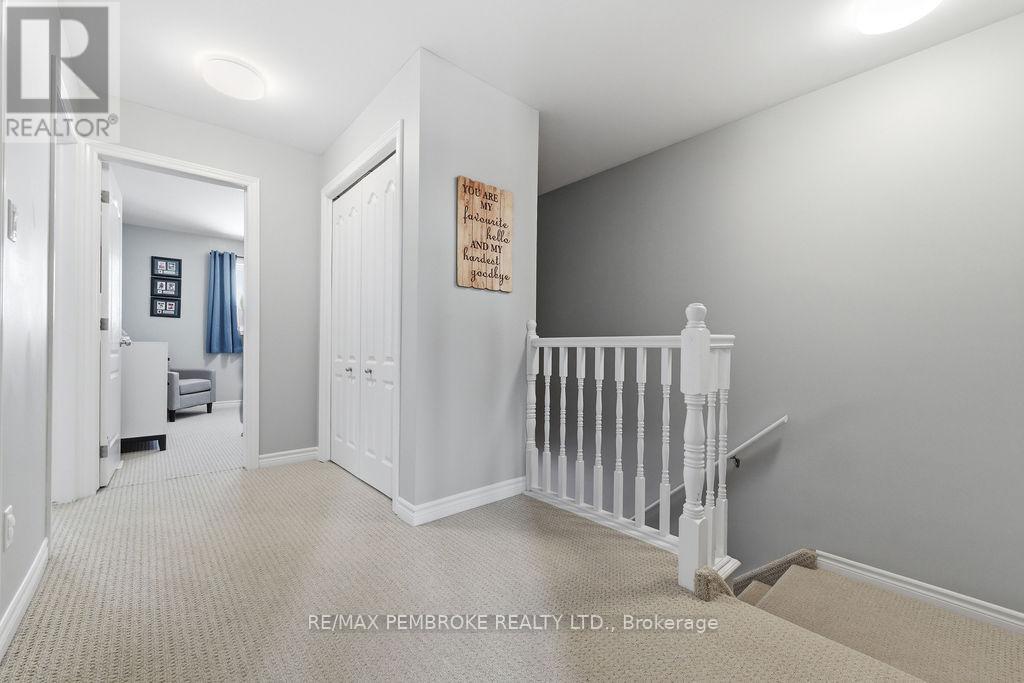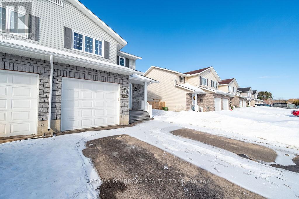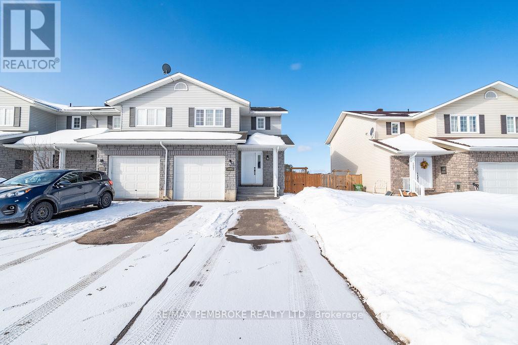 Through no fault of its own 2095 Sandstone is ready for its lucky owner!! Located in the highly sought after Limestone Trail subdivision, this well-maintained 3-bedroom, 2-bathroom home offers the perfect blend of comfort, functionality, and convenience, ideal for first time buyers, growing families, or investors alike. Step inside to a bright and inviting main floor featuring a spacious foyer with convenient access to the attached garage and a stylish powder room. The open concept layout flows seamlessly into the living and dining areas, filled with natural light and designed for both everyday living and entertaining. The functional kitchen offers ample cabinetry, generous prep space, and a breakfast island, perfect for busy mornings or hosting guests. Upstairs, you'll find three well-sized bedrooms including a spacious primary retreat with excellent closet space, along with a full bathroom to complete the level. The fully finished lower level adds incredible versatility with a large family room, ideal for movie nights, a home office, or additional living space-plus laundry and storage. Outside, enjoy a private backyard with deck access, creating a great space for summer BBQs or relaxing evenings. Situated just minutes from schools, parks, Petawawa Terrace, local amenities, and Garrison Petawawa, this location offers both lifestyle and convenience in one of the area's most desirable neighbourhoods. Whether you're looking to get into the market, downsize, or add to your portfolio, this home is a smart move in a growing community. All written signed offers must contain a 24 hour irrevocable. Garage 5.8 x 3.3 (id:64974)