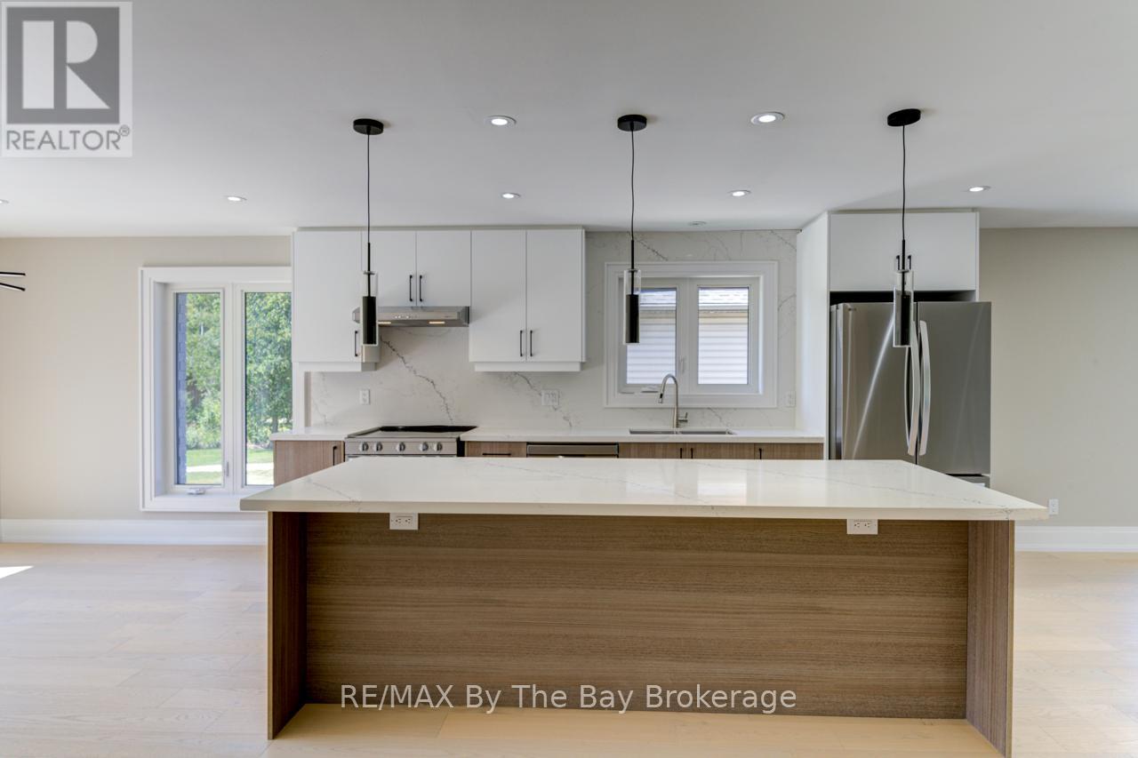 Discover your dream family home, completely remodeled with a sleek, modern design and perfectlysituated near the ski hills of Blue Mountain. Nestled on a generous lot, this stunning property features threespacious bedrooms upstairs, including a luxurious primary suite with an ensuite bath. The large, openconcept living space boasts a contemporary island kitchen, dining, and living area, highlighted by elegantglass railings. Downstairs, you'll find two additional bedrooms, a full bathroom, a convenient laundry room,and a versatile rec room area with ample storage. This home offers a perfect blend of modern style,comfort, and convenience for your family. (id:64974)
