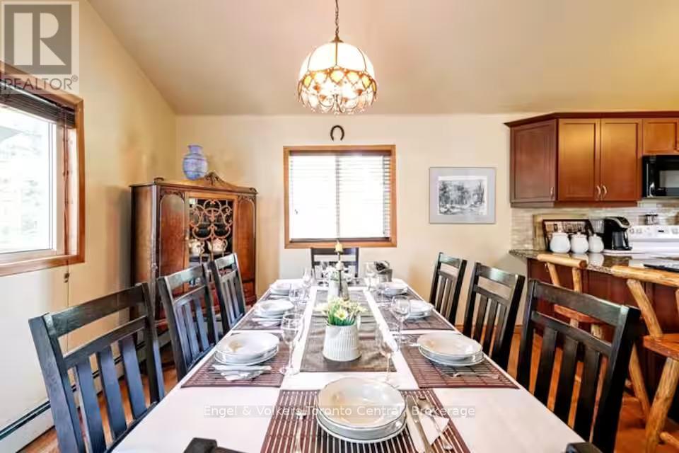 Discover this beautifully furnished 3-bedroom, 2-bathroom detached home for a short-term lease in the sought-after Blue Mountains. Located just minutes from beaches, ski resorts, and scenic trails, it combines convenience with the best of outdoor living. Nestled on a spacious 60 x 355 ft lot, the main level features a primary bedroom with an ensuite, additional bedrooms, a family room with a cozy fireplace, and convenient in-suite laundry. Upstairs, enjoy an open-concept kitchen and dining area flowing into a bright, expansive living room, ideal for entertaining or relaxing with family. Surrounded by mature trees and forest views, the home also boasts a welcoming deck and porch for year-round enjoyment. With private parking for four vehicles. Currently available, including January, February, and March, with the option to extend through the spring and summer seasons. Flexible possession with lease ending January 31, 2026. No smoking. Rental application required. (id:64974)