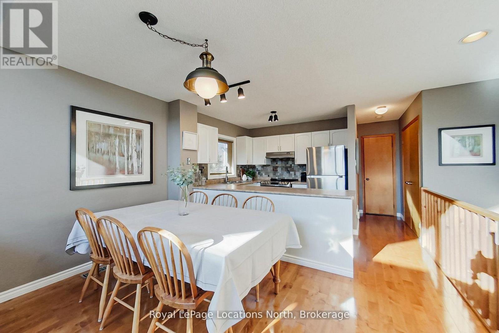 Don't miss this 3 Bed, 3 Bath, 1303 SQFT townhome in the very popular Summit Green development with views of the Ski Hills! 1543 SQFT finished including the basement family room. Plus you get the extra value of it being an end-unit, with extra windows for more light & no unit joined on your right side! Walk to skiing & all the shops, restaurants & outdoor activities at the Blue Mountain Village. Short Term Rentals prohibited in this complex. Pets are allowed. Enjoy the oversized main floor primary bedroom, with ensuite, his & hers closets & separate entrance / walkout to a ground floor back deck. The main floor also features a 2nd bedroom, 4 piece bathroom, front foyer with a nook for a bench, a closet & ski racks. Upstairs is the open concept great room with a gorgeous vaulted ceiling and lots of light. The living room features UV film on the upper windows, a wood-burning fireplace, a wet bar & a walk-out to the 2nd floor deck. The dining area has room for a large table & chairs as well as bar stools at the breakfast bar. The attractive kitchen features ample cupboards & newer stainless steel appliances. And being an end unit, you can enjoy the extra light from the kitchen window. Adding to the thoughtful design of this unit is the 3rd bedroom on this floor (would also function well as a home office), a third full bathroom & a large pantry closet. The basement is partially finished with a good sized family room which also provides overflow guest space. There is a huge utility room area for storage and all your ski equipment, bikes, etc, the full sized washer/dryer with a laundry sink, the furnace & water heater. Private parking at your front door as well as extra common area parking. This unit had all doors & windows recently replaced, new shingles, eavestroughs, soffits & facia in 2022, new furnace & central A/C in 2016. Status Certificate available from the listing agent. Visit my REALTOR website for further information about this Listing (under my contact info). (id:64974)