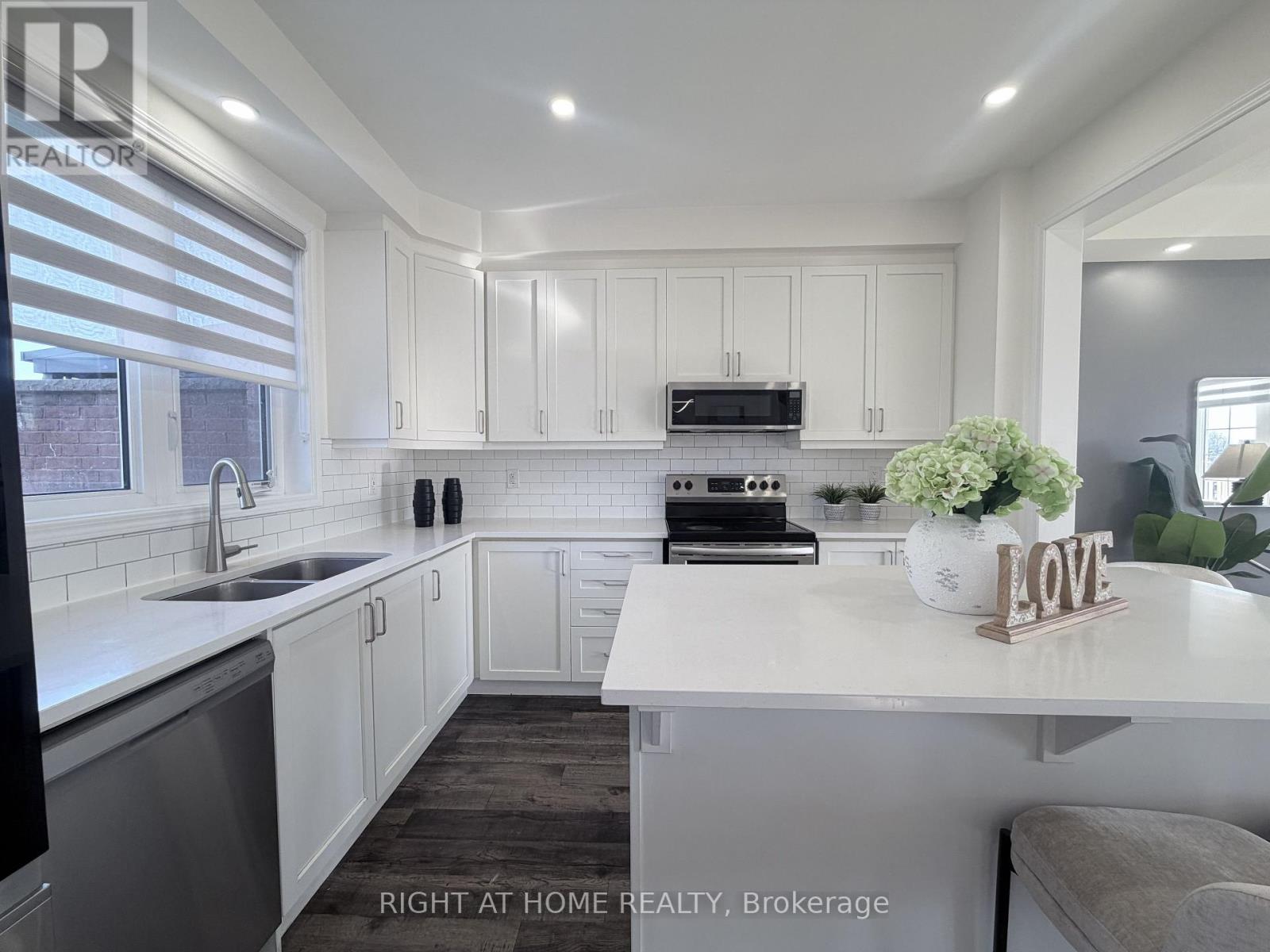 Largest Luxury Townhouse ~2,400 sq. ft. above ground YES THAT's RIGHT, Lots More - 9' Ceilings, ***2 Units in ONE***, Rentable First Floor apartment. 4 Beds + 4 Bath + 2.5 Car Garage + 1 Balcony at front + 1 Huge Terrace at Back, Front Yard, Lower Property Taxes as its a condo Townhouse, exterior landscaping managed by Condo. First floor offers a private In-Law suite complete with its own bath and kitchenette-ideal for elderly family members or rental income. The home is filled with natural light and showcases stylish, modern finishes throughout. The upgraded kitchen features a central island, stainless steel appliances, and access to a private terrace-perfect for entertaining. The living and dining areas are enhanced with pot lights and contemporary fixtures, while 9-foot ceilings on the first and second floors create an open, spacious feel. Located steps from 16 Mile Creek trails, Bus Stops, Ponds, Parks, Splash pads, and new schools, this home offers both comfort and convenience in a vibrant community. (id:64974)