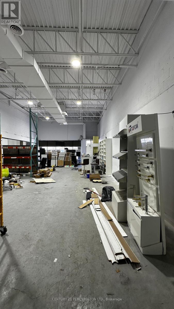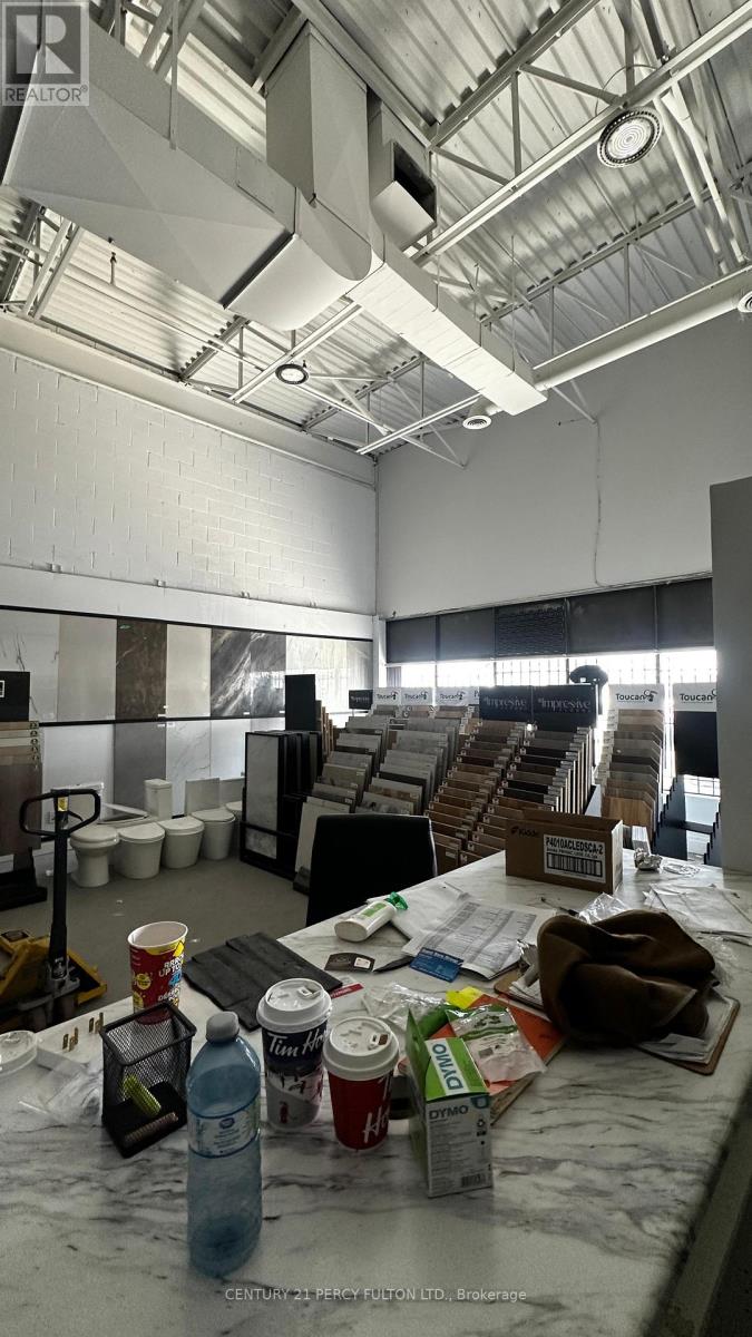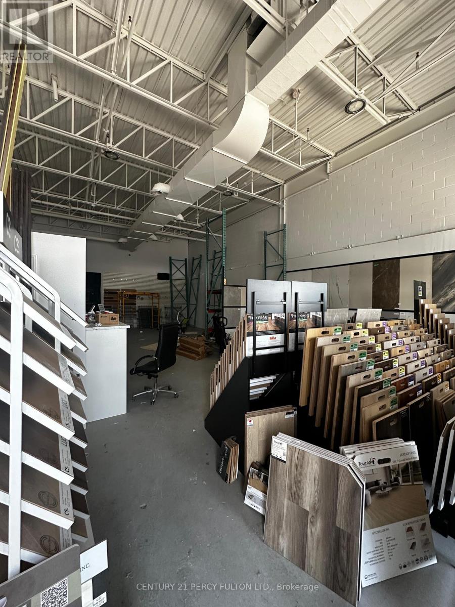 High-exposure commercial retail/industrial space on Steeles Avenue offering approximately 3,800sq. ft. with exceptional frontage along one of the GTA's busiest corridors. This rare opportunity is currently home to a successful building supplies and tile business and provides excellent visibility and functionality for a variety of uses. The unit features a well-designed layout with an attractive showroom and office area at the front and a practical warehouse space at the rear, along with a drive-in door and double man doors for efficient operations. Benefit from strong daily traffic of over 25,000 vehicles, a signalized intersection at the plaza entrance, and a bus stop directly at the property, ensuring maximum exposure and accessibility. Zoned M2 to accommodate a wide range of uses and strategically located minutes from Highway 407between Highways 410 and 427, this is an ideal space for businesses seeking high visibility, convenience, and a proven location. (id:64974)