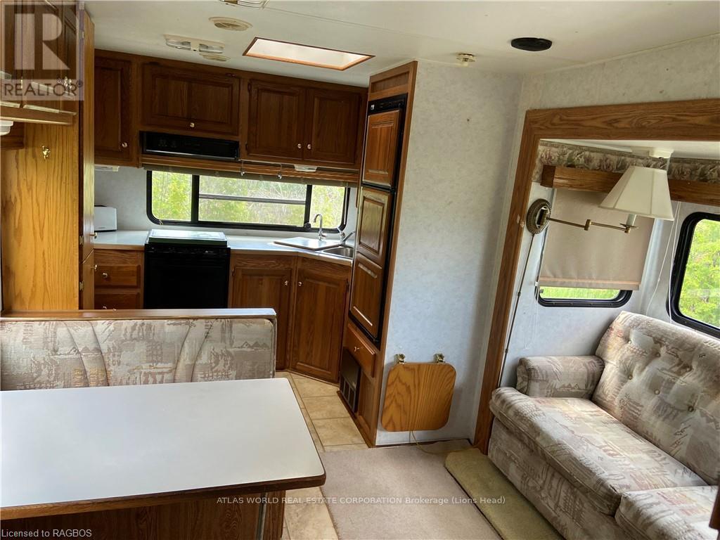 Our lovely bright Golden Falcon for rent including site, space and private docking. This spacious trailer boasts a queen size bed in a separate raised bedroom, 1 additional guest can be accommodated on the couch. The eat in kitchen is fully equipped for indoor dining plus outside dining with a bbq and tank, picnic table and fire pit. 3 piece bathroom. Settle in for your stay in Stokes Bay or visit nearby Lions Head and Tobermory for the sites and the amenities and Bruce Trail access. (id:65010)