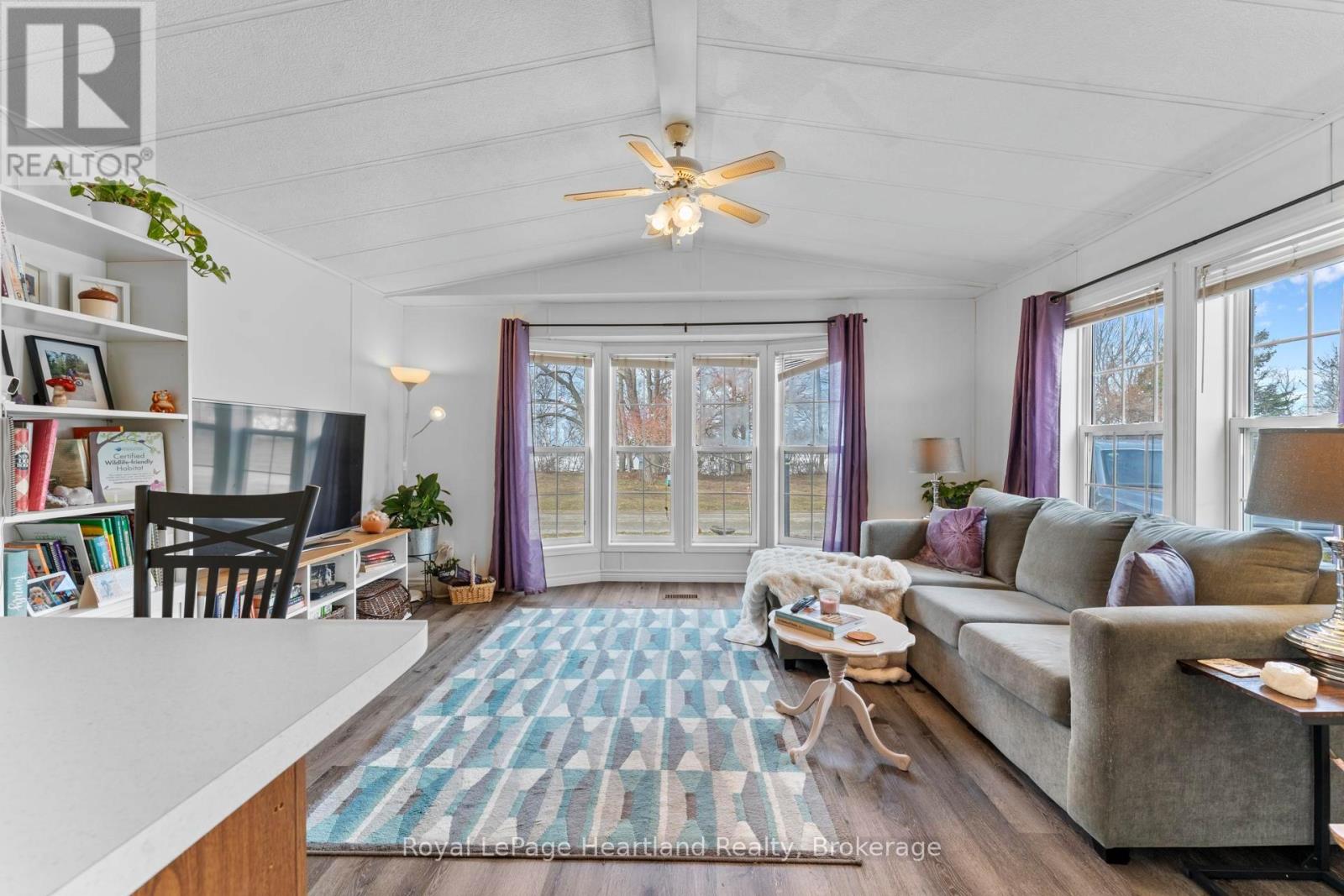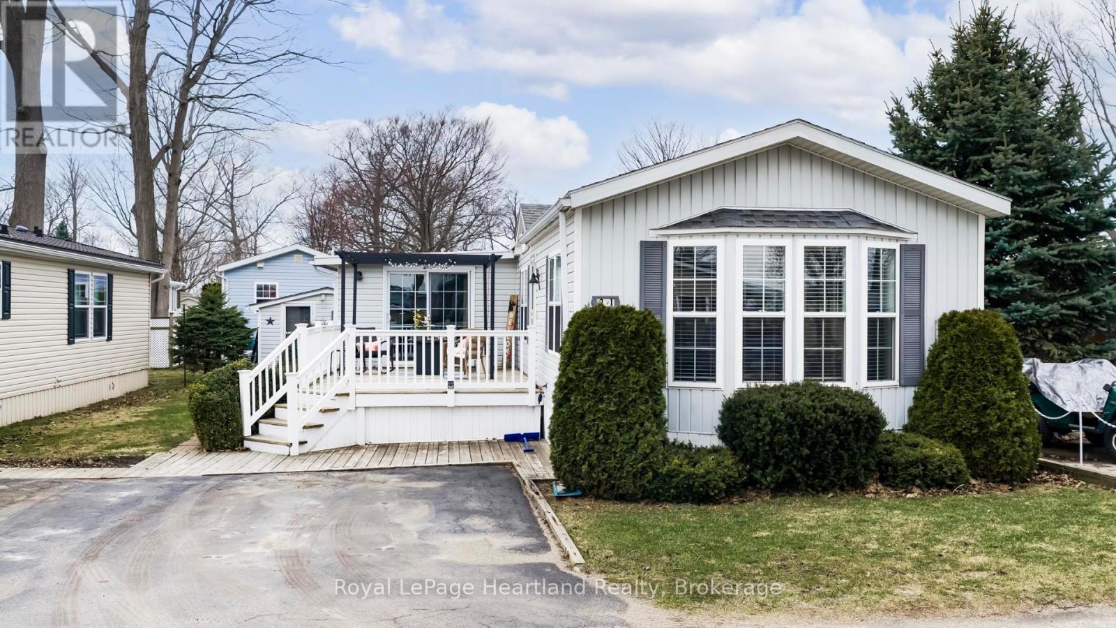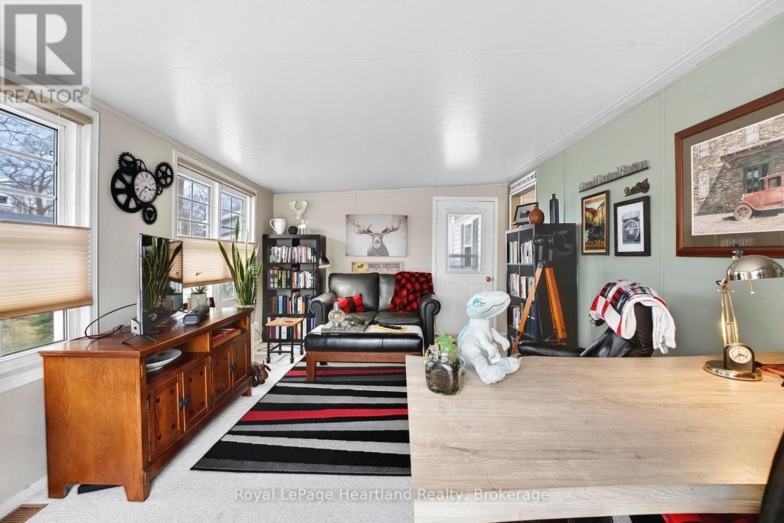 Pristine and impeccably maintained, this charming home is ideally located just minutes north of Goderich along the beautiful shores of Lake Huron. Offering 2 bedrooms and 1 bathroom, this move-in ready property features an inviting open-concept eat-in kitchen lined with crisp white cabinetry and lots of space for those who love to bake or cook. The bright, sun-filled living room is the perfect space for gathering with family and friends. A spacious four-season addition expands the living area, complete with patio doors leading to an east-facing deck, the ideal spot to enjoy your morning coffee or step out to the backyard private patio with ease through the back door. The property also includes a large shed with electricity, stunning perennial gardens, and private beach access within the land lease community; Meneset on the Lake where you can soak up hot summer days and take in breathtaking Lake Huron sunsets. Enjoy an active lifestyle with access to a vibrant clubhouse, nearby walking trails, and all the amenities the Town of Goderich has to offer just minutes away. (id:64974)